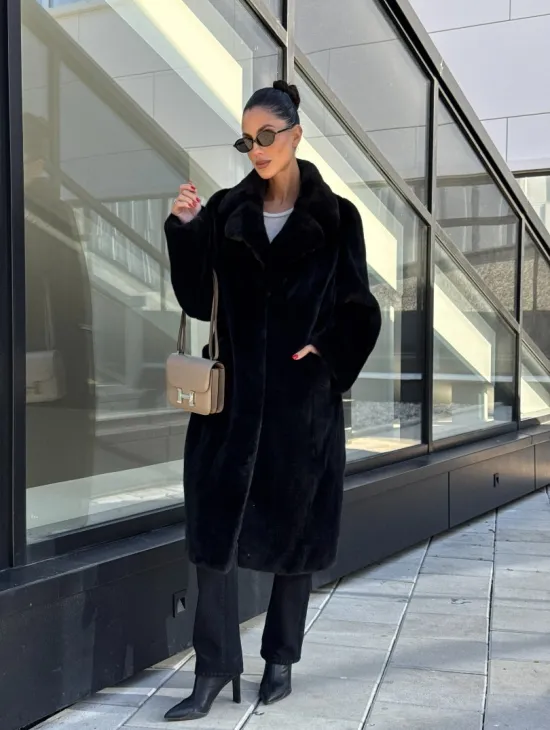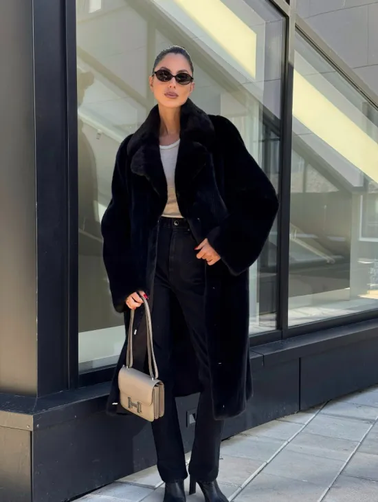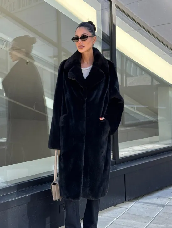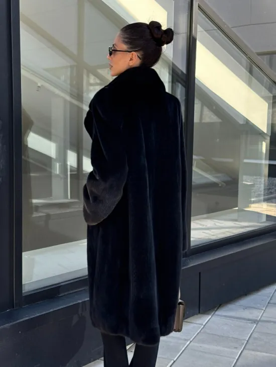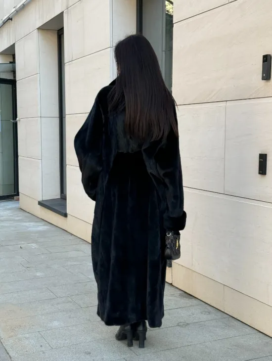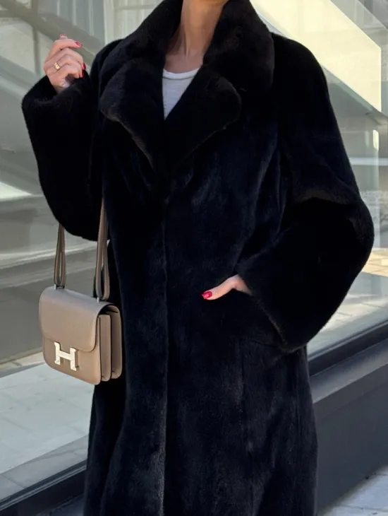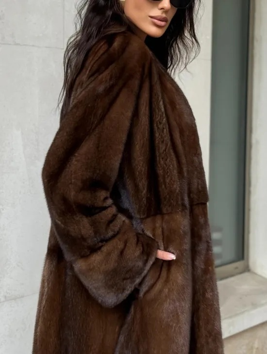 Длинная шуба кимоно Luxury Fashion из меха норки SAGA FURS - английский воротник