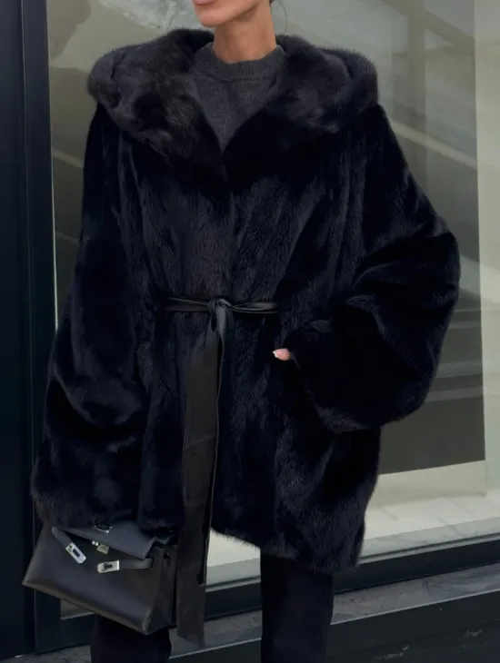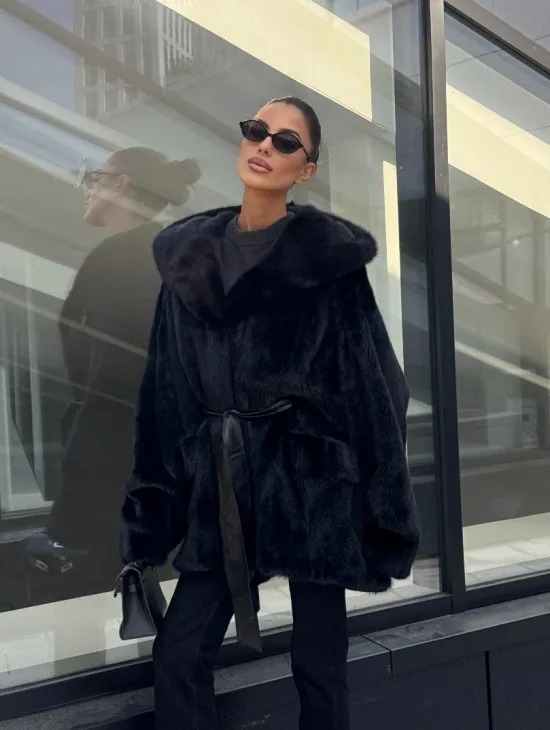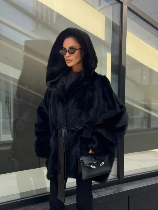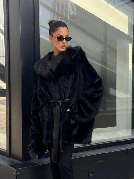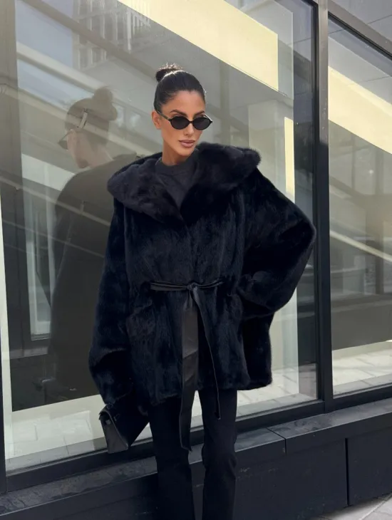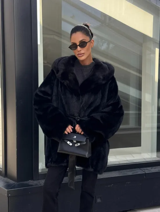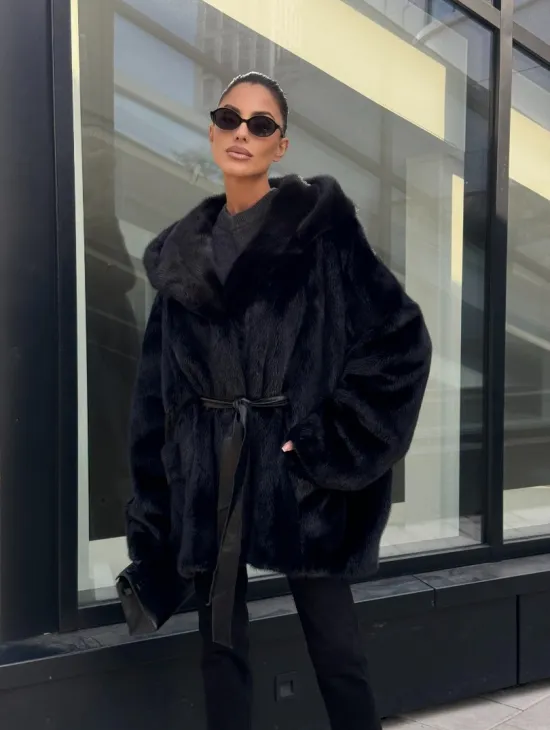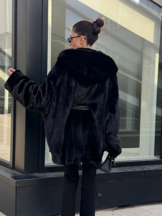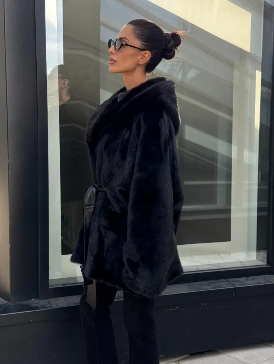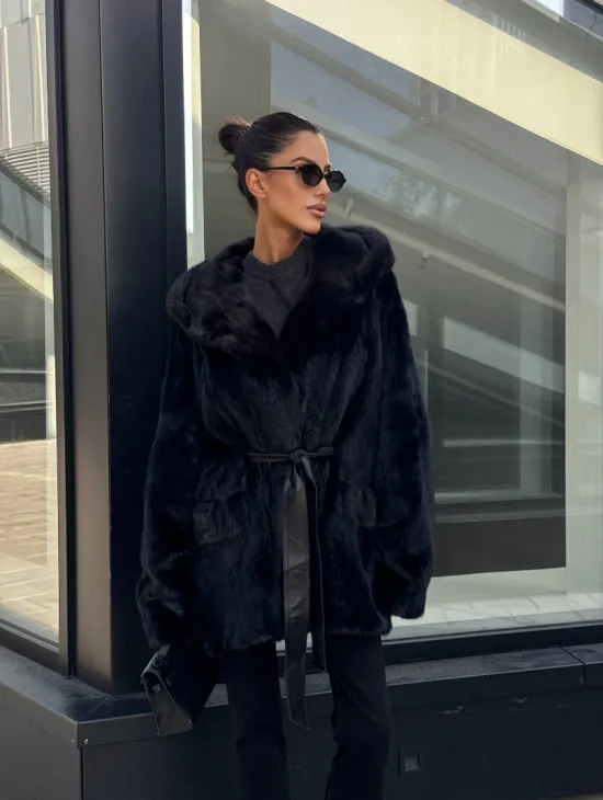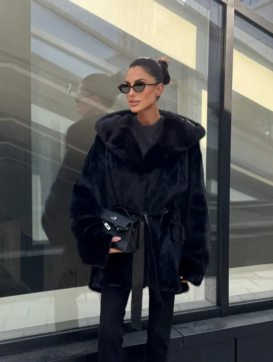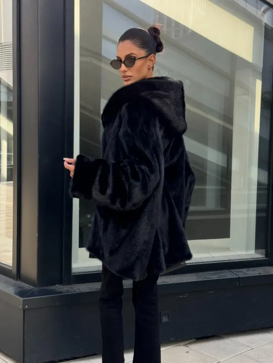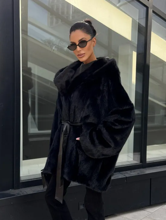 Шуба из аукционного меха норки NAFA MINK с капюшоном из куницы
