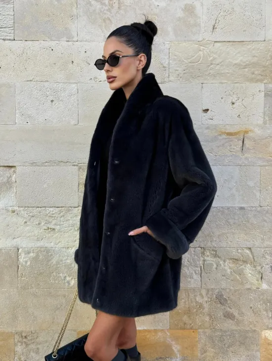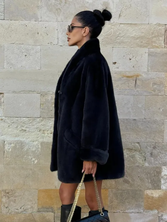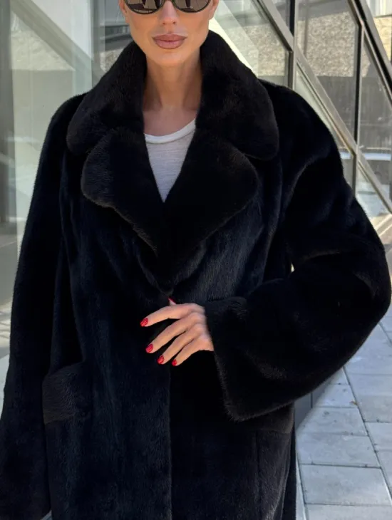 Шуба из аукционного меха норки Kopenhagen Fur, английский воротник - фасон баллон