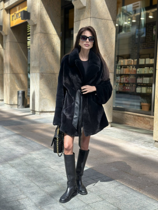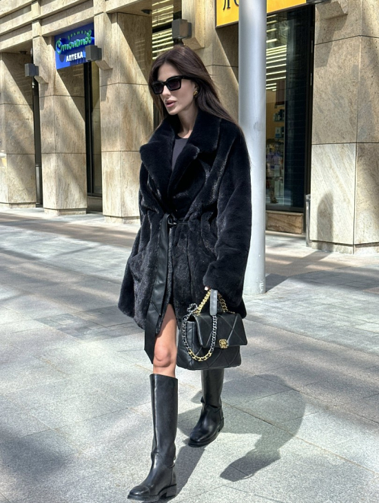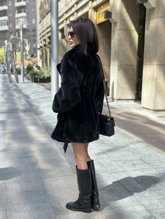 Шуба из плюшевой норки NAFA, роспуск - цвет черный изумруд