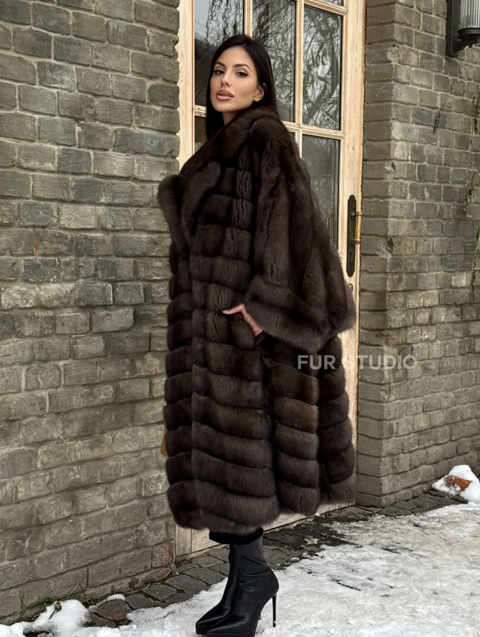 Роскошное манто из меха баргузинского соболя (седина 1) летучая мышь доступна для покупки в нашем шоуруме Furs Studio в Чите. У нас так же есть доставка во все города России. Добавьте немного роскоши в свой гардероб с этой шубой, которая будет служить вам многие годы.