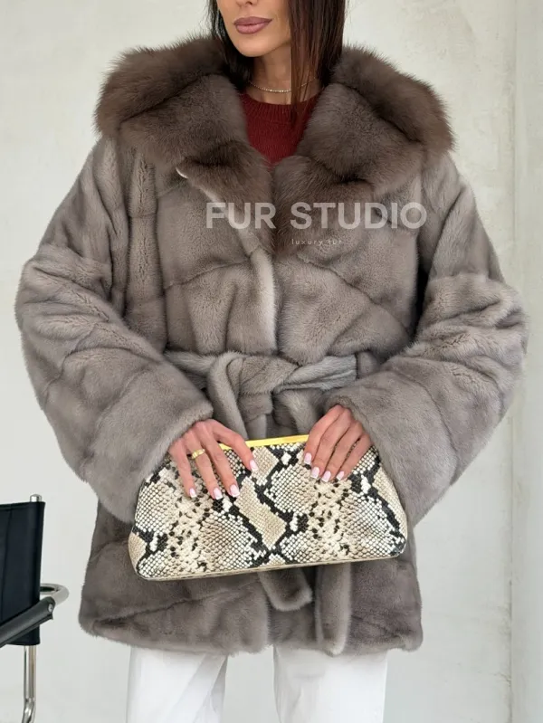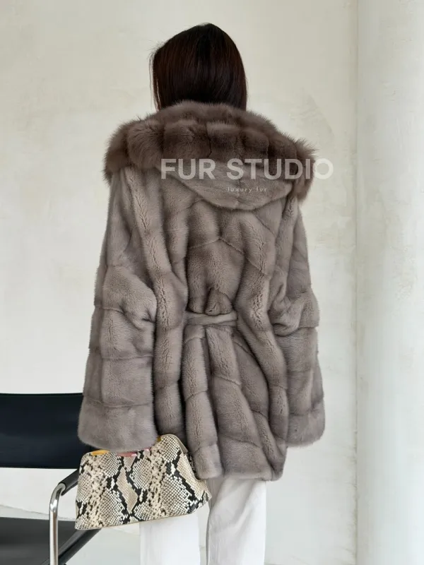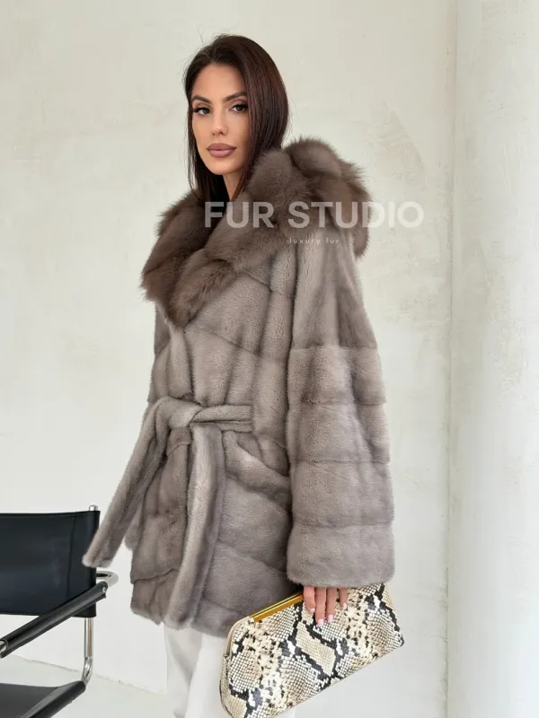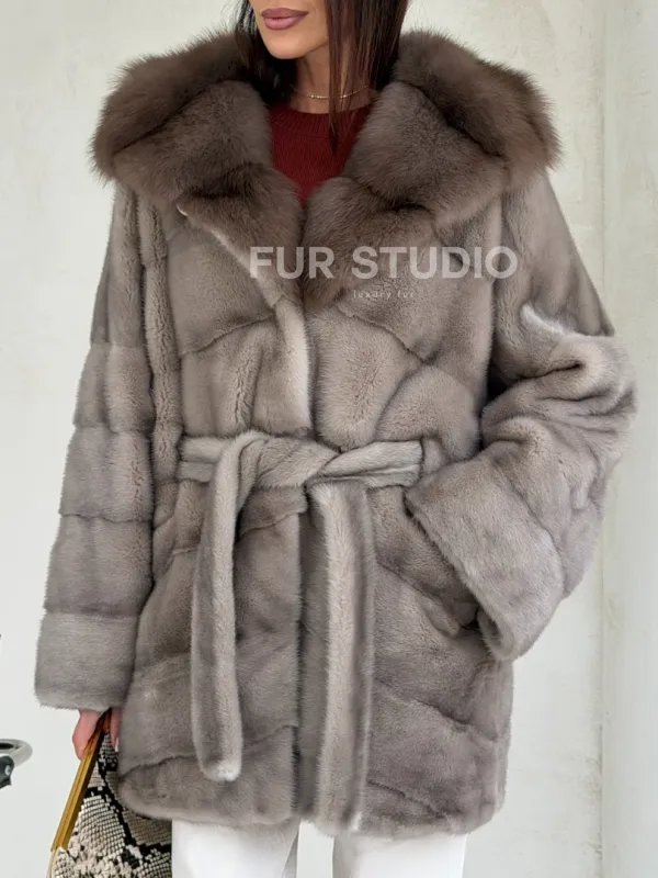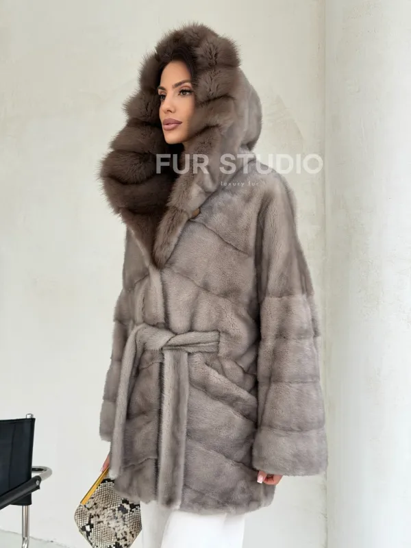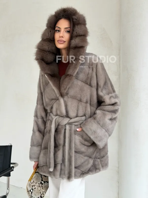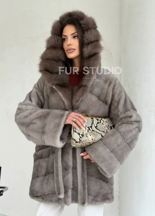 Серый норковый полушубок - капюшон куница доступна для покупки в нашем шоуруме Furs Studio в Чите. У нас так же есть доставка во все города России. Добавьте немного роскоши в свой гардероб с этой шубой, которая будет служить вам многие годы.