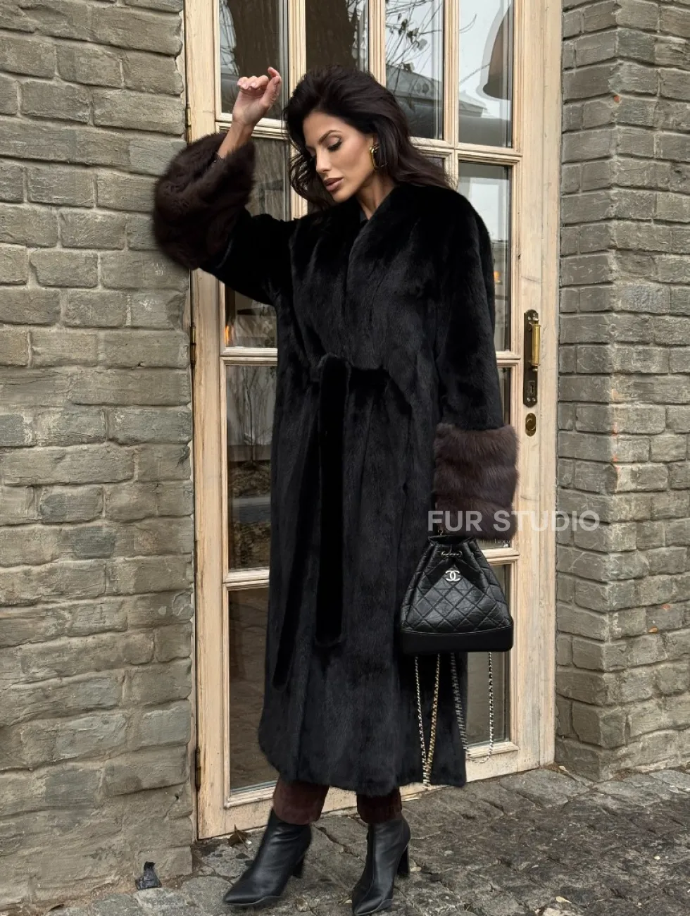Шикарная черная норковая шуба с меховыми манжетами из куницы доступна для покупки в нашем шоуруме Furs Studio в Чите. У нас так же есть доставка во все города России. Добавьте немного роскоши в свой гардероб с этой шубой, которая будет служить вам многие годы.