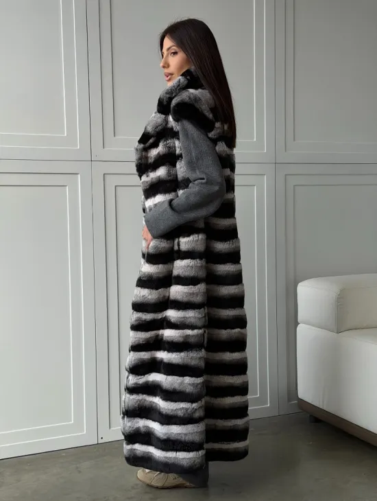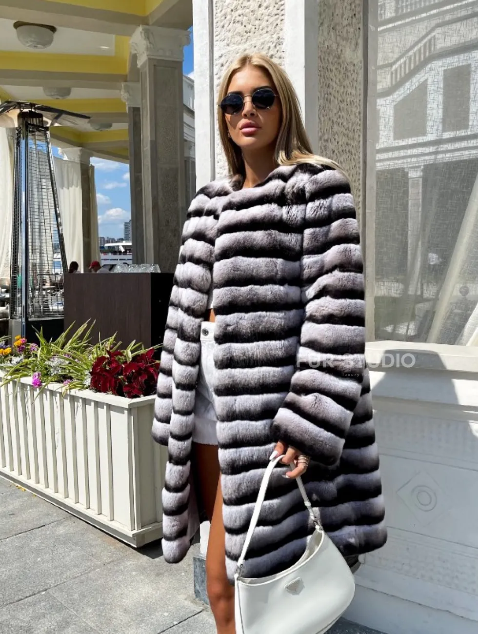 Необычная модель подчеркнет достоинства фигуры. Комфортная длина удобна в носке. Нежный мех согреет владелицу в непогоду. Оригинальный цвет выгодно подчеркнет оттенок кожи и волос. Добавьте в образ статусную сумочку, и вы будете выглядеть изыскано и лаконично. Качество изделия будет радовать хозяйку долгие годы. Купить шиншиловую шубу из орилага могут девушки, которые обладают безукоризненным вкусом.