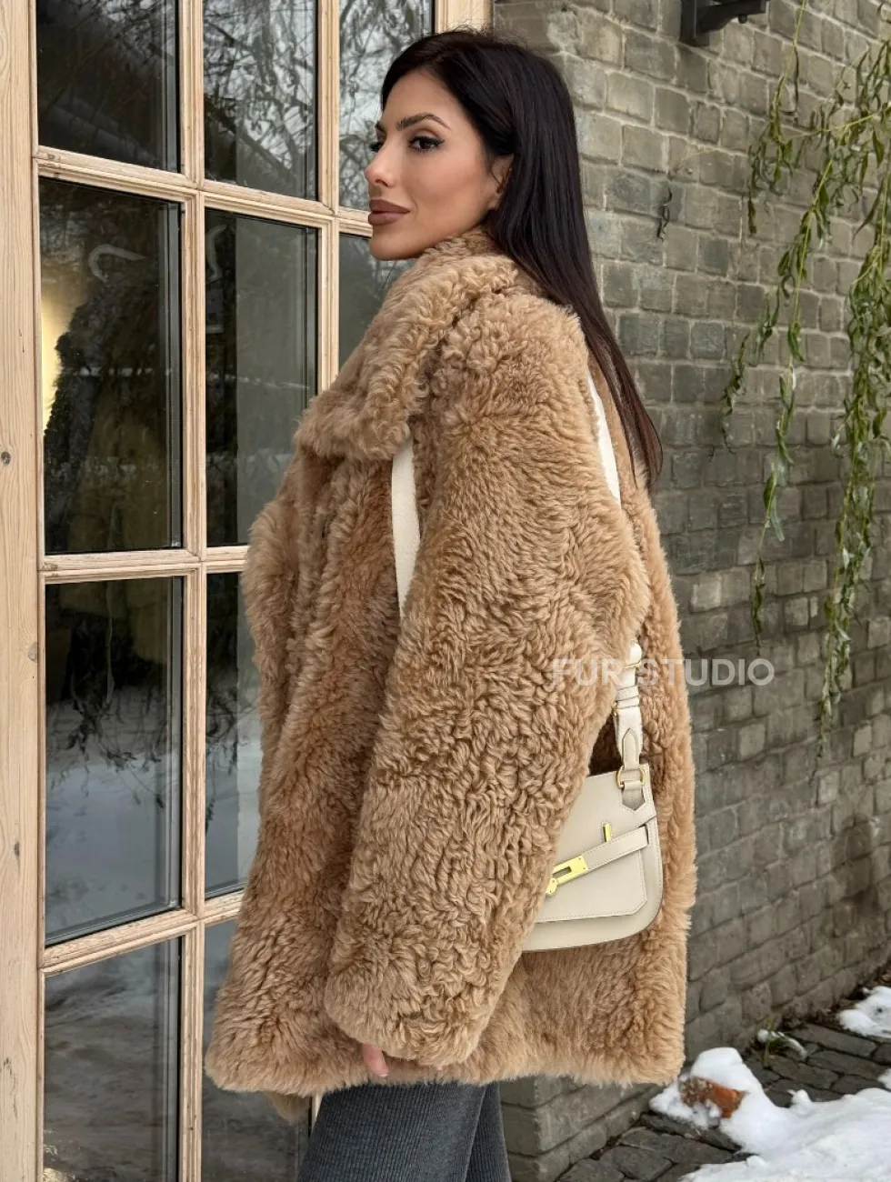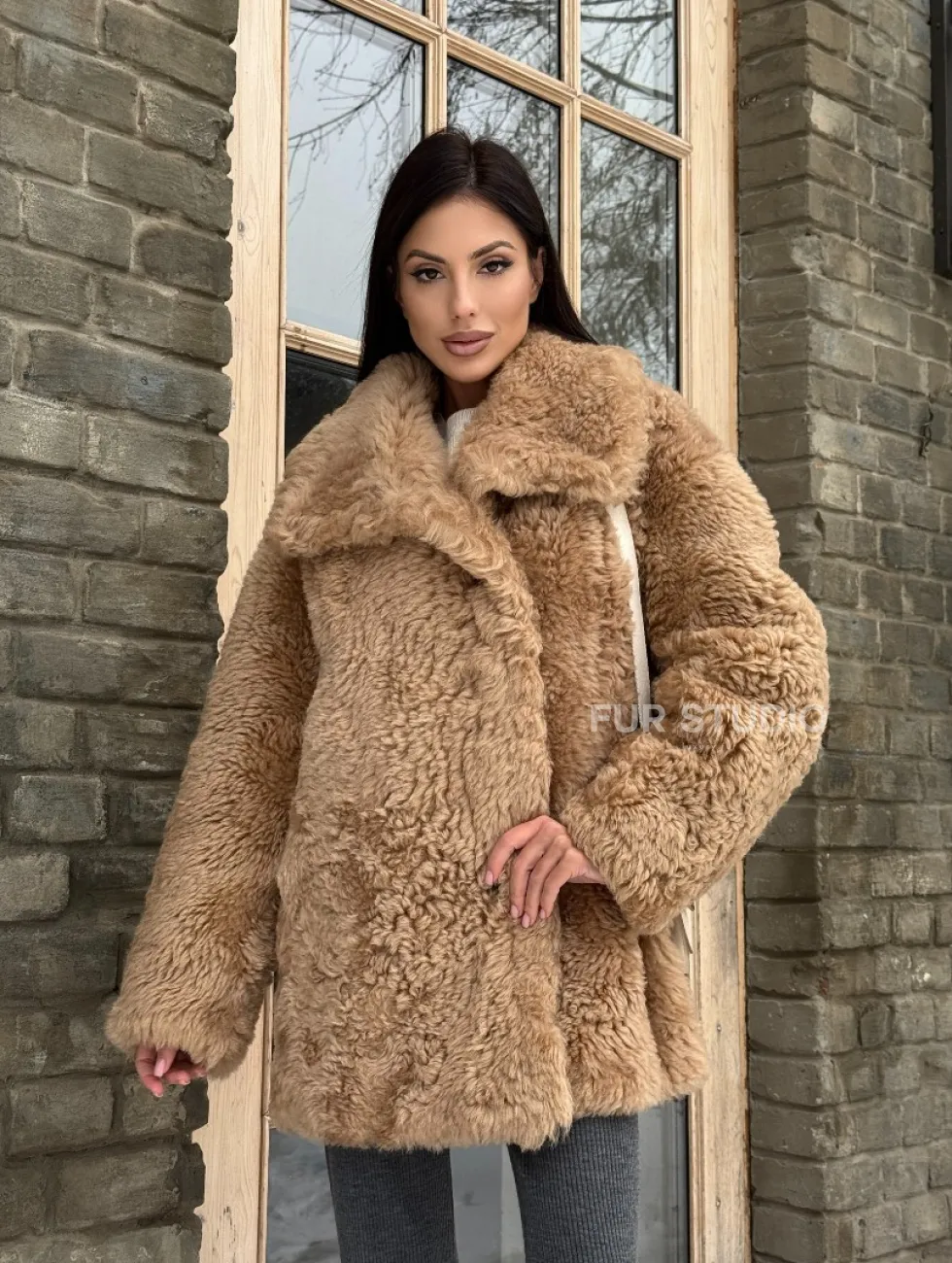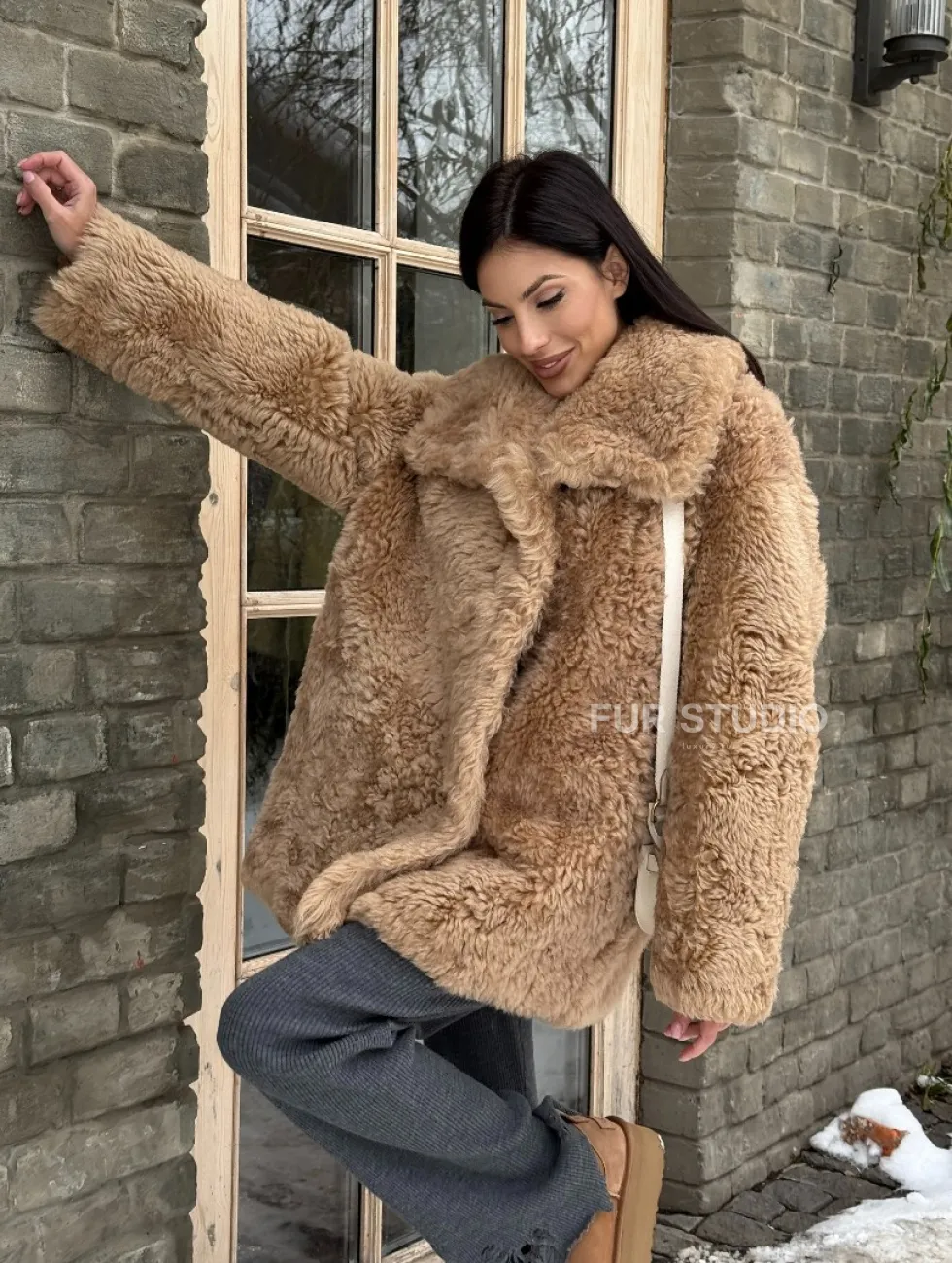 Шуба - дубленка из овчины в бежевом цвете доступна для покупки в нашем шоуруме Furs Studio в Чите, а также предлагается удобная доставка во все города России. Обогатите свой гардероб этой дубленкой, которая прослужит вам многие годы, добавив немного роскоши в ваш повседневный образ.