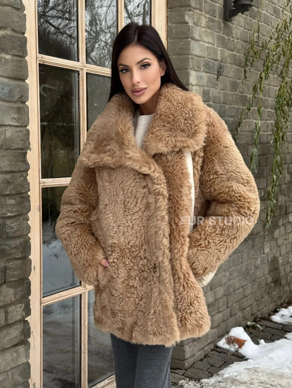 Шуба - дубленка из овчины в бежевом цвете. Модель предлагается в размерах от 40 до 44 с 46. Оптимальная длина моделей 65-70 см подчеркивает линии вашей фигуры. Эта дубленка станет неотъемлемой частью гардероба для тех, кто предпочитает роскошь и утонченность натуральной кожи.