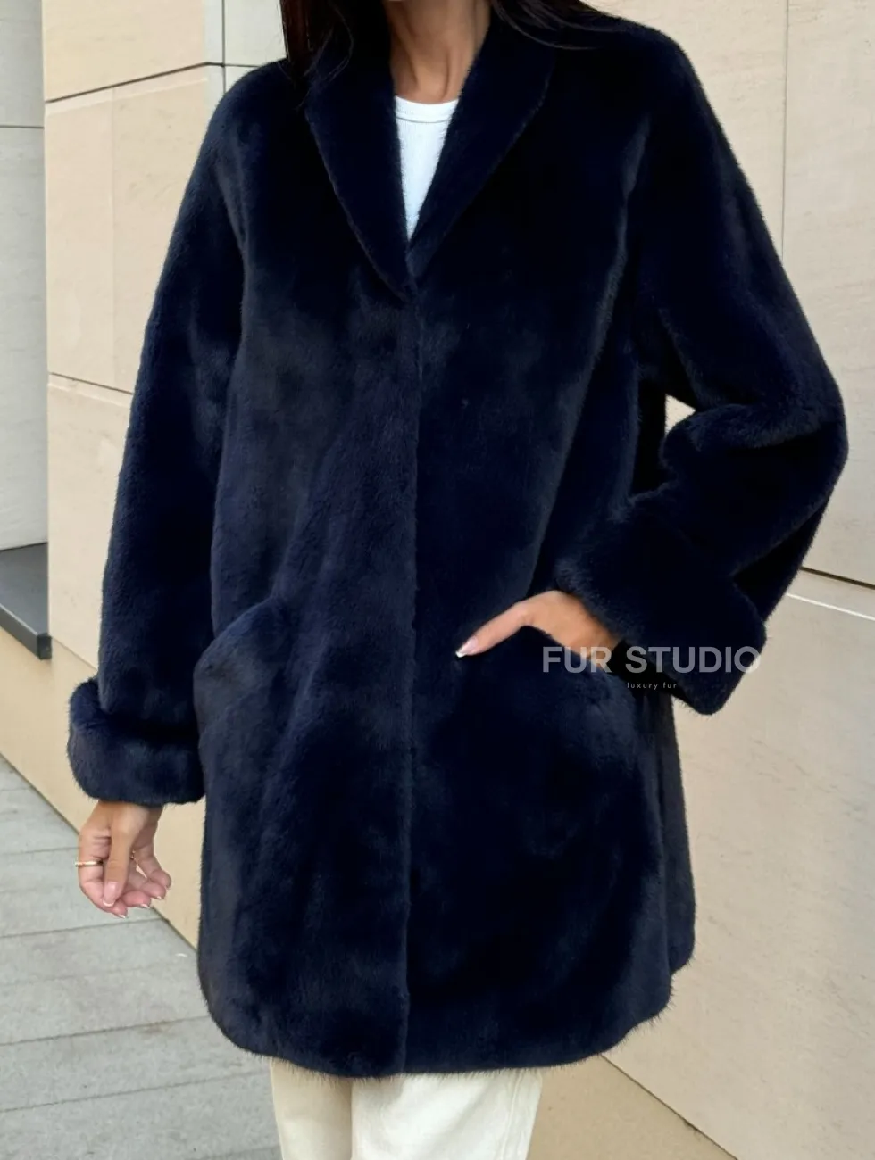 Мех данной шубы аукционная норка , цвет синий. Предлагается в размерах от 40 до 50. Длина модели 75-80 см, что выгодно подчеркивает фигуру девушек. Эта модель идеально подойдет для девушек и женщин, предпочитающих роскошные натуральные меха.