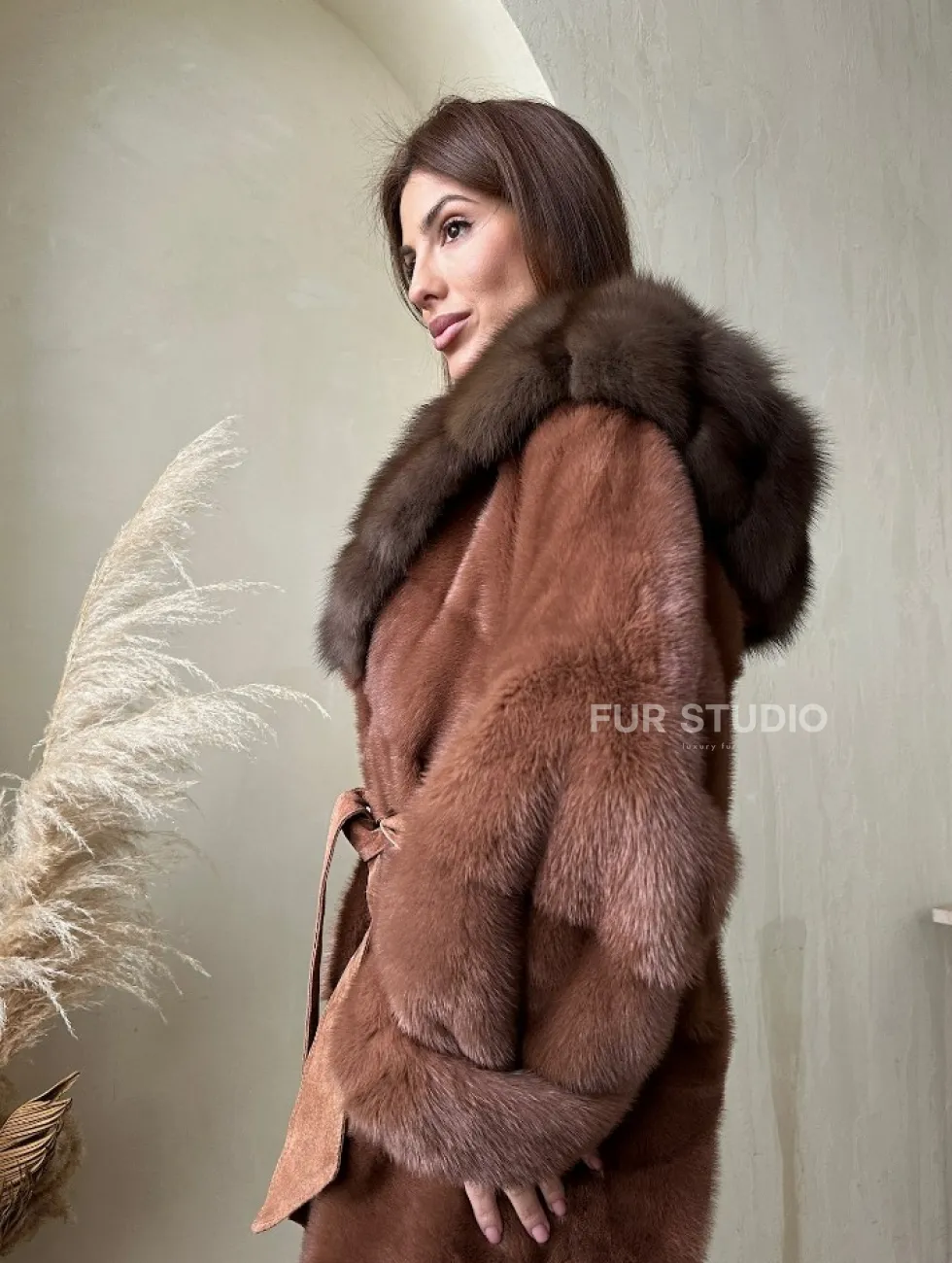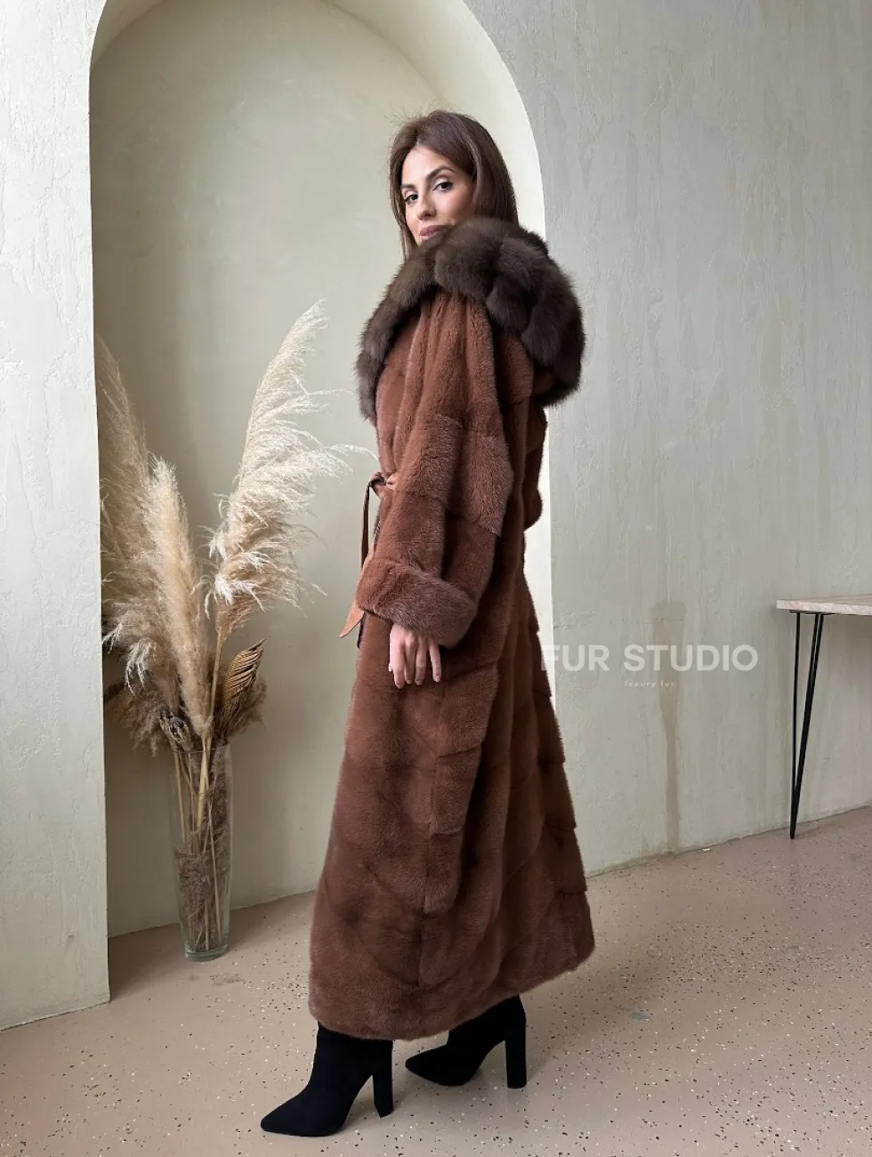 Шуба из аукционной норки с капюшоном из куницы - цвет терракотовый доступна для покупки в нашем шоуруме Furs Studio в Чите. У нас так же есть доставка во все города России. Добавьте немного роскоши в свой гардероб с этой шубой, которая будет служить вам многие годы.