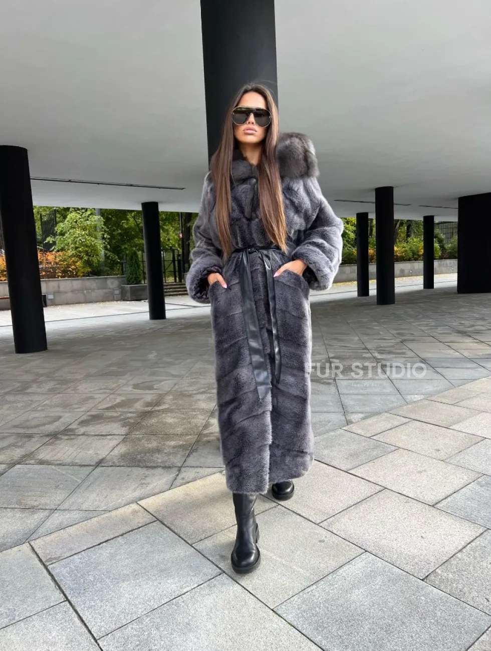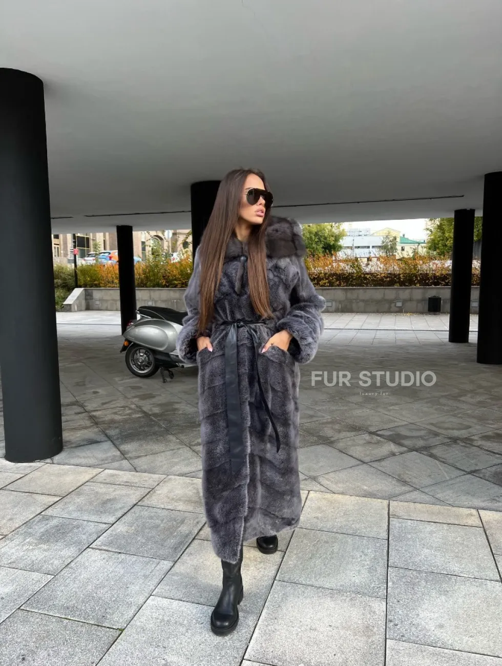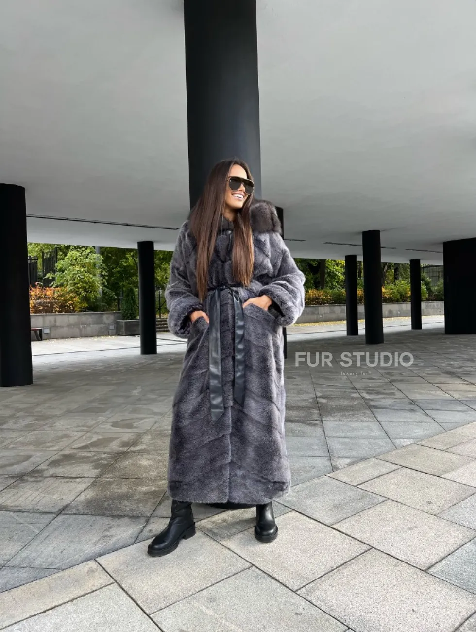 Шуба из аукционной норки с капюшоном в цвете графит – выбор независимых женщин с изысканным вкусом. Норка приятна на ощупь и согреет владелицу в холодную зиму. Роскошный капюшон позаботится о прическе. Необычный цвет подчеркнет роскошный оттенок волос и кожи хозяйки. Оригинальный пояс выделит талию и создаст силуэт «песочные часы».