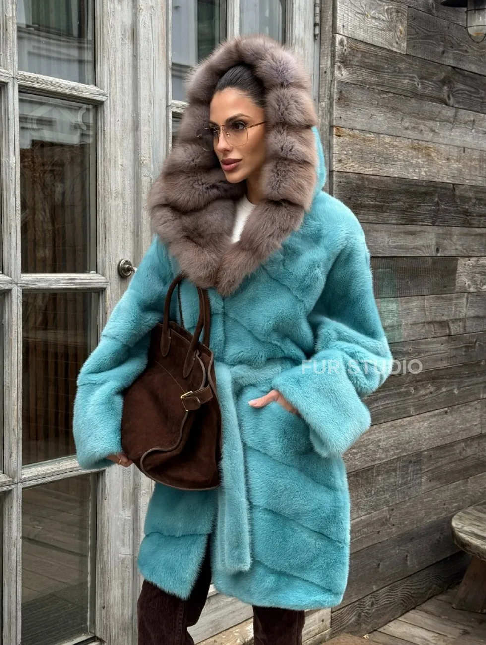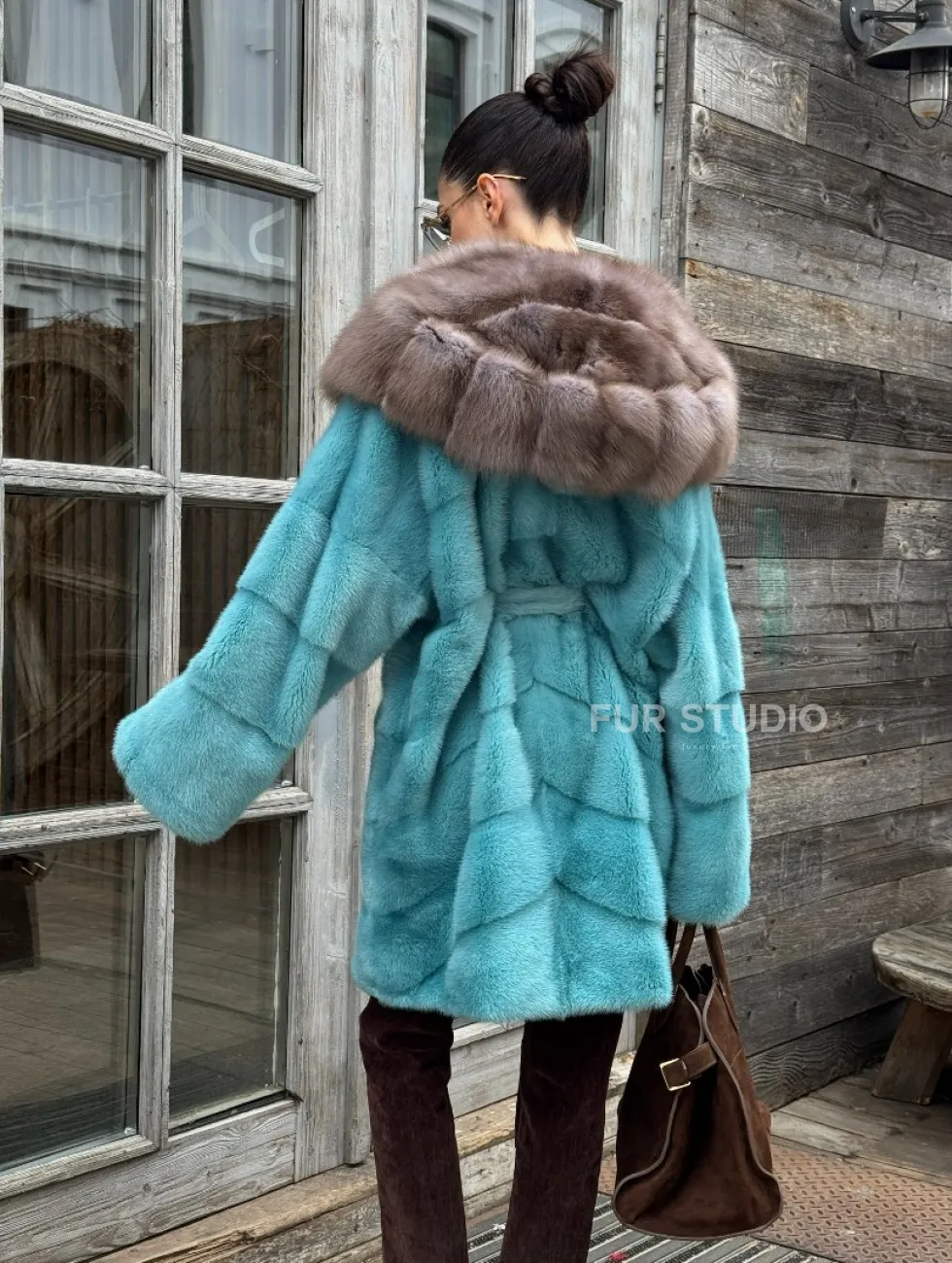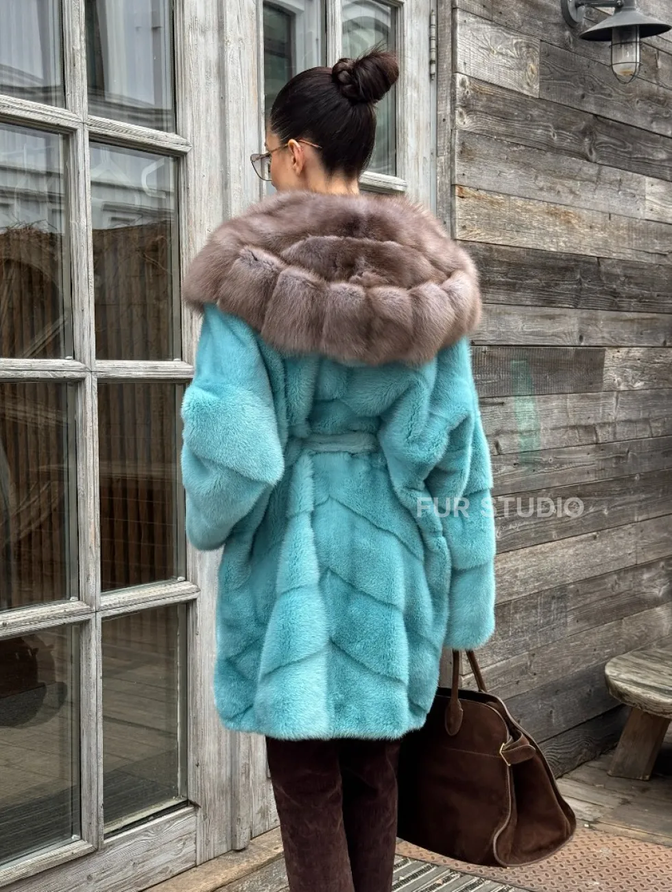 Шуба из аукционной норки средней длины с капюшоном из куницы доступна для покупки в нашем шоуруме Furs Studio в Чите. У нас так же есть доставка во все города России. Добавьте немного роскоши в свой гардероб с этой шубой, которая будет служить вам многие годы.