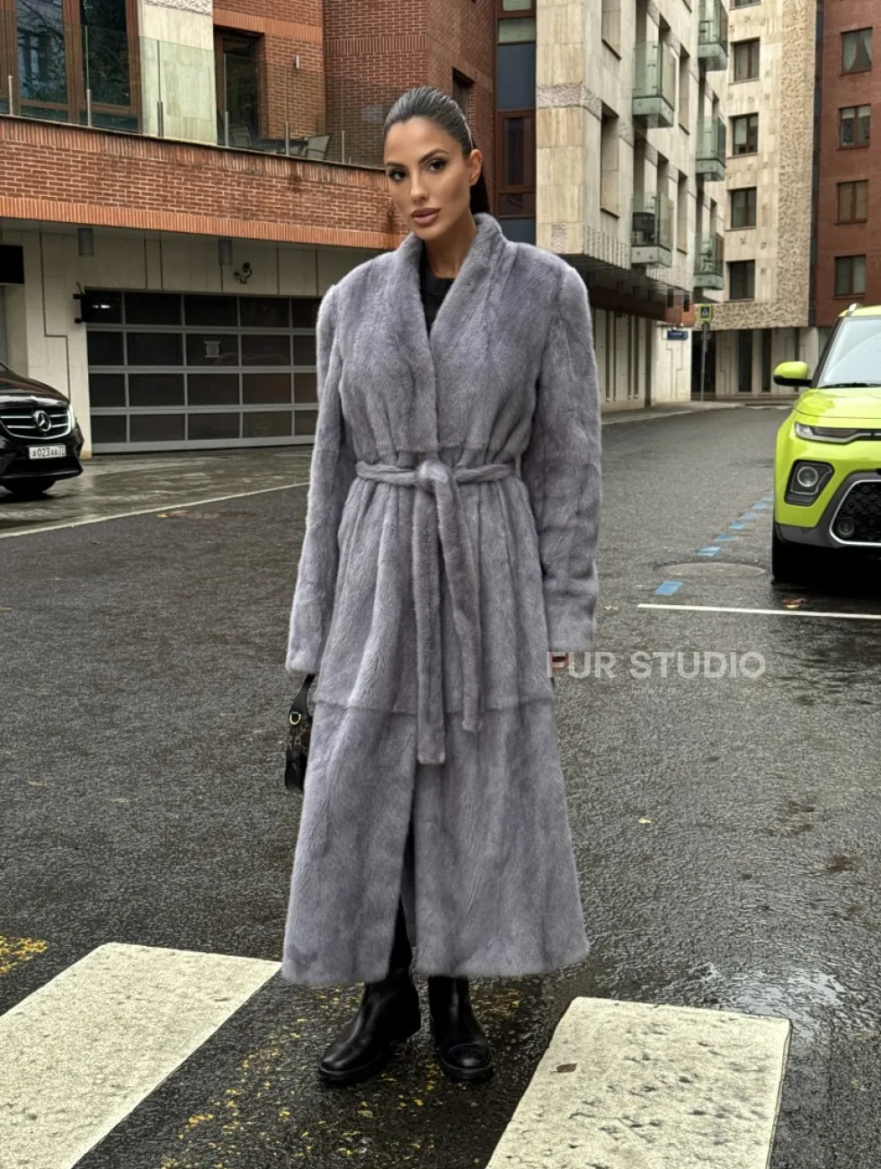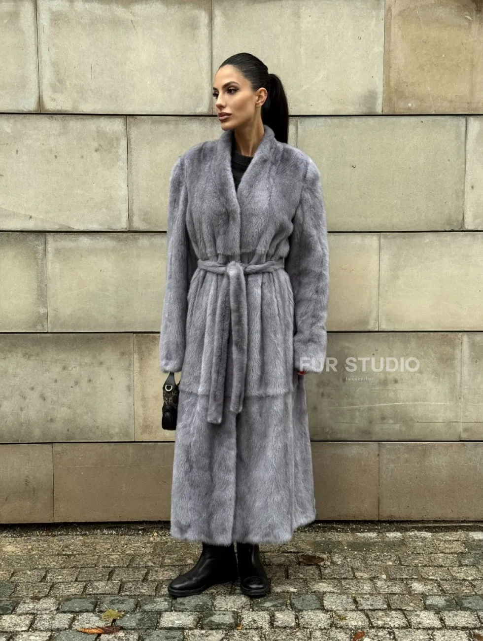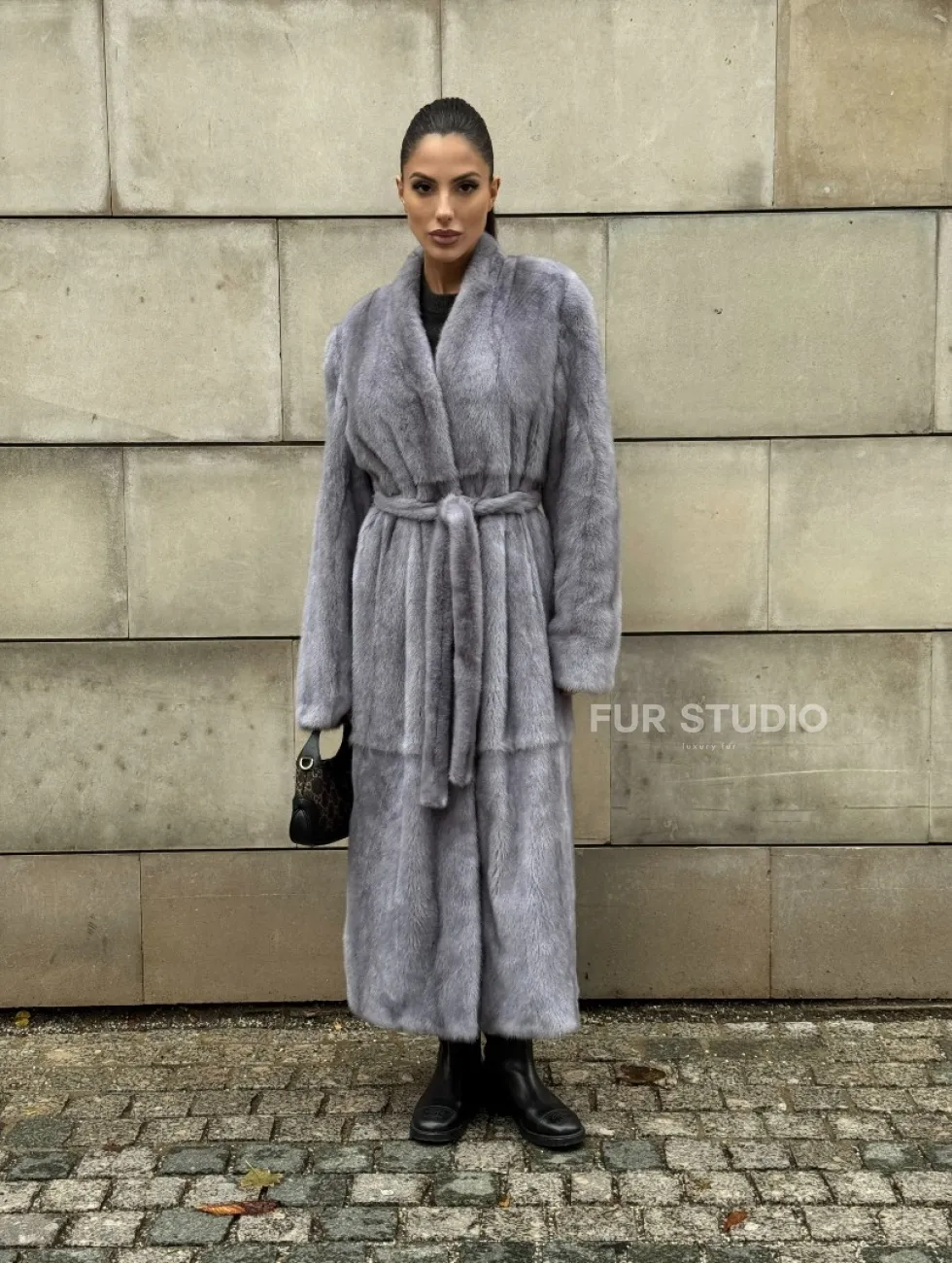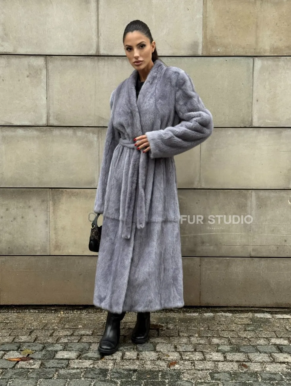 Шуба из голубой скандинавской норки без воротника с поясом “Fashion trend 2024-2025“ доступна для покупки в нашем шоуруме Furs Studio в Чите. У нас так же есть доставка во все города России. Добавьте немного роскоши в свой гардероб с этой шубой, которая будет служить вам многие годы.