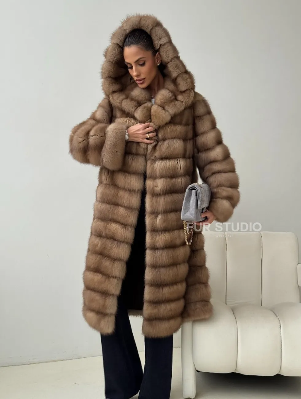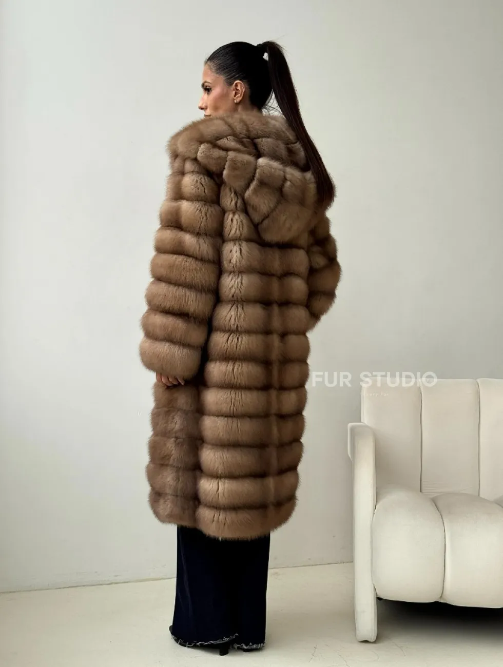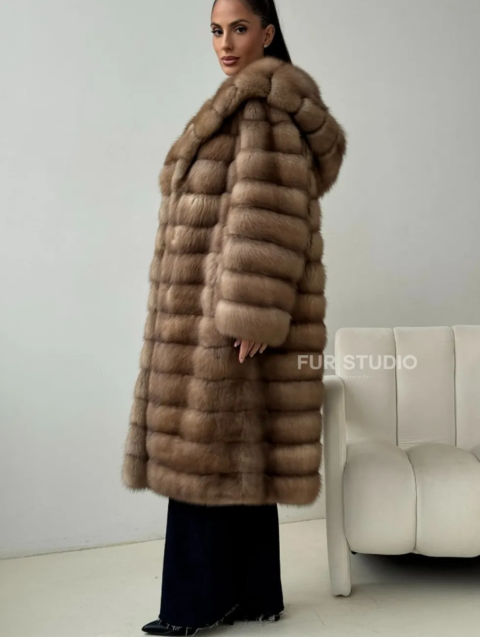 Шуба из куницы с капюшоном кобра доступна для покупки в нашем шоуруме Furs Studio в Чите. У нас так же есть доставка во все города России. Добавьте немного роскоши в свой гардероб с этой шубой, которая будет служить вам многие годы.