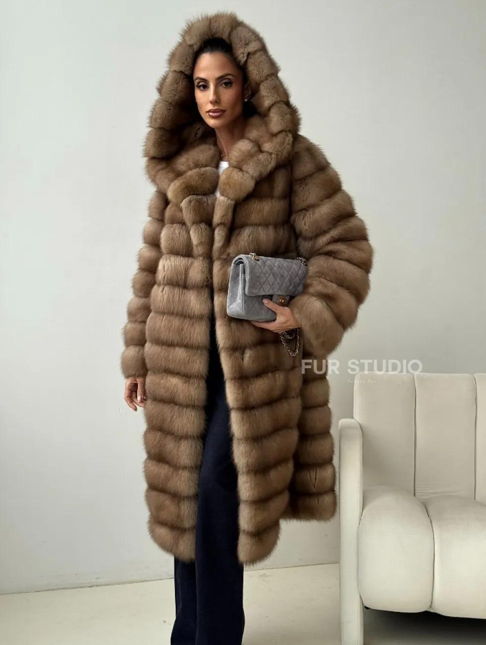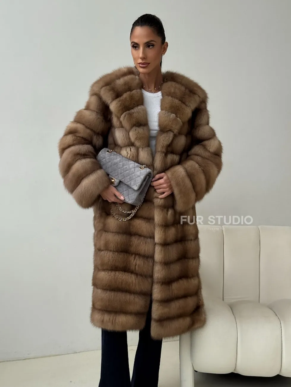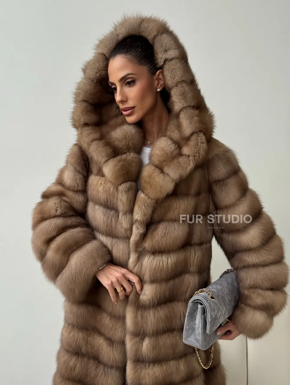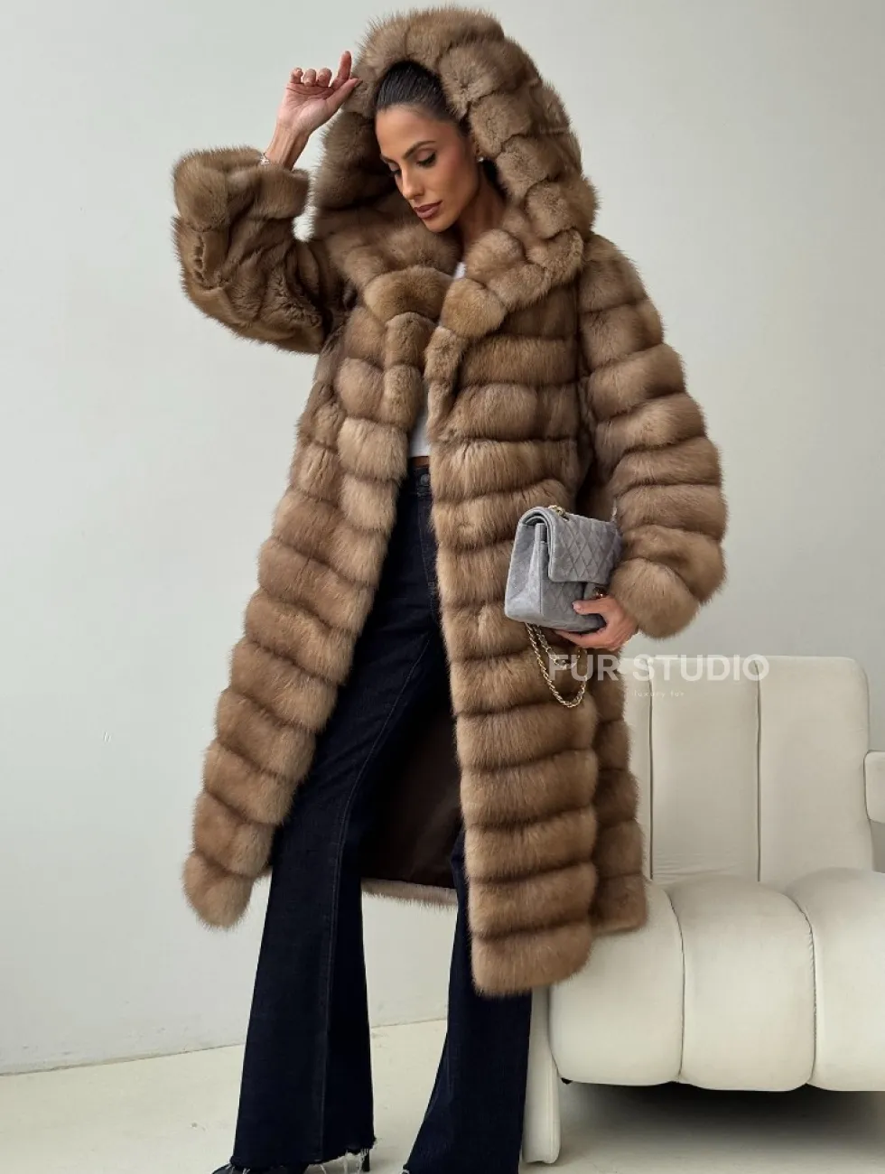 Шуба из куницы с капюшоном кобра доступна для покупки в нашем шоуруме Furs Studio в Чите. У нас так же есть доставка во все города России. Добавьте немного роскоши в свой гардероб с этой шубой, которая будет служить вам многие годы.