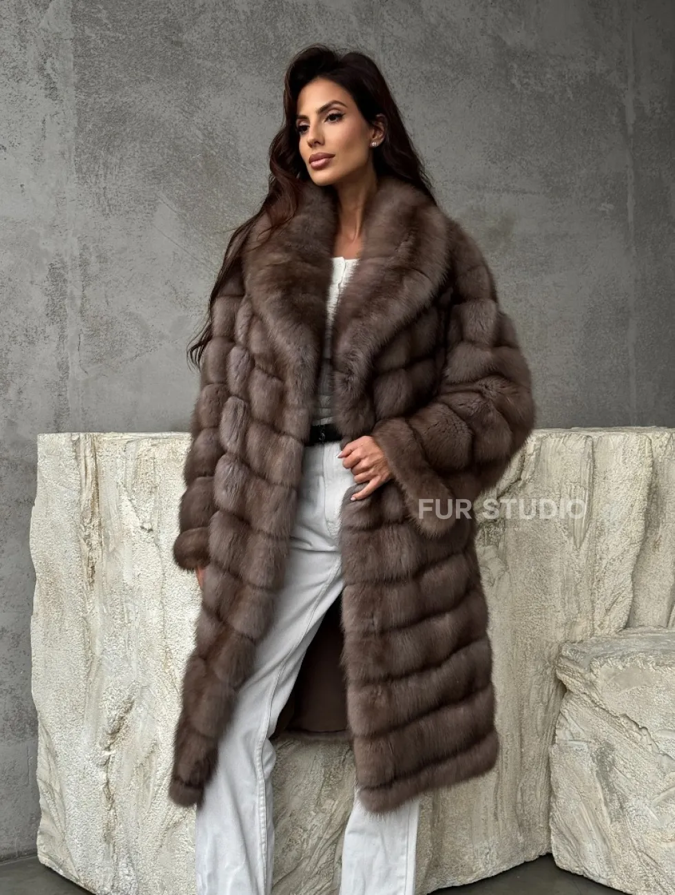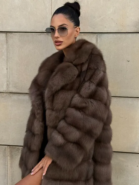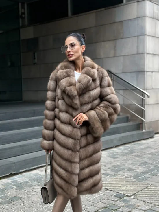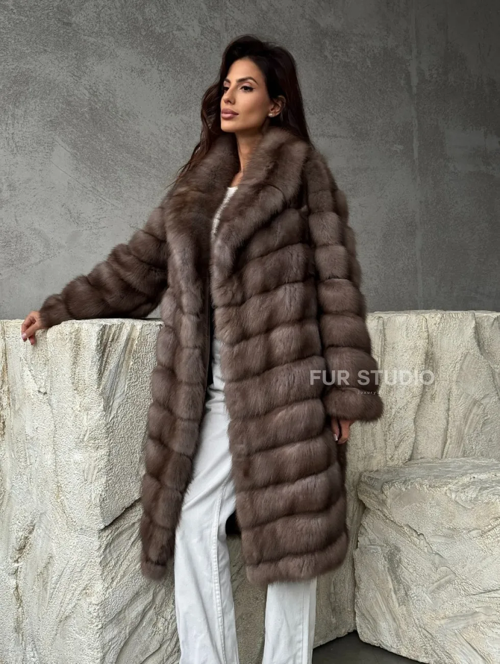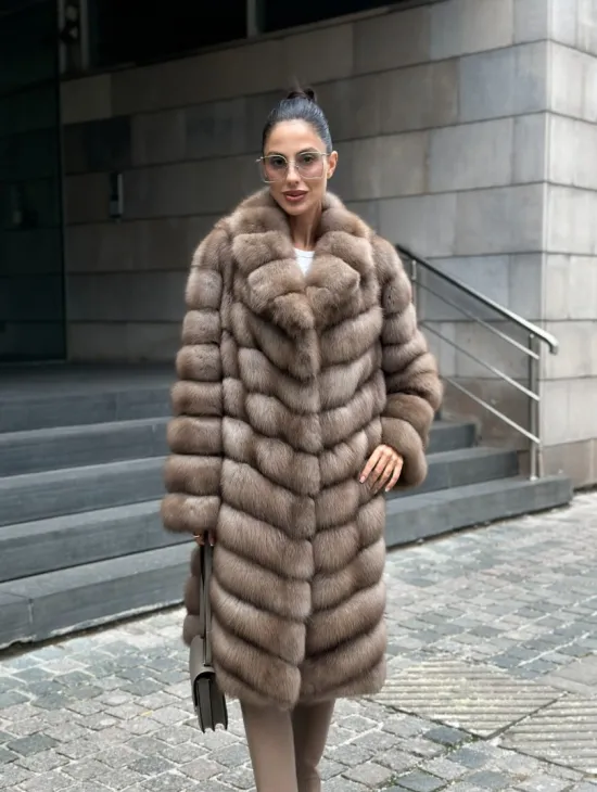 Мех данной шубы лесная куница, цвет натуральный. Предлагается в размерах от 42 до 50. Длина модели 110-115 см , что выгодно подчеркивает фигуру девушек. Эта модель идеально подойдет для девушек и женщин, предпочитающих роскошные натуральные меха.
