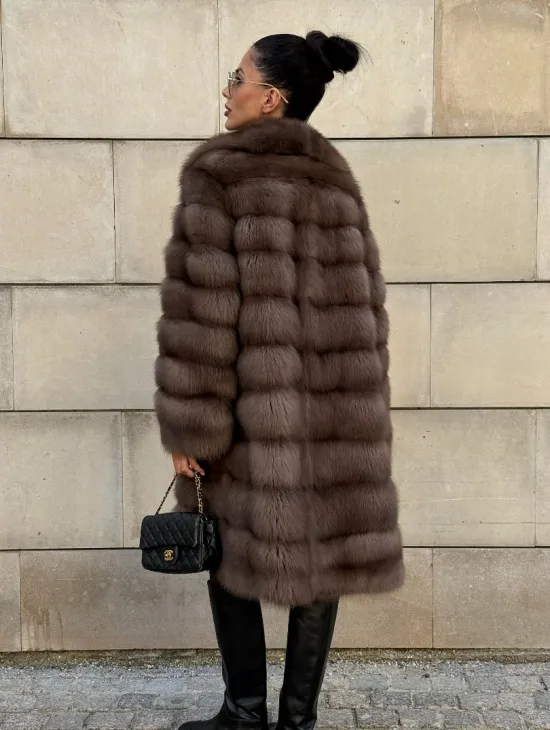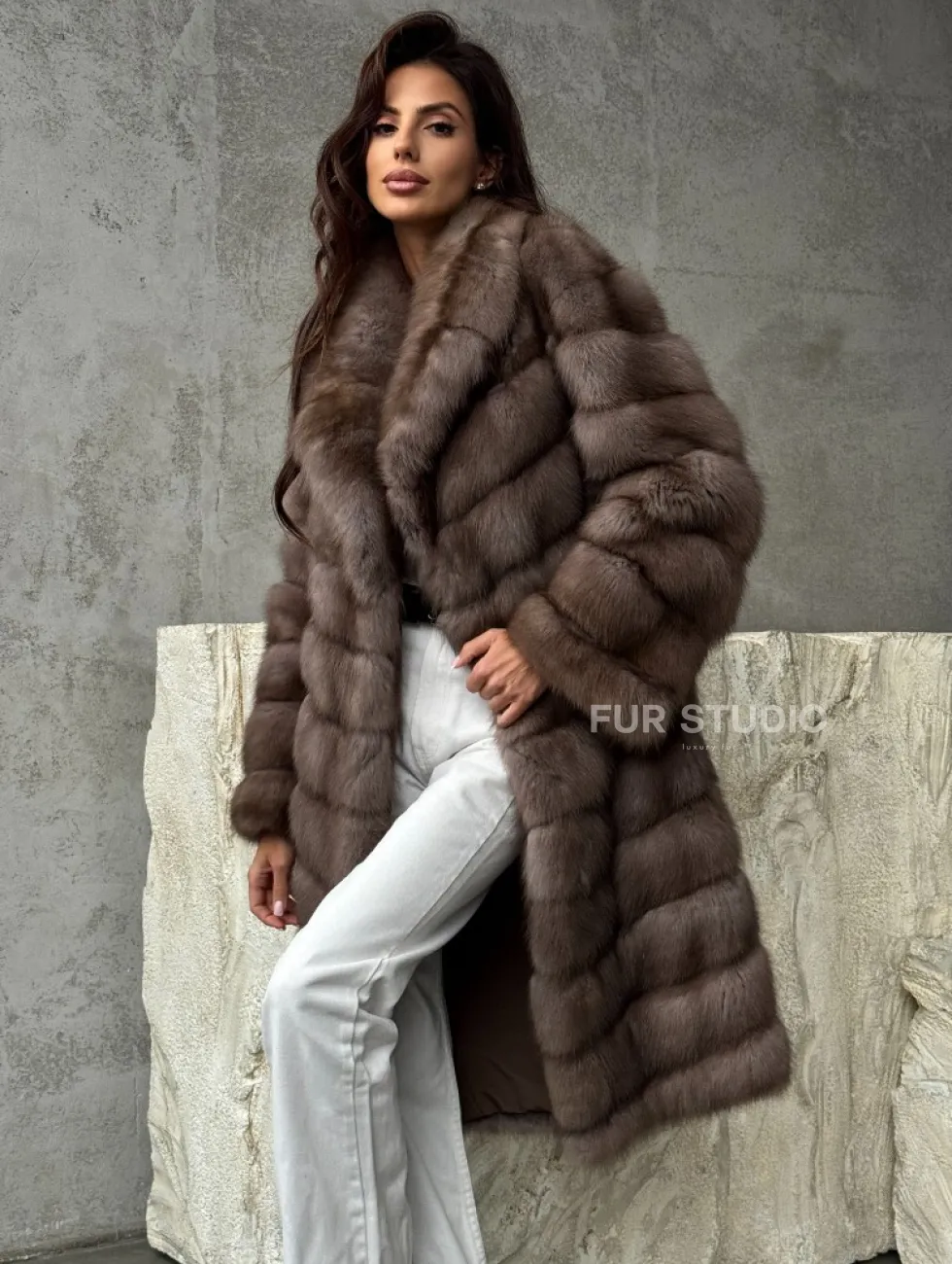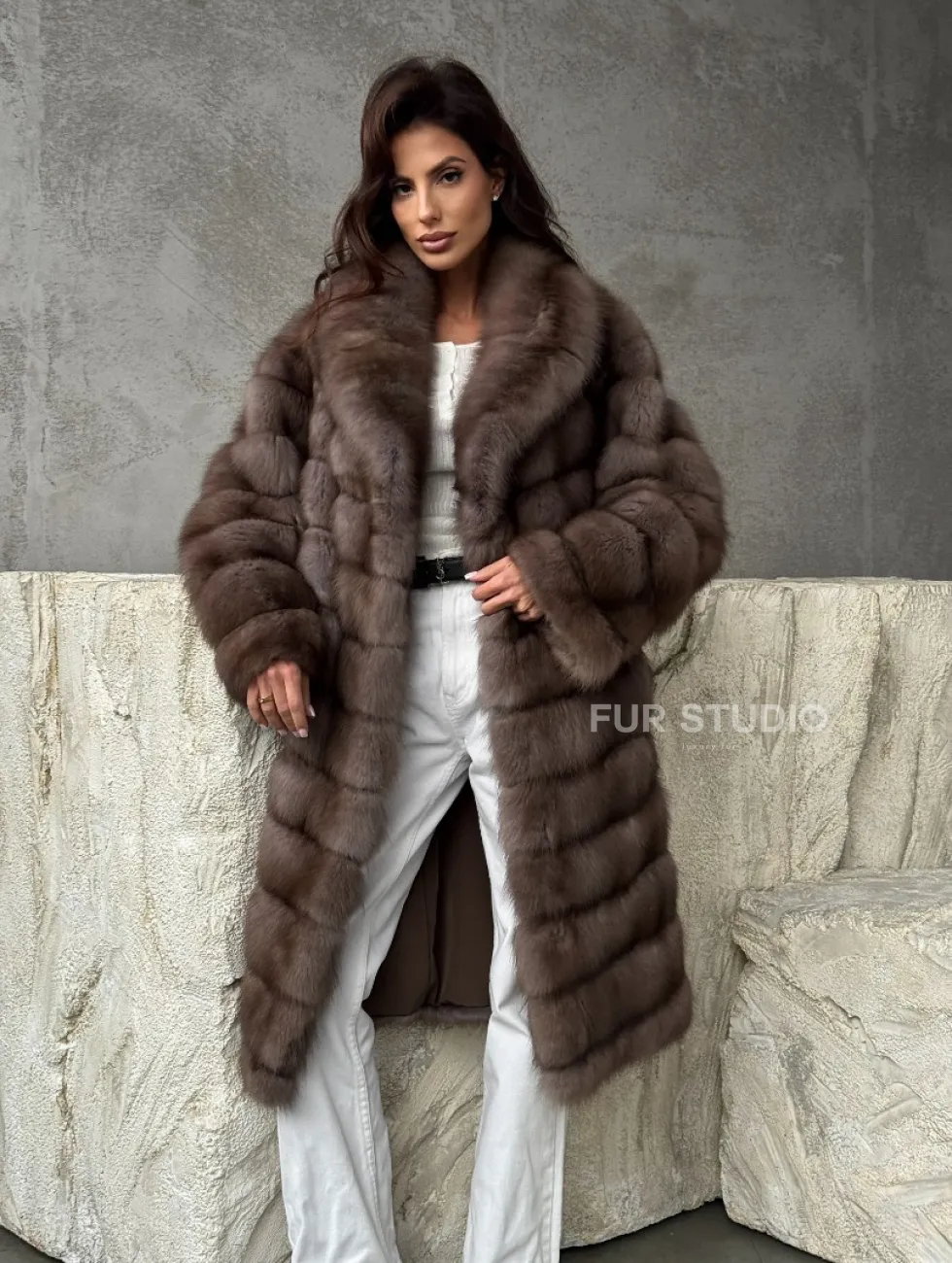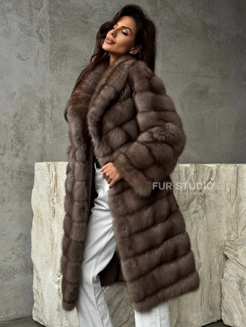 Мех данной шубы лесная куница, цвет натуральный. Предлагается в размерах от 42 до 50. Длина модели 110-115 см , что выгодно подчеркивает фигуру девушек. Эта модель идеально подойдет для девушек и женщин, предпочитающих роскошные натуральные меха.