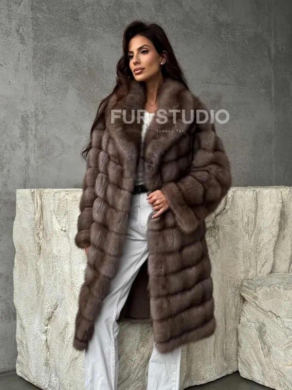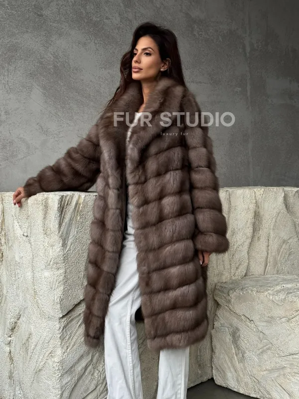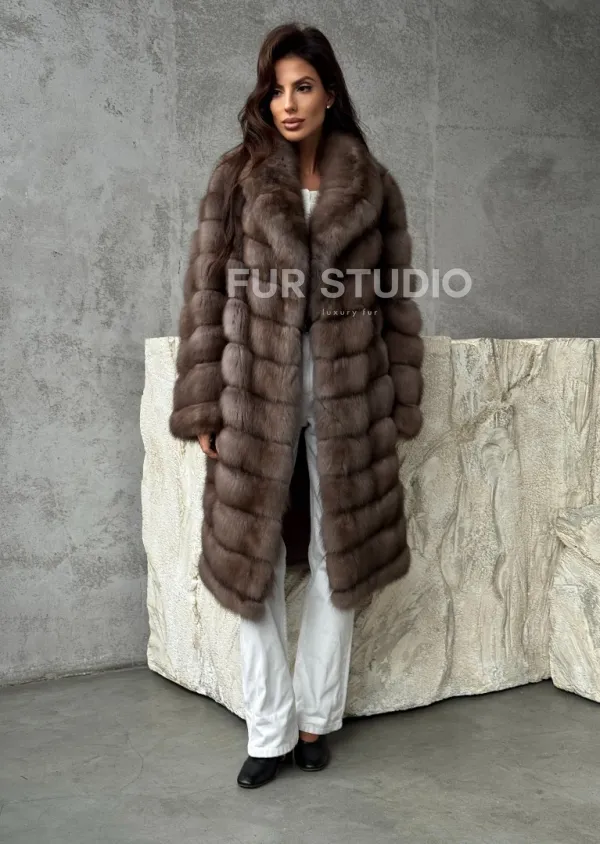 Мех данной шубы лесная куница, цвет натуральный. Предлагается в размерах от 42 до 50. Длина модели 105-110 см , что выгодно подчеркивает фигуру девушек. Эта модель идеально подойдет для девушек и женщин, предпочитающих роскошные натуральные меха.