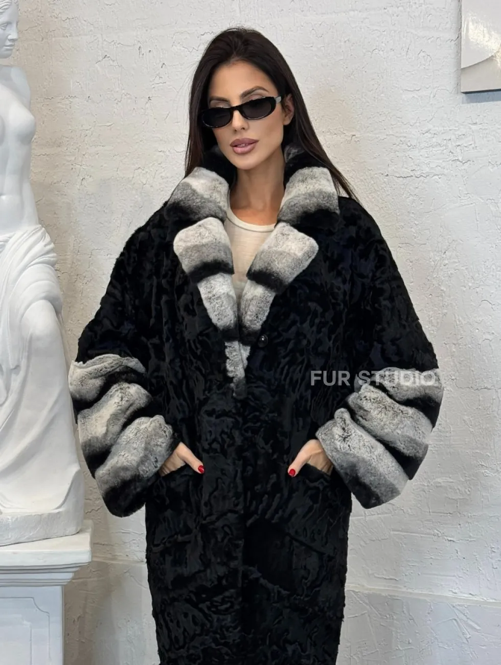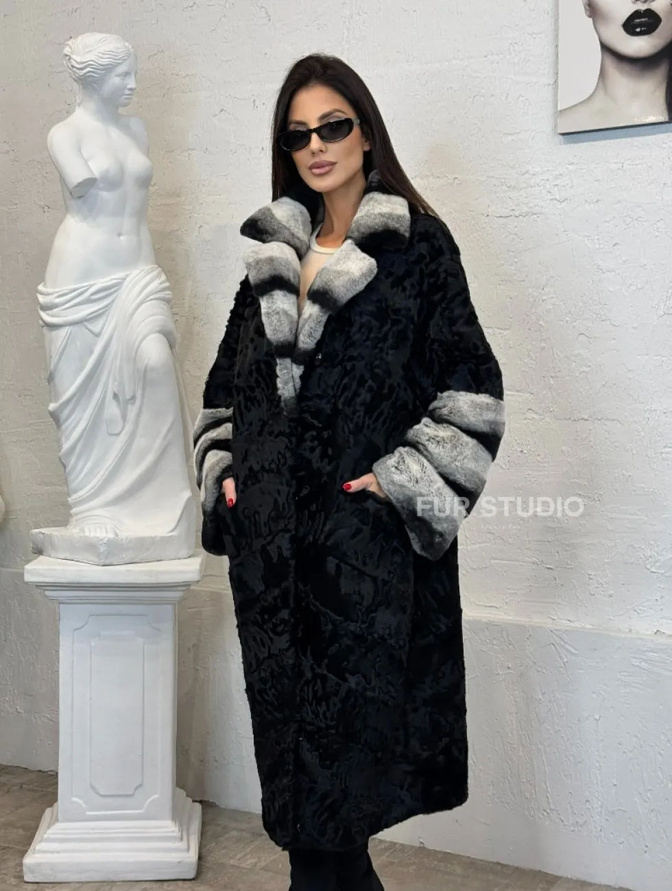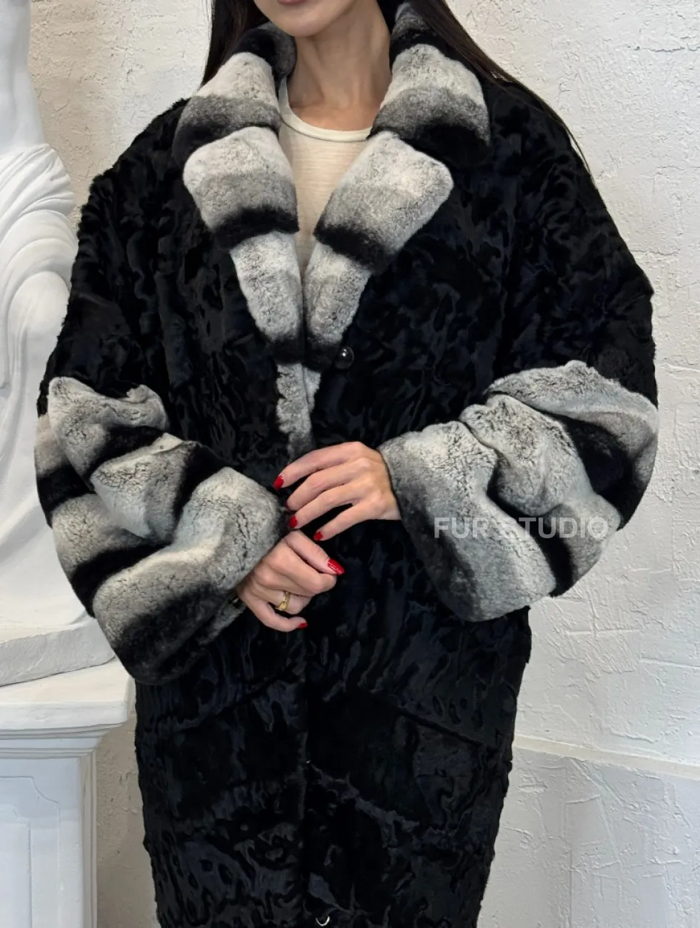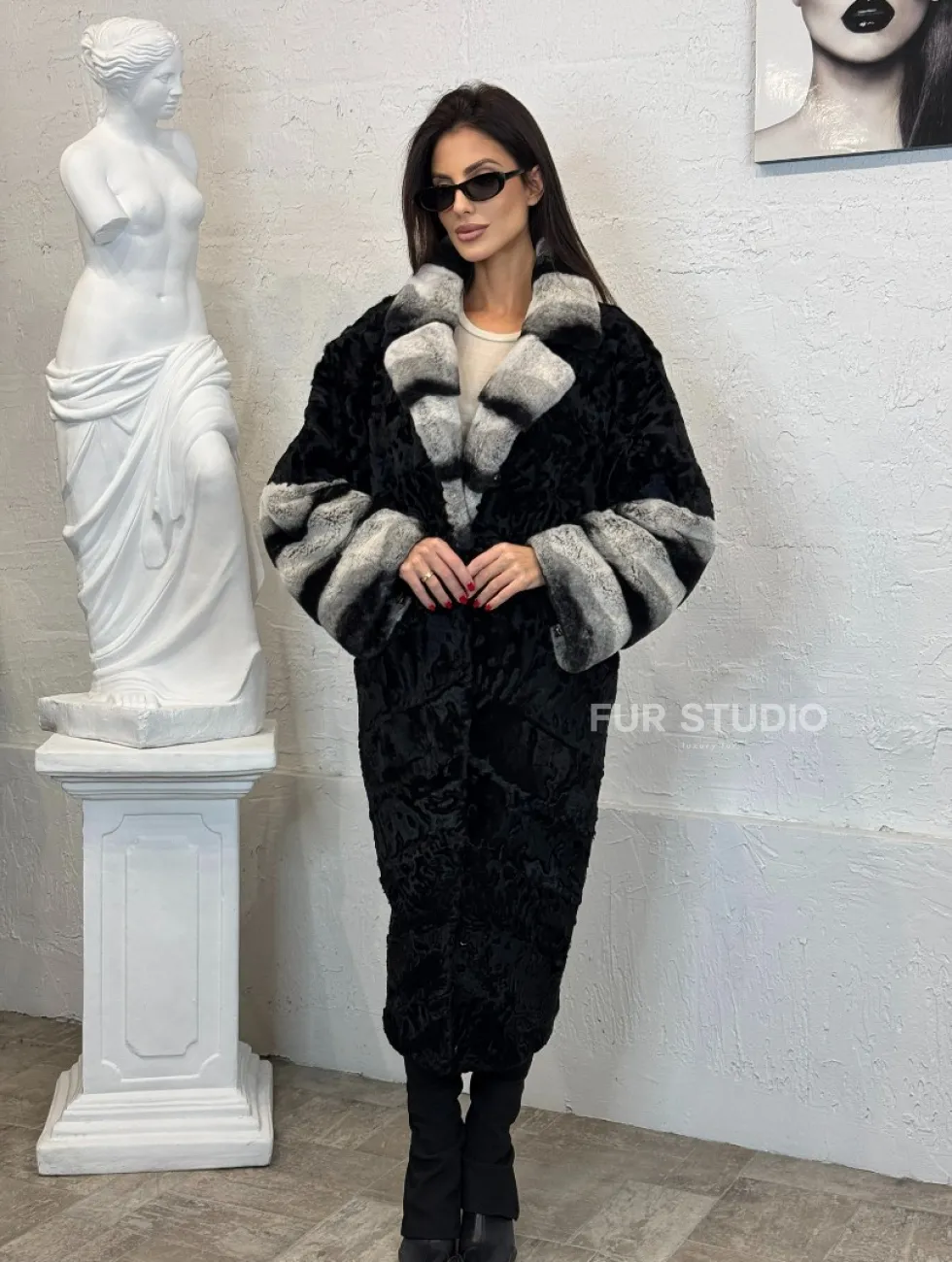Шуба из меха афганского каракуля с отделкой из щипаной норки под шиншиллу доступна для покупки в нашем шоуруме Furs Studio в Чите. У нас так же есть доставка во все города России. Добавьте немного роскоши в свой гардероб с этой шубой, которая будет служить вам многие годы.