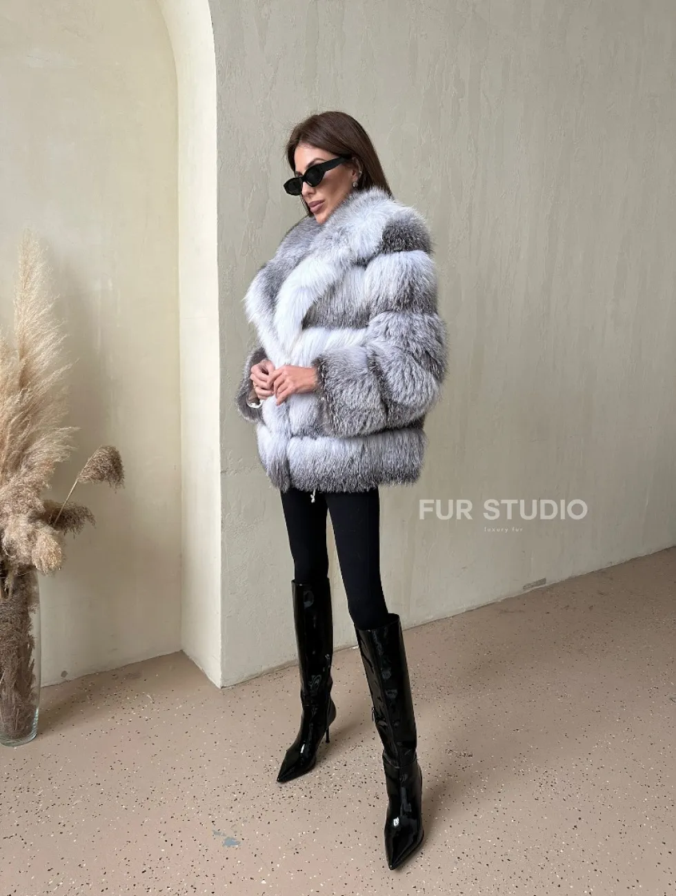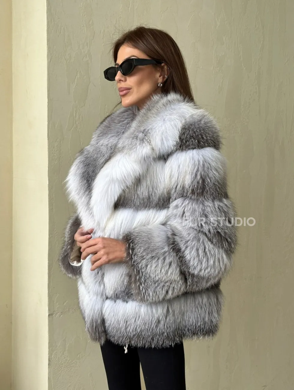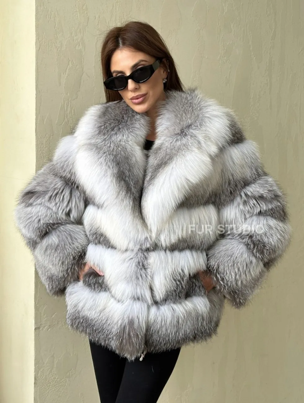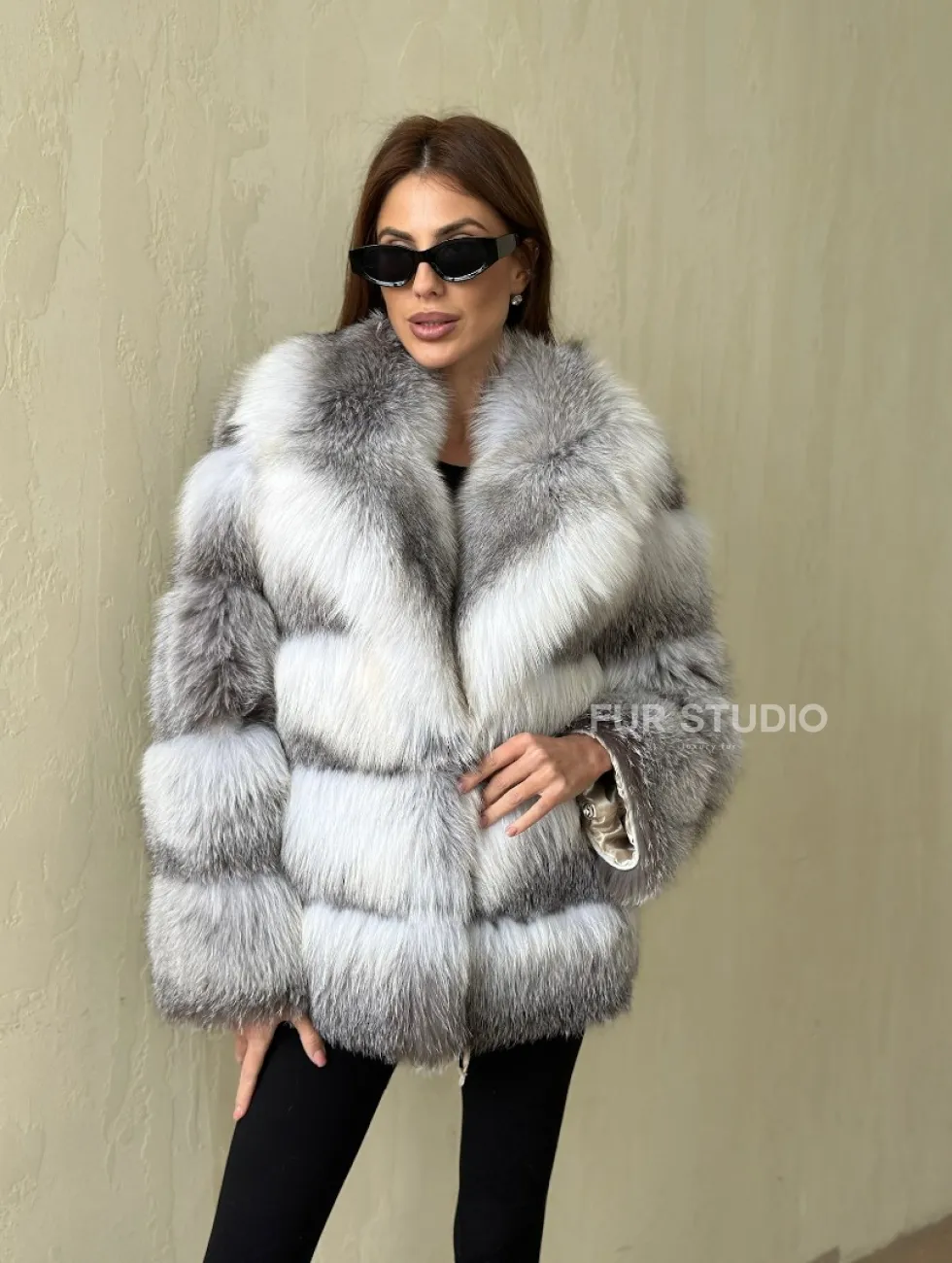 Шуба из меха арктической лисы - отличный выбор женщин, которые любят выглядеть стильно в зимнее время года. Мех смотрится шикарно и богато. Необычная расцветка подчеркнет цвет волос и глаз владелицы. В шубе будет комфортно в холодную зиму. Широкие манжеты делают акцент на тонкости кистей.