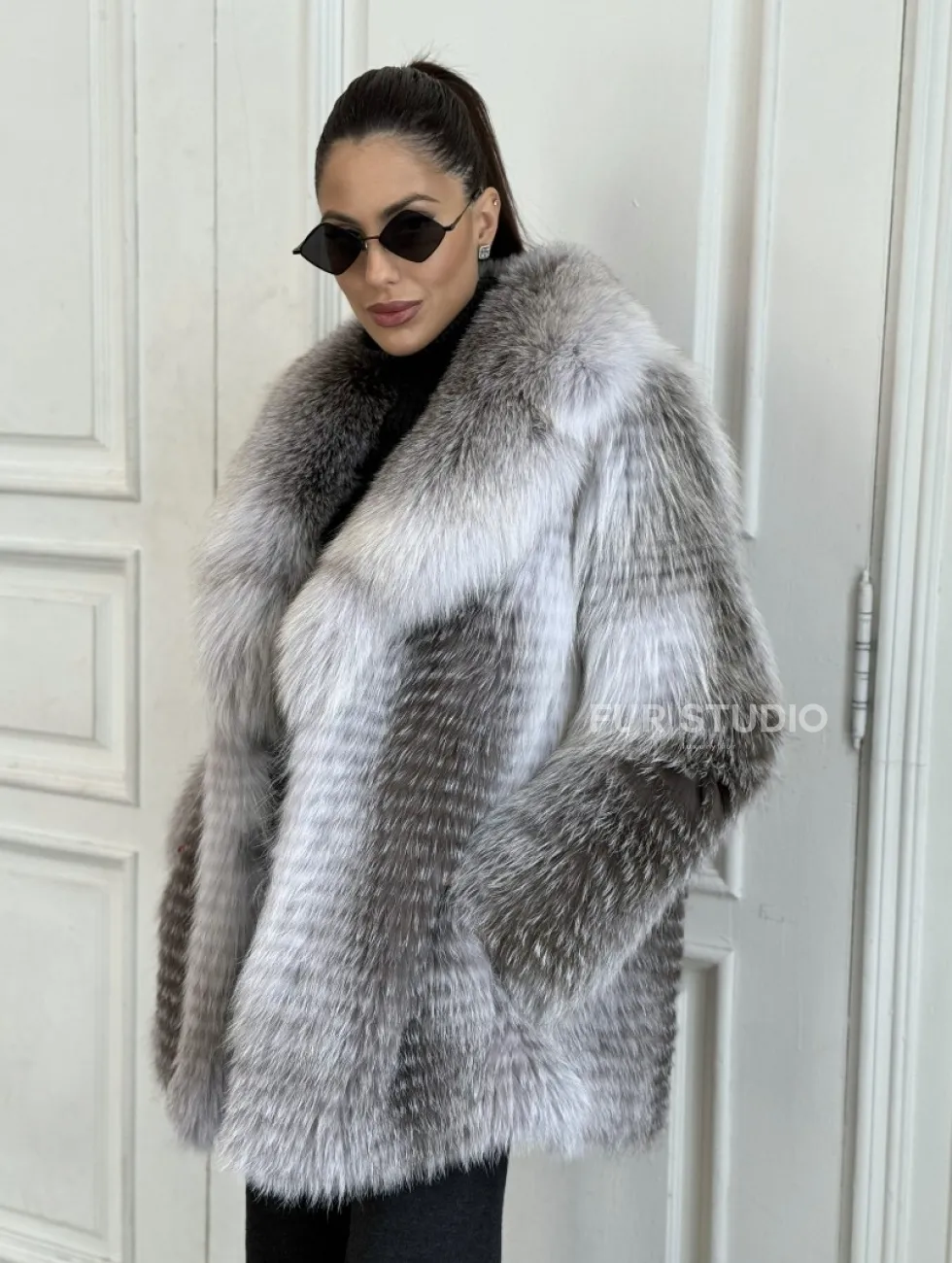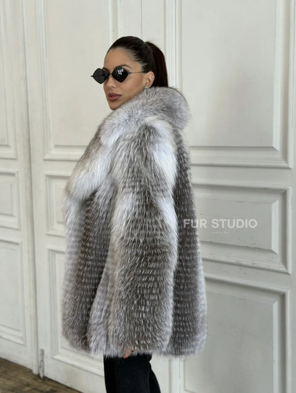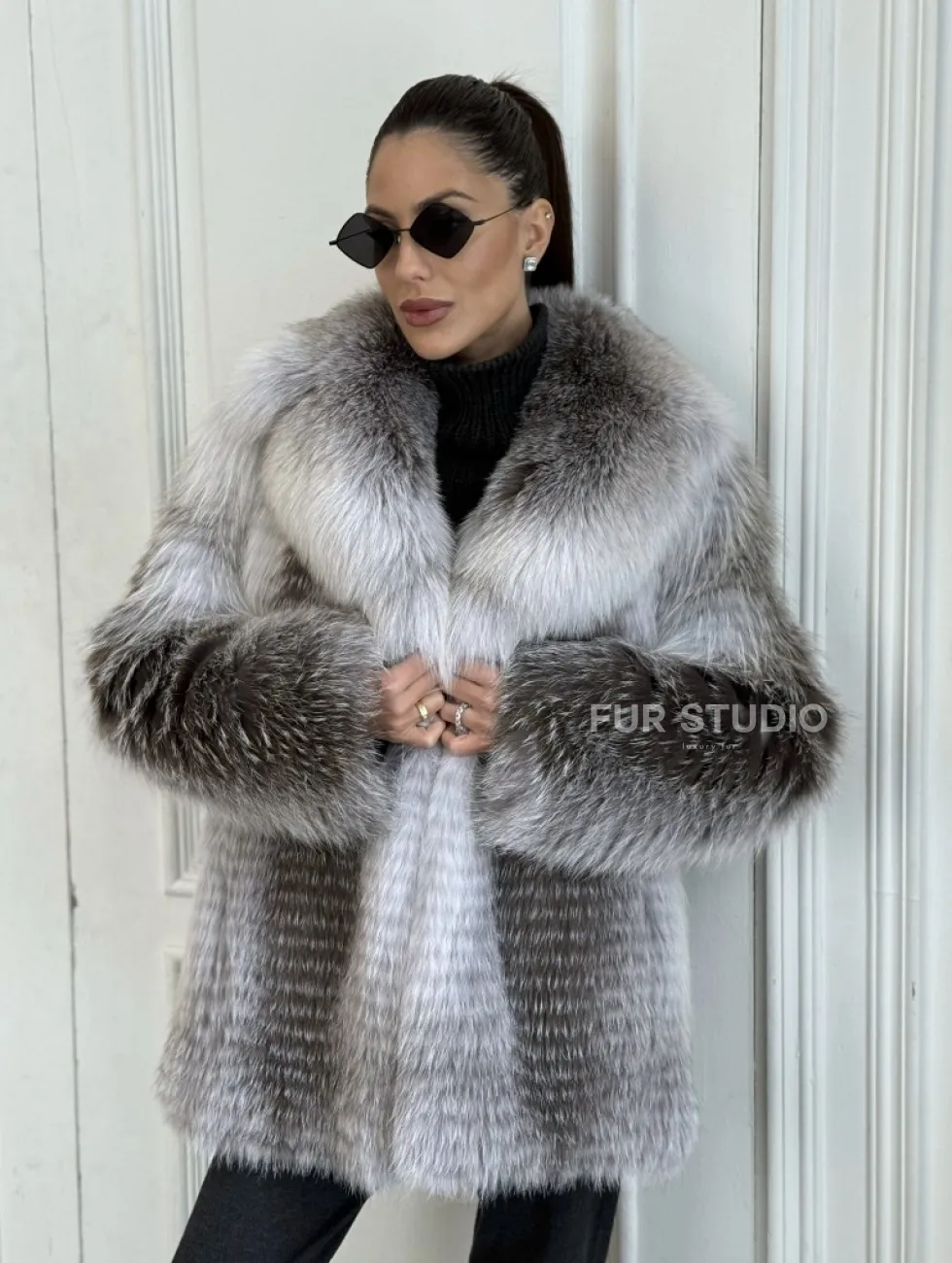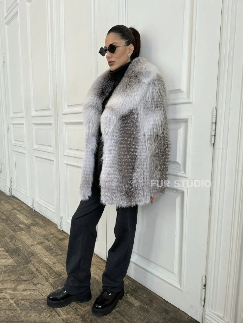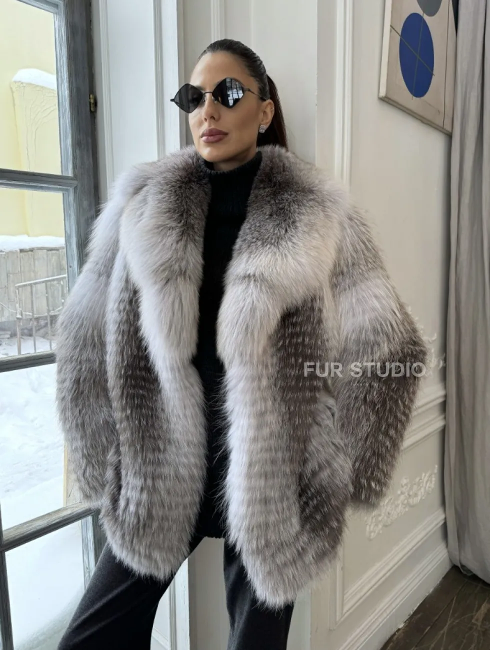 Шуба из меха арктической лисы - отличный выбор женщин, которые любят выглядеть стильно в зимнее время года. Мех смотрится шикарно и богато. Необычная расцветка подчеркнет цвет волос и глаз владелицы. В шубе будет комфортно в холодную зиму. Широкие манжеты делают акцент на тонкости кистей.