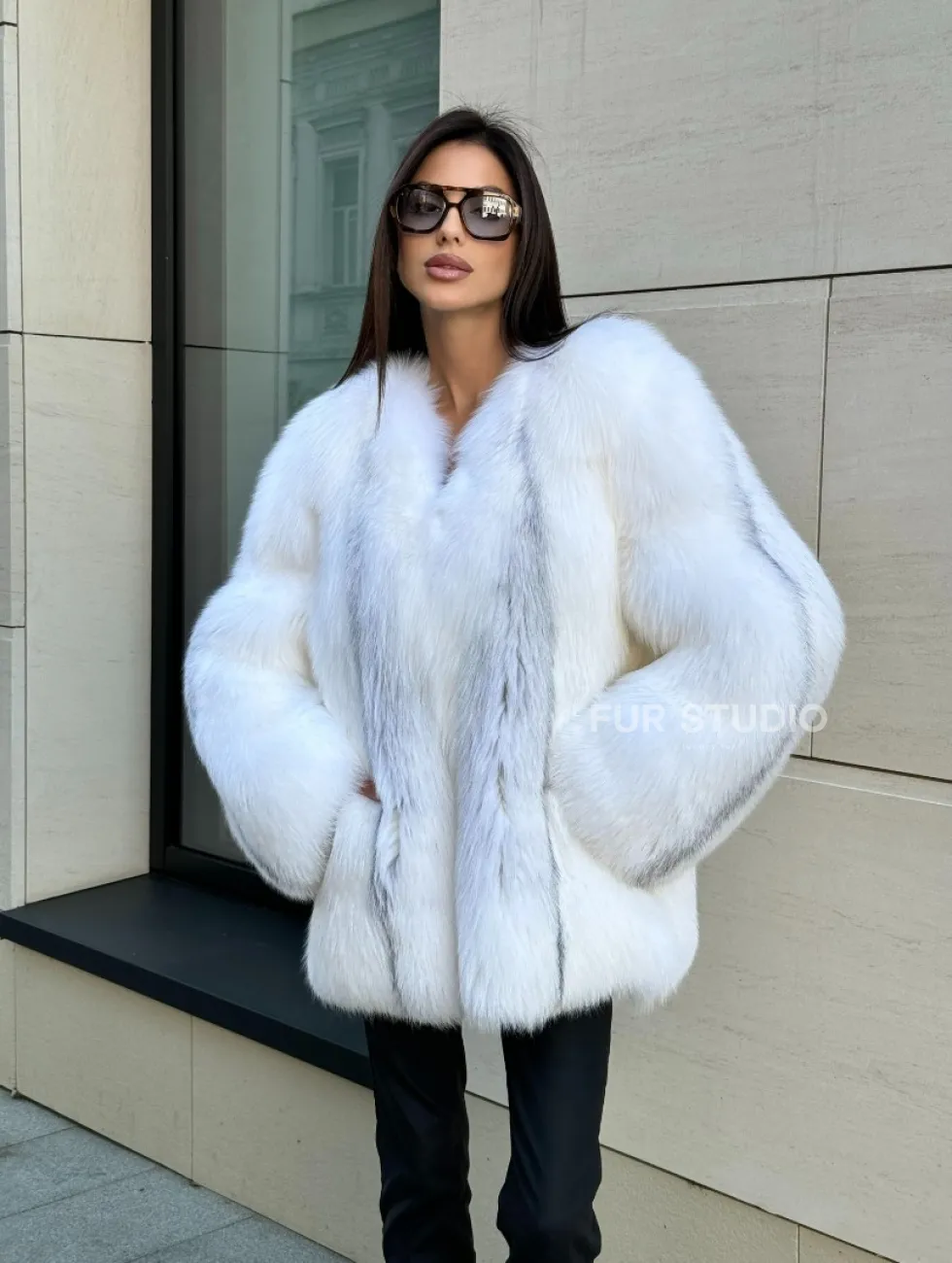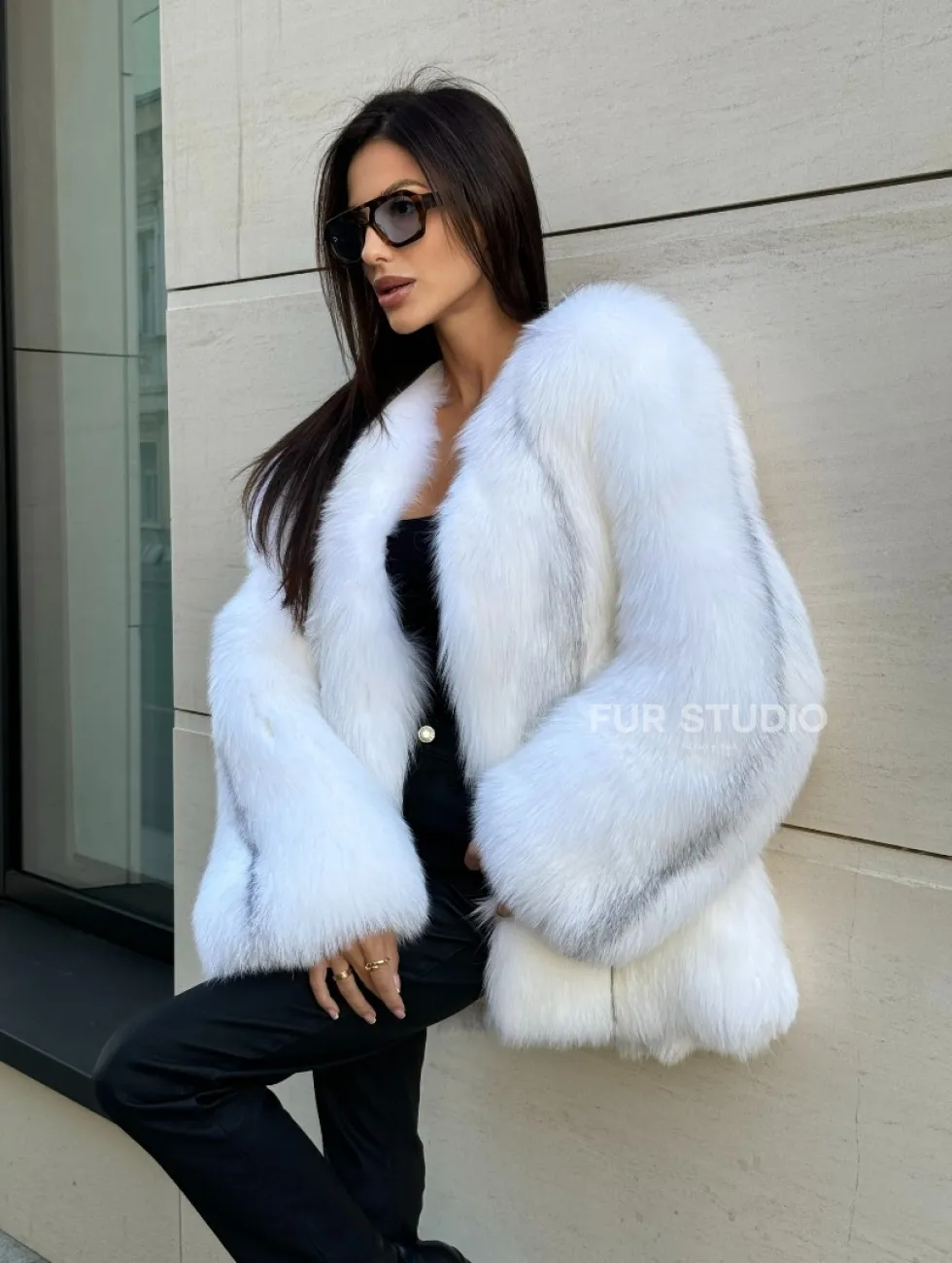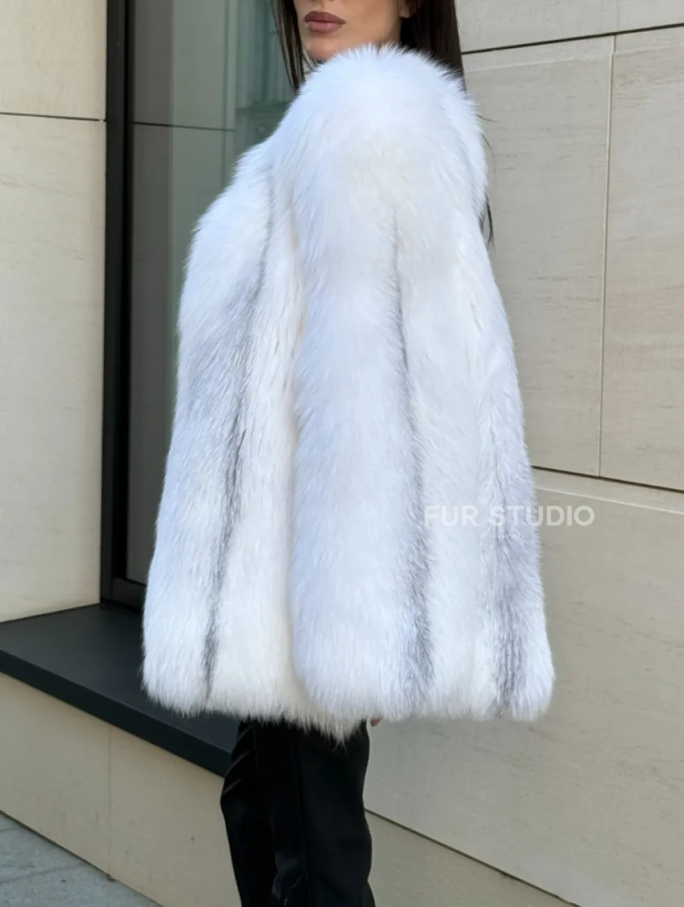 Шуба из меха белой крестовой лисы Vintage style, цельные пластины доступна для покупки в нашем шоуруме Furs Studio в Чите. У нас так же есть доставка во все города России. Добавьте немного роскоши в свой гардероб с этой шубой, которая будет служить вам многие годы.