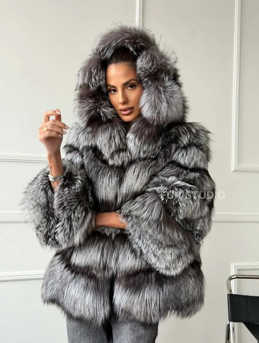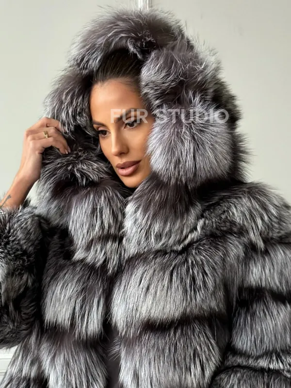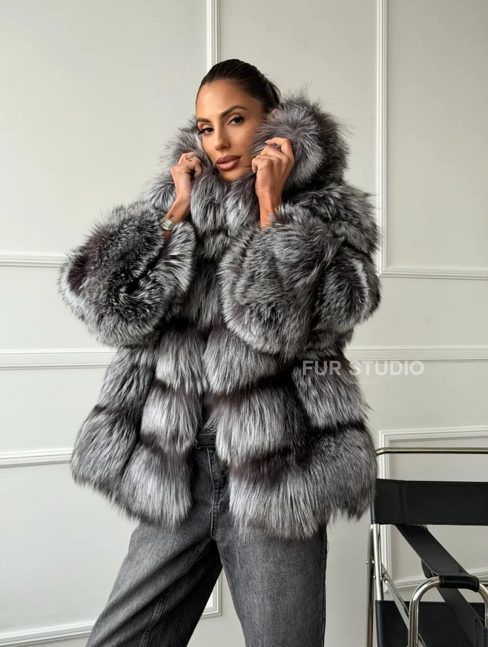 Шуба из меха чернобурки с капюшоном - серая доступна для покупки в нашем шоуруме Furs Studio в Чите. У нас так же есть доставка во все города России. Добавьте немного роскоши в свой гардероб с этой шубой, которая будет служить вам многие годы.