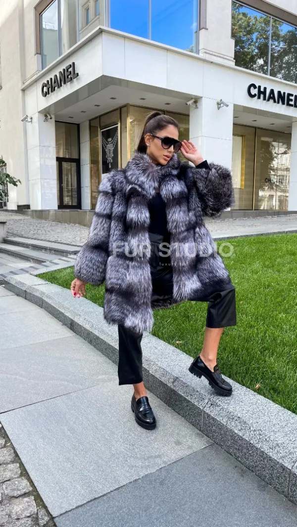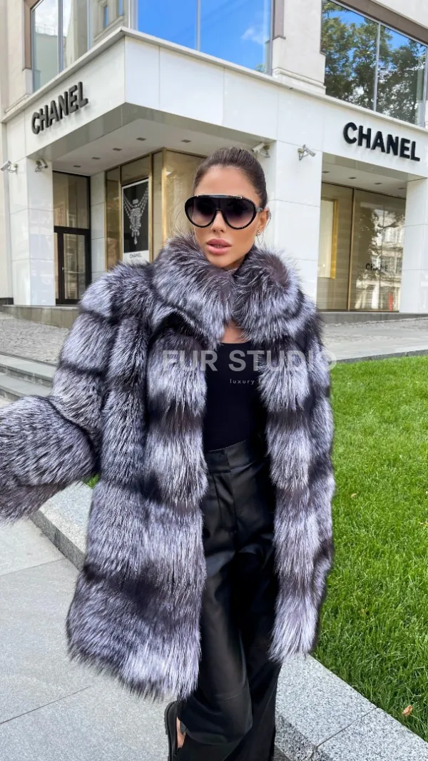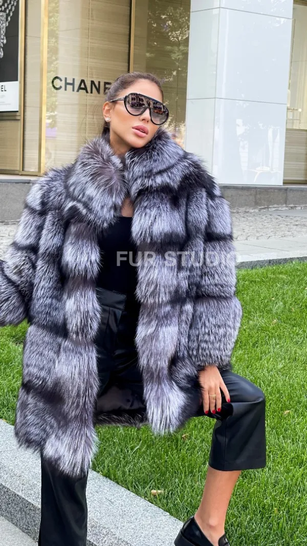 Шуба из меха чернобурой лисы 100286