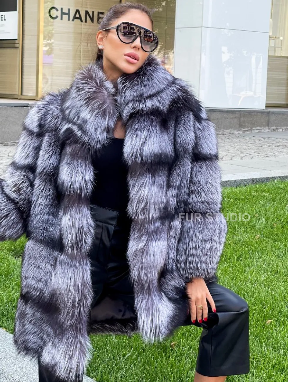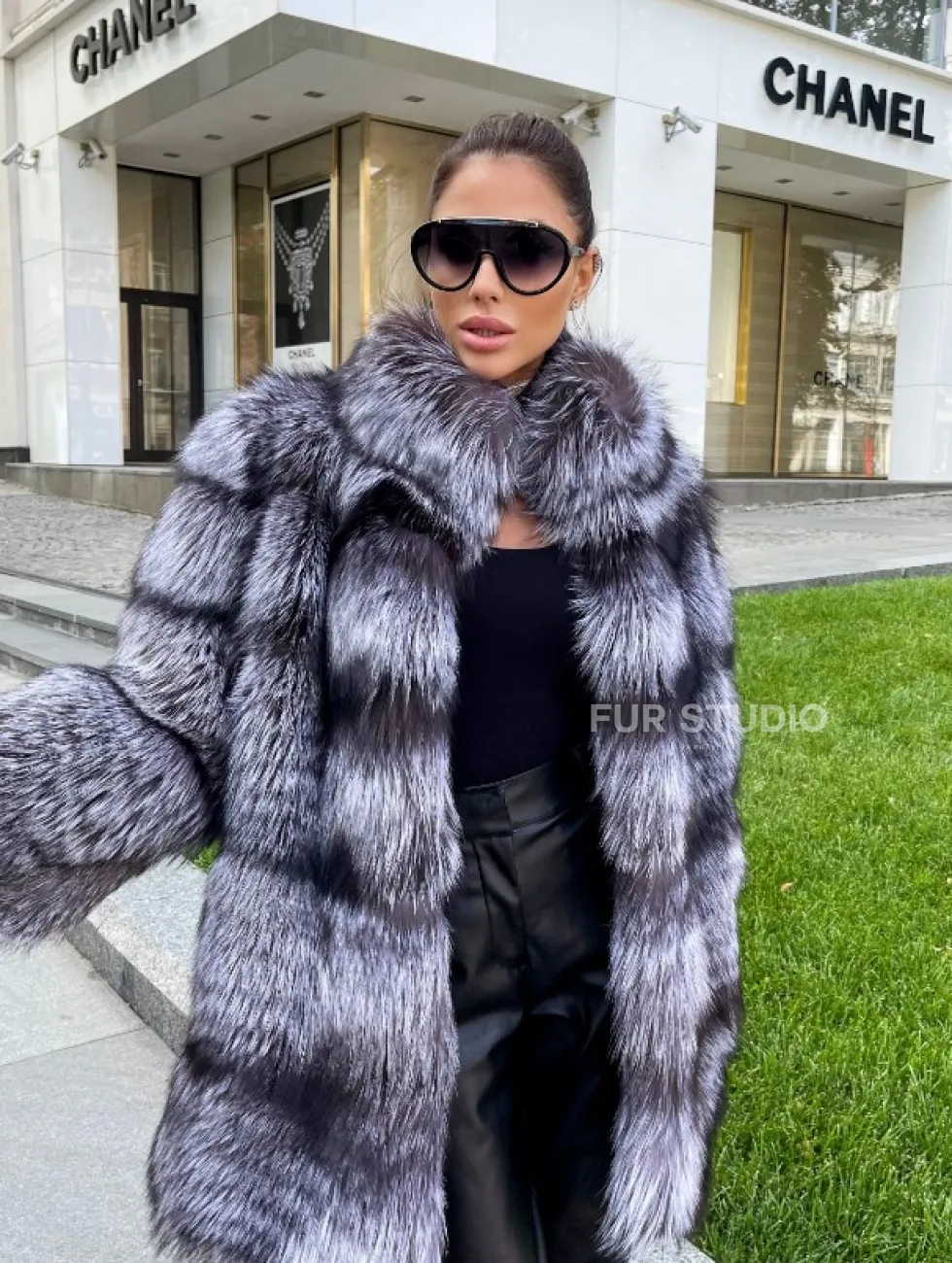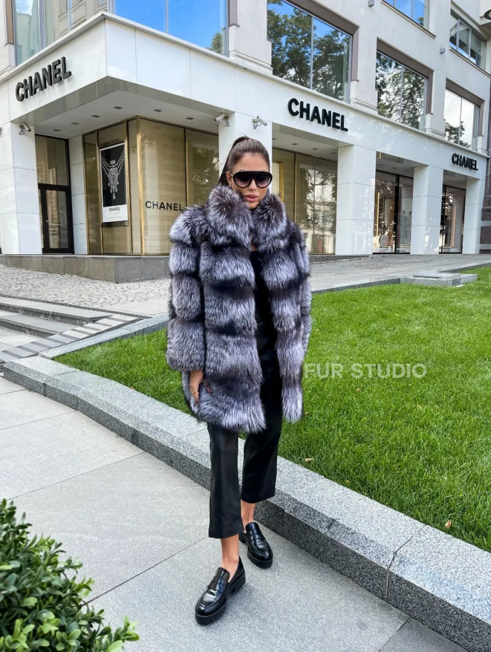 Шуба из меха чернобурой лисы - отличный выбор женщин, которые любят выглядеть стильно в любое время года. Мех смотрится роскошно и дорого. Необычная расцветка подчеркнет цвет волос и глаз владелицы. В шубе будет комфортно даже в холодную зиму. Прямой крой зрительно увеличит рост. Широкие манжеты делают акцент на тонкости кистей.