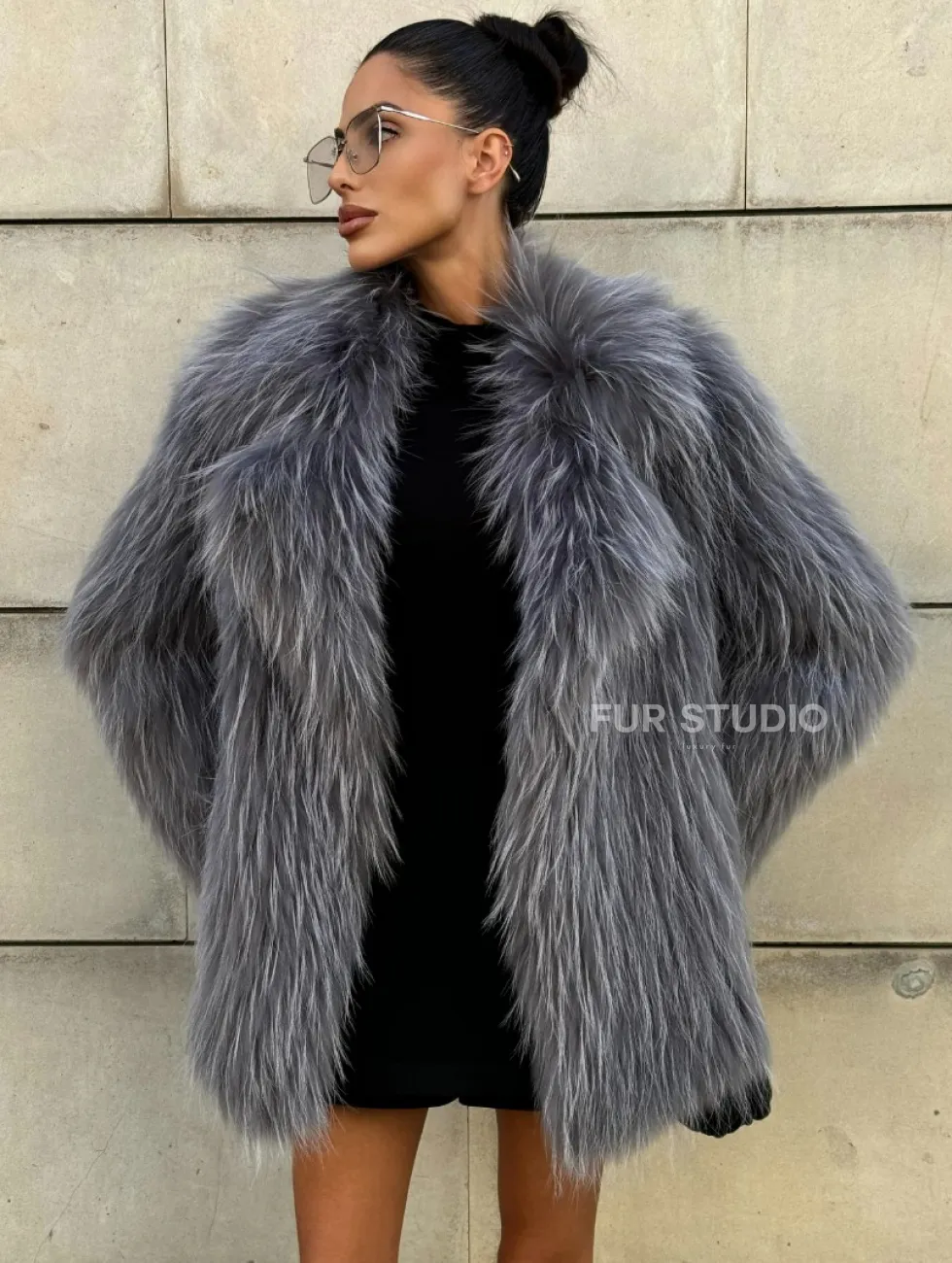 Мех данной шубы енот, цвет серый. Предлагается в размерах от 42 до 52. Длина модели 70-75 см, что выгодно подчеркивает фигуру девушек. Эта модель идеально подойдет для девушек и женщин, предпочитающих роскошные натуральные меха.