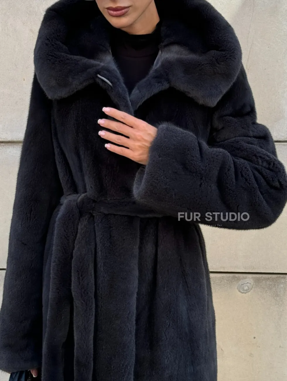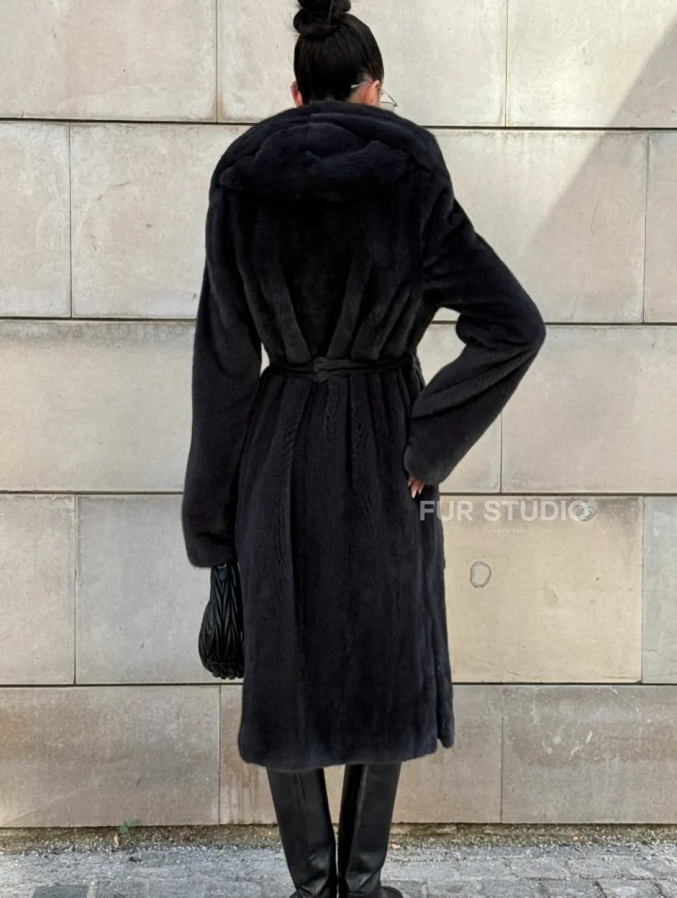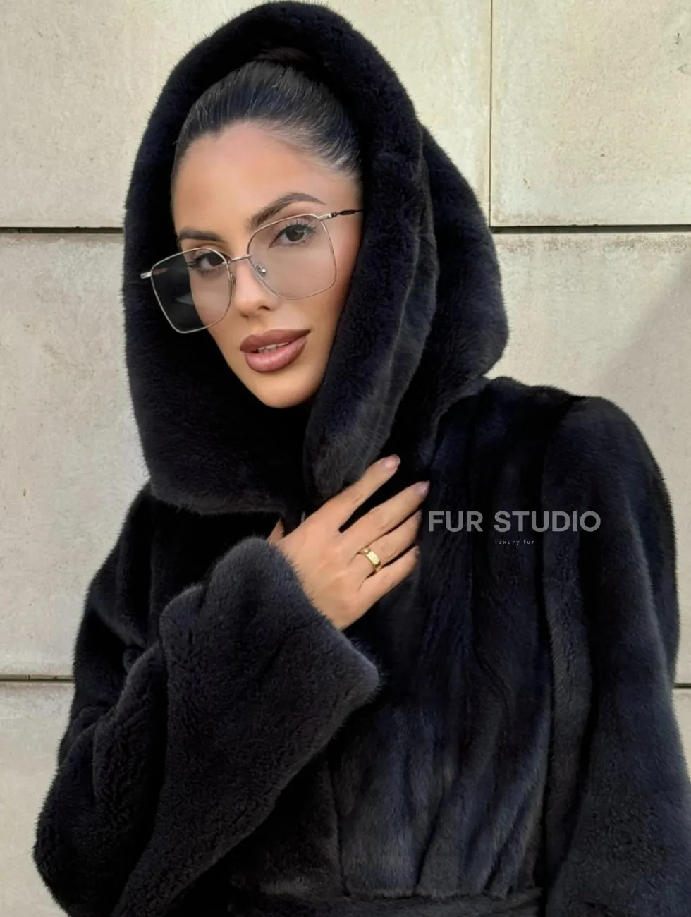 Шуба из меха импортной норки NAFA с капюшоном, цвет темный графит доступна для покупки в нашем шоуруме Furs Studio в Чите. У нас так же есть доставка во все города России. Добавьте немного роскоши в свой гардероб с этой шубой, которая будет служить вам многие годы.