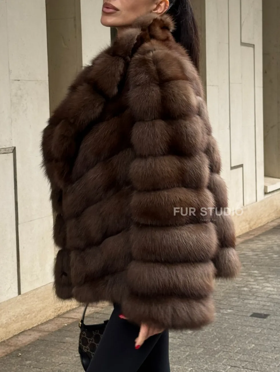 Мех данной шубы лесная куница, цвет натуральный. Предлагается в размерах от 42 до 48. Длина модели 60-65 см, что выгодно подчеркивает фигуру девушек. Эта модель идеально подойдет для девушек и женщин, предпочитающих роскошные натуральные меха.