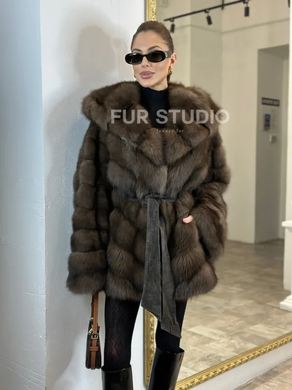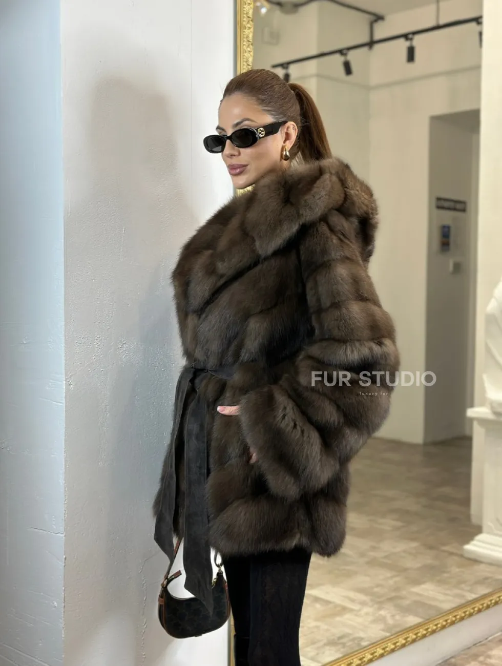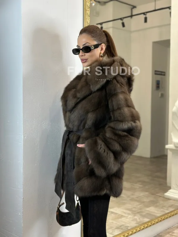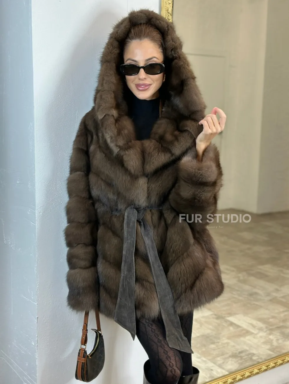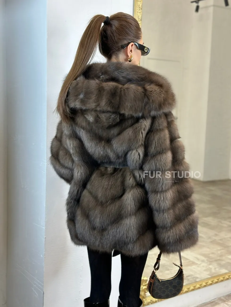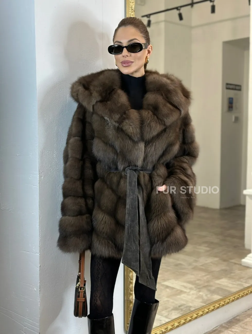 Шуба из меха куницы Dark с капюшоном доступна для покупки в нашем шоуруме Furs Studio в Чите. У нас так же есть доставка во все города России. Добавьте немного роскоши в свой гардероб с этой шубой, которая будет служить вам многие годы.