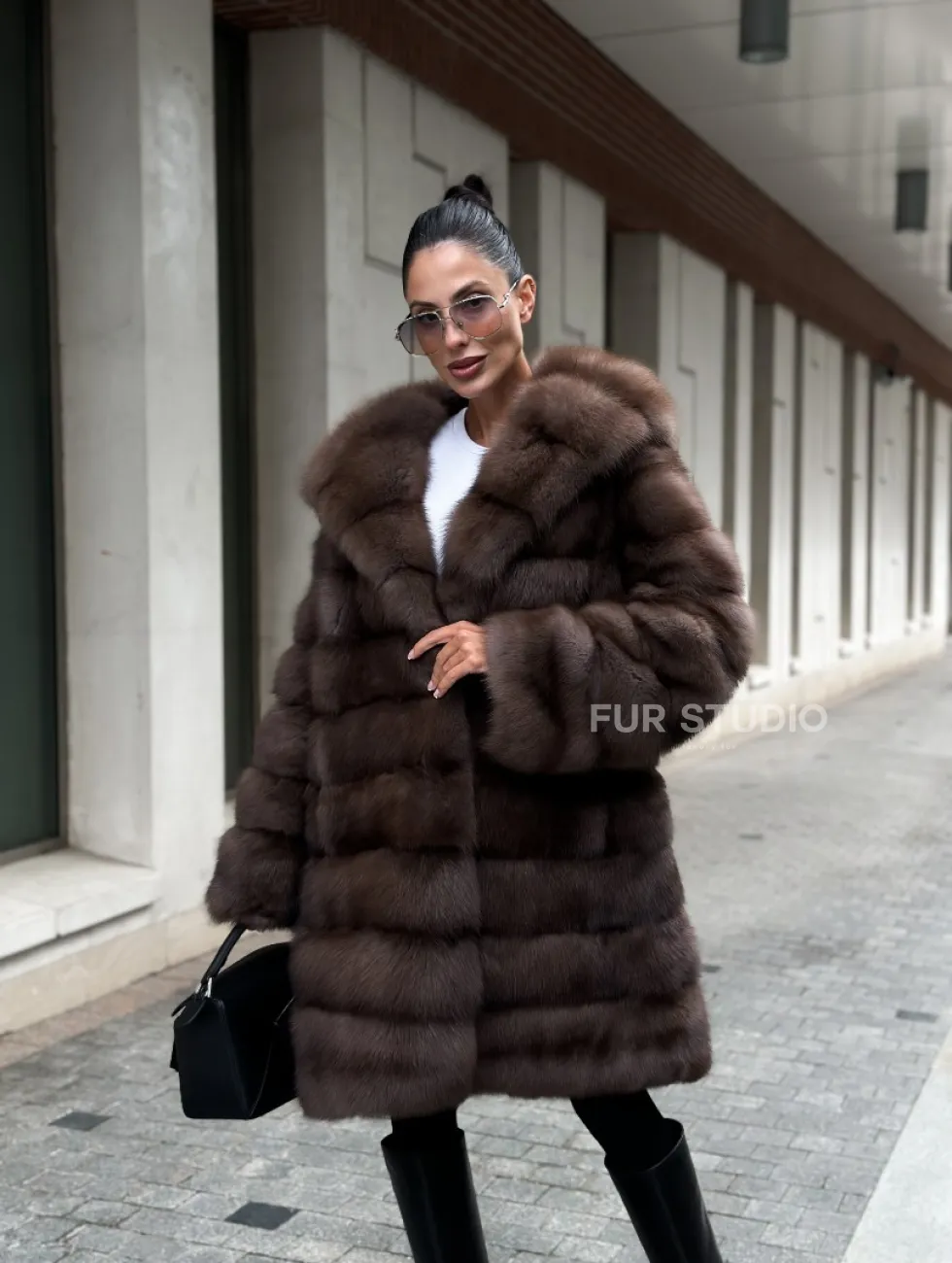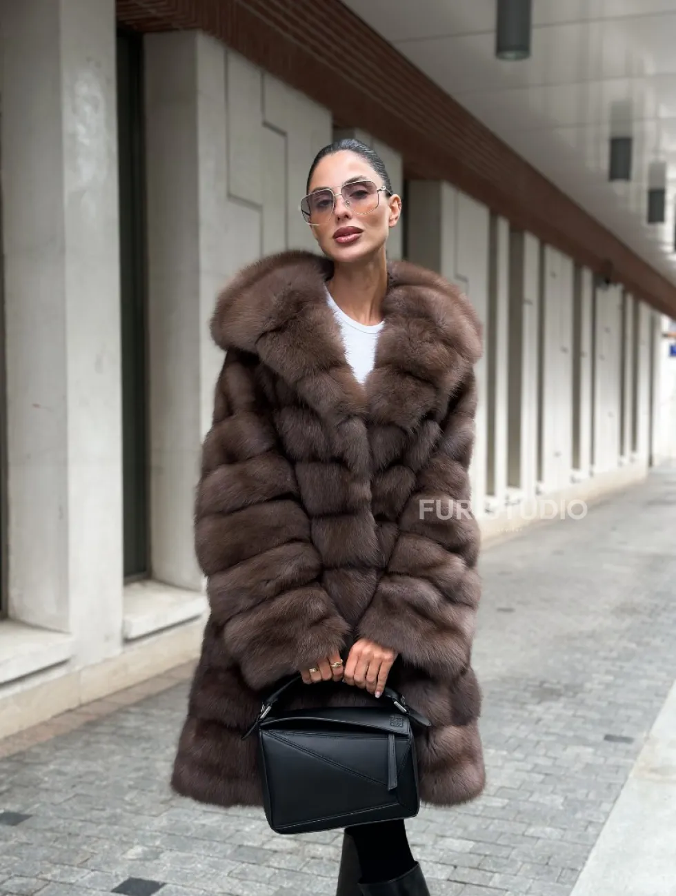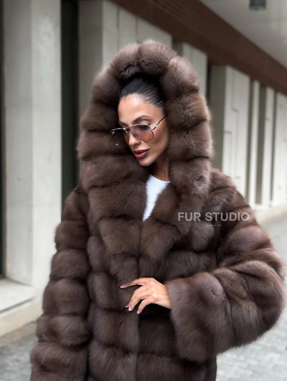 Шуба из меха куницы с капюшоном цвет трюфель доступна для покупки в нашем шоуруме Furs Studio в Чите. У нас так же есть доставка во все города России. Добавьте немного роскоши в свой гардероб с этой шубой, которая будет служить вам многие годы.