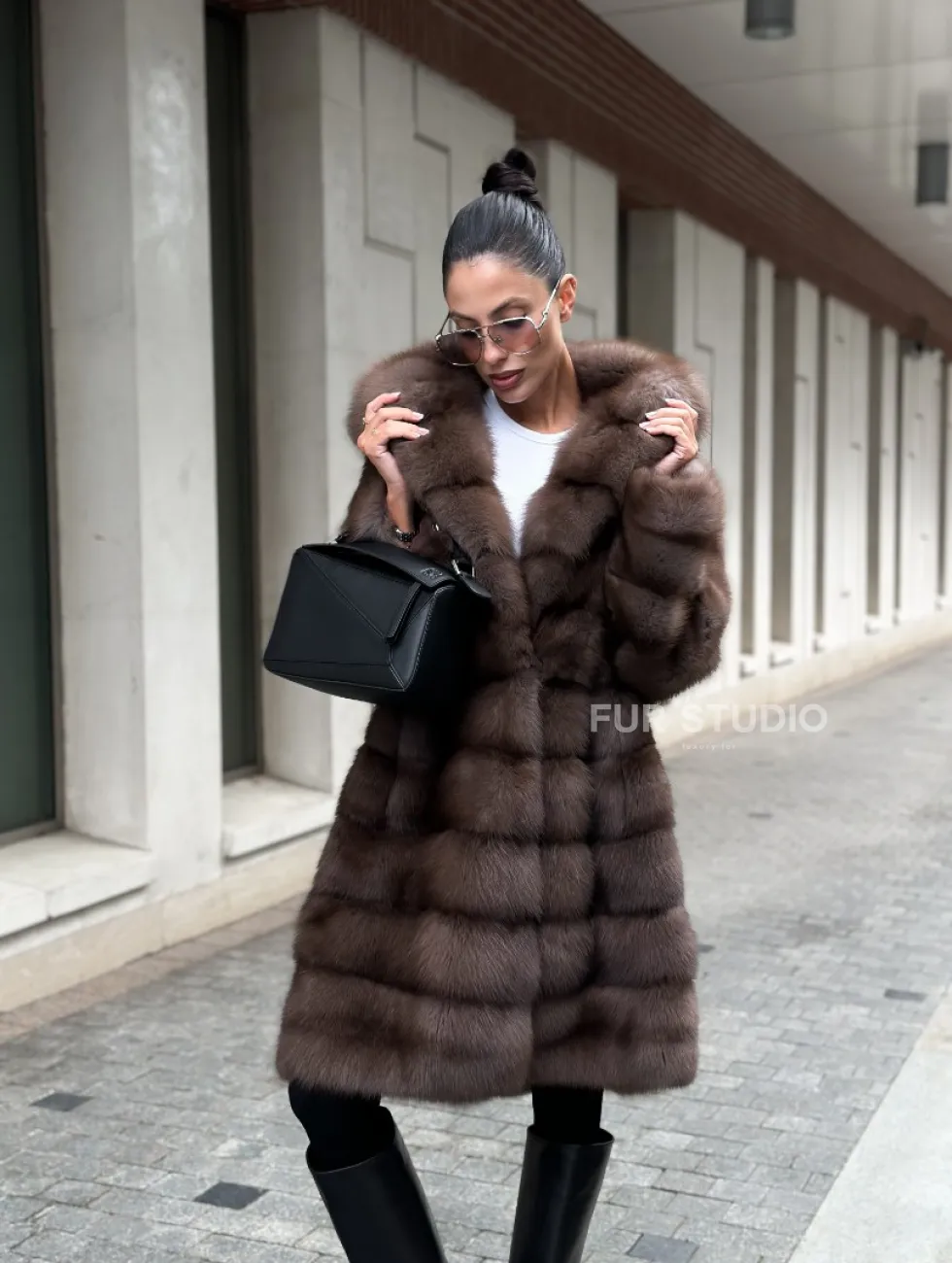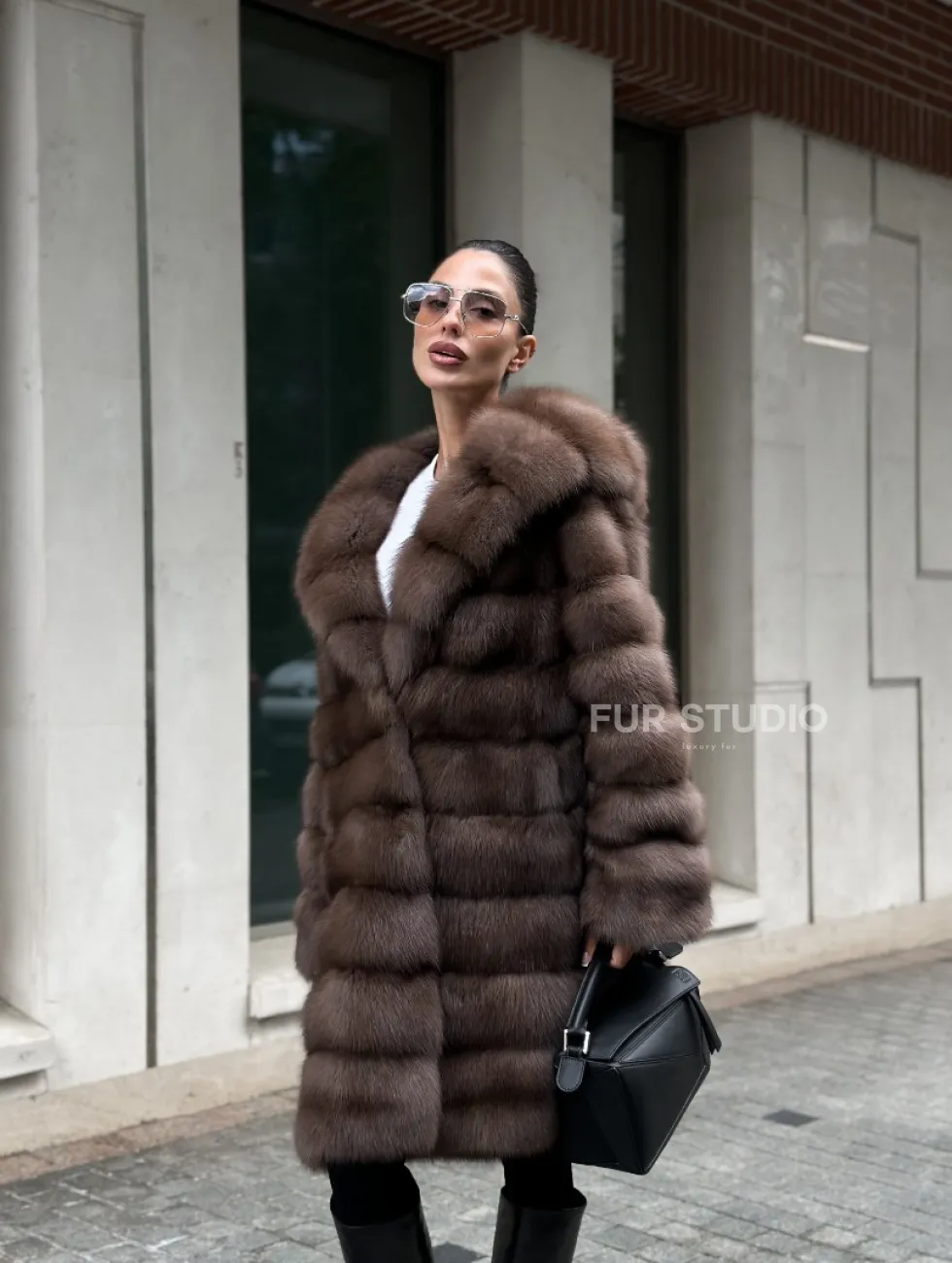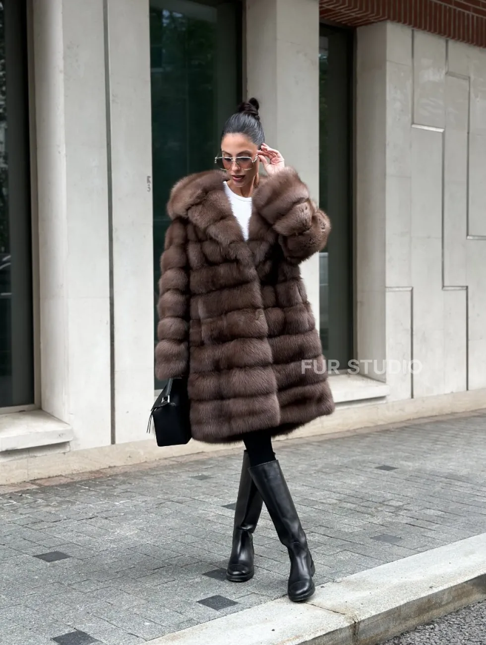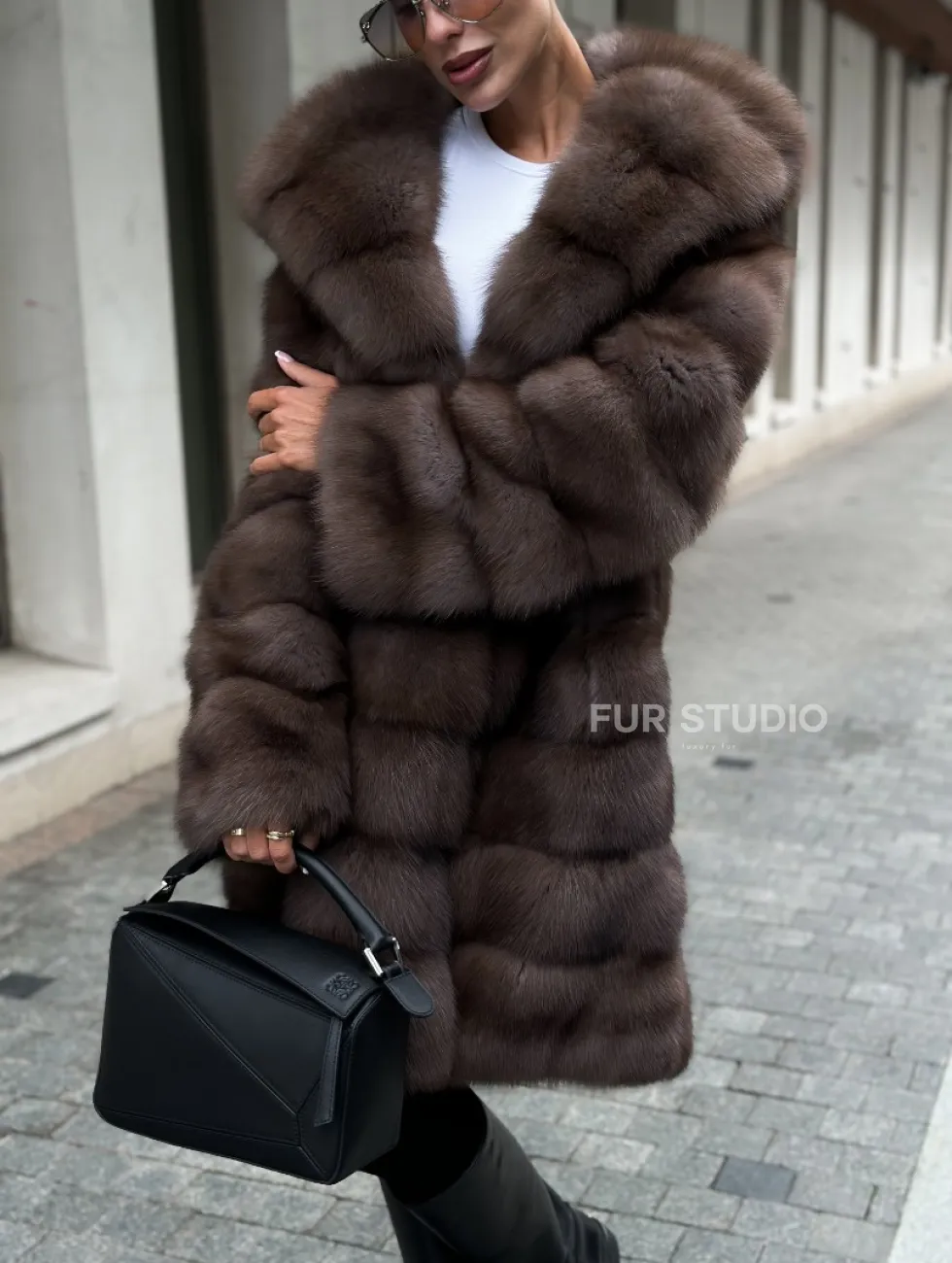 Шуба из меха куницы с капюшоном цвет трюфель доступна для покупки в нашем шоуруме Furs Studio в Чите. У нас так же есть доставка во все города России. Добавьте немного роскоши в свой гардероб с этой шубой, которая будет служить вам многие годы.