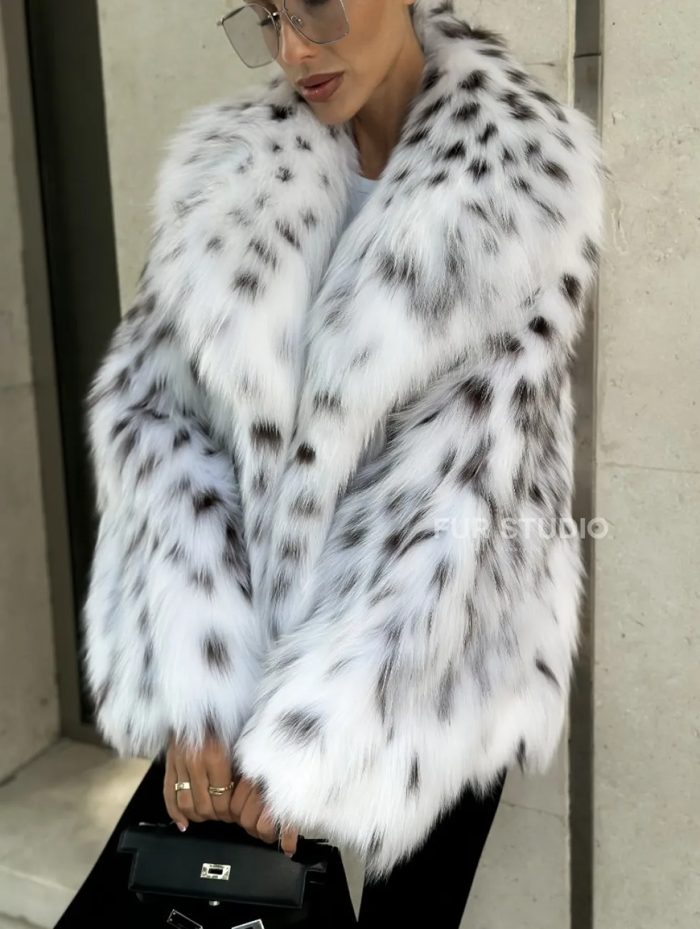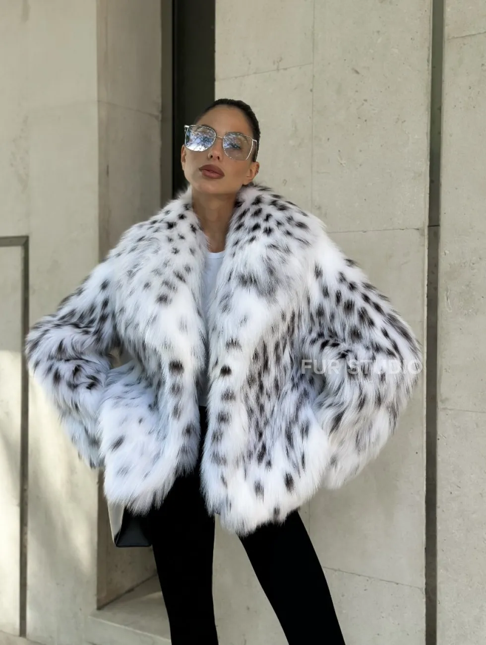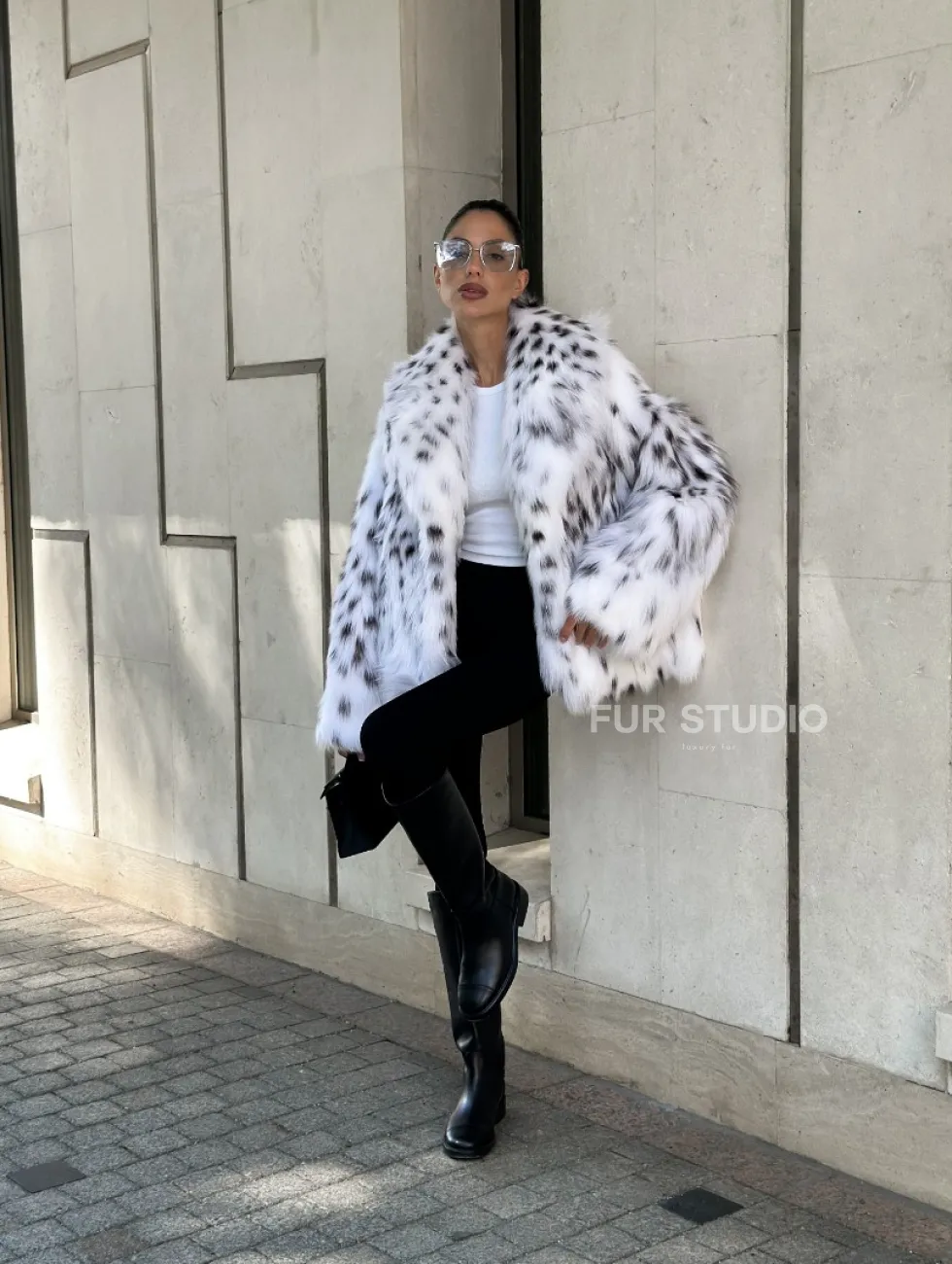 Шуба из меха лисы под рысь - цвет белый, PREMIUM COLLECTION доступна для покупки в нашем шоуруме Furs Studio в Чите. У нас так же есть доставка во все города России. Добавьте немного роскоши в свой гардероб с этой шубой, которая будет служить вам многие годы.