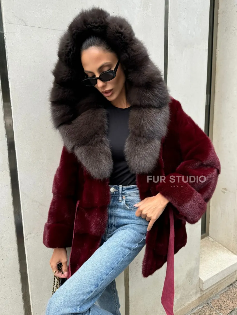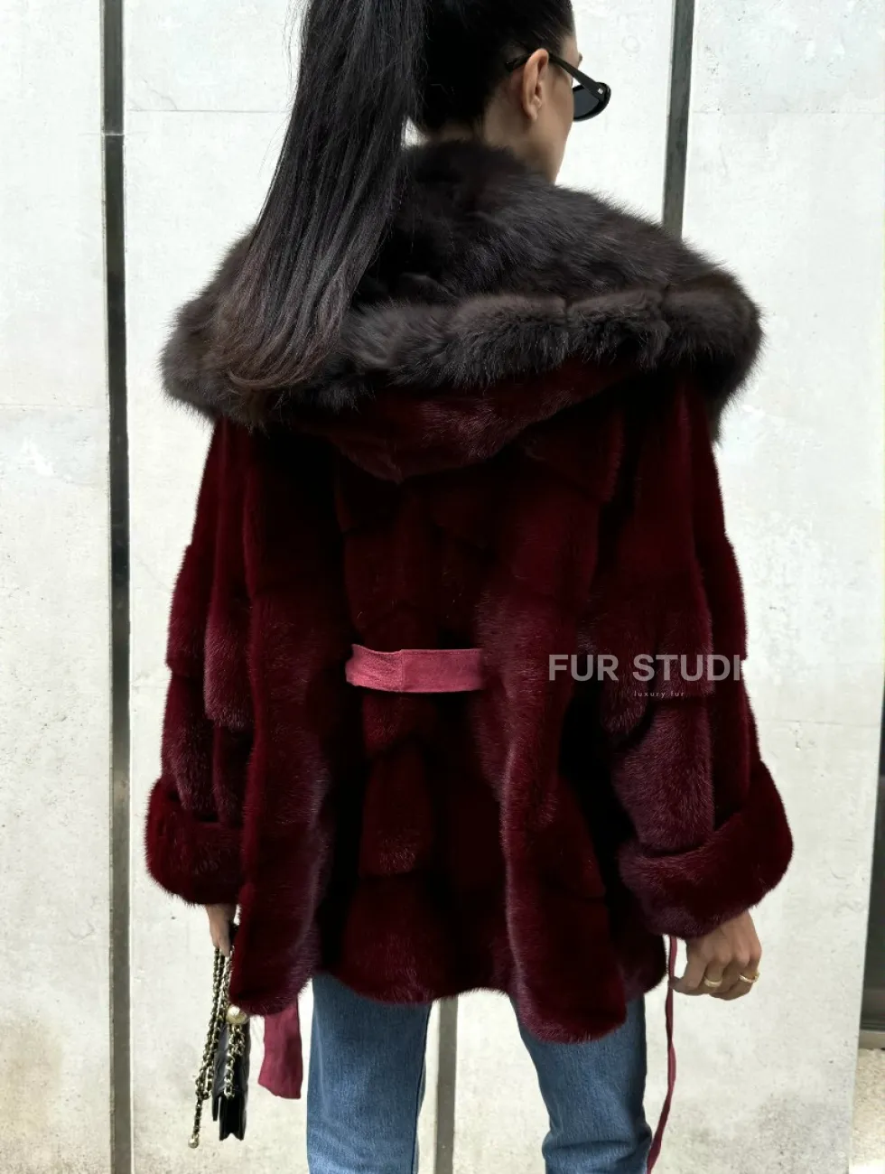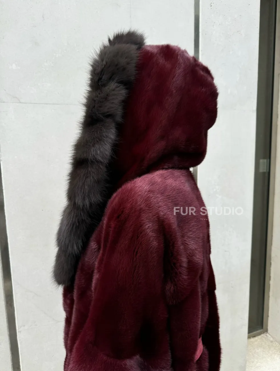 Шуба из меха норки с капюшоном из куницы бордового цвета доступна для покупки в нашем шоуруме Furs Studio в Чите. У нас так же есть доставка во все города России. Добавьте немного роскоши в свой гардероб с этой шубой, которая будет служить вам многие годы.