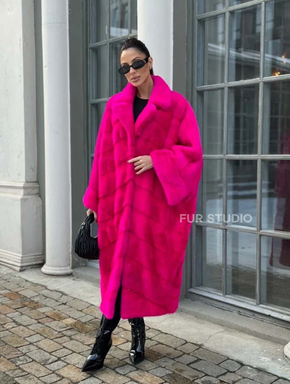 Шуба из меха норки в стиле Oversize - цвет фуксия доступна для покупки в нашем шоуруме Furs Studio в Чите. У нас так же есть доставка во все города России. Добавьте немного роскоши в свой гардероб с этой шубой, которая будет служить вам многие годы.
