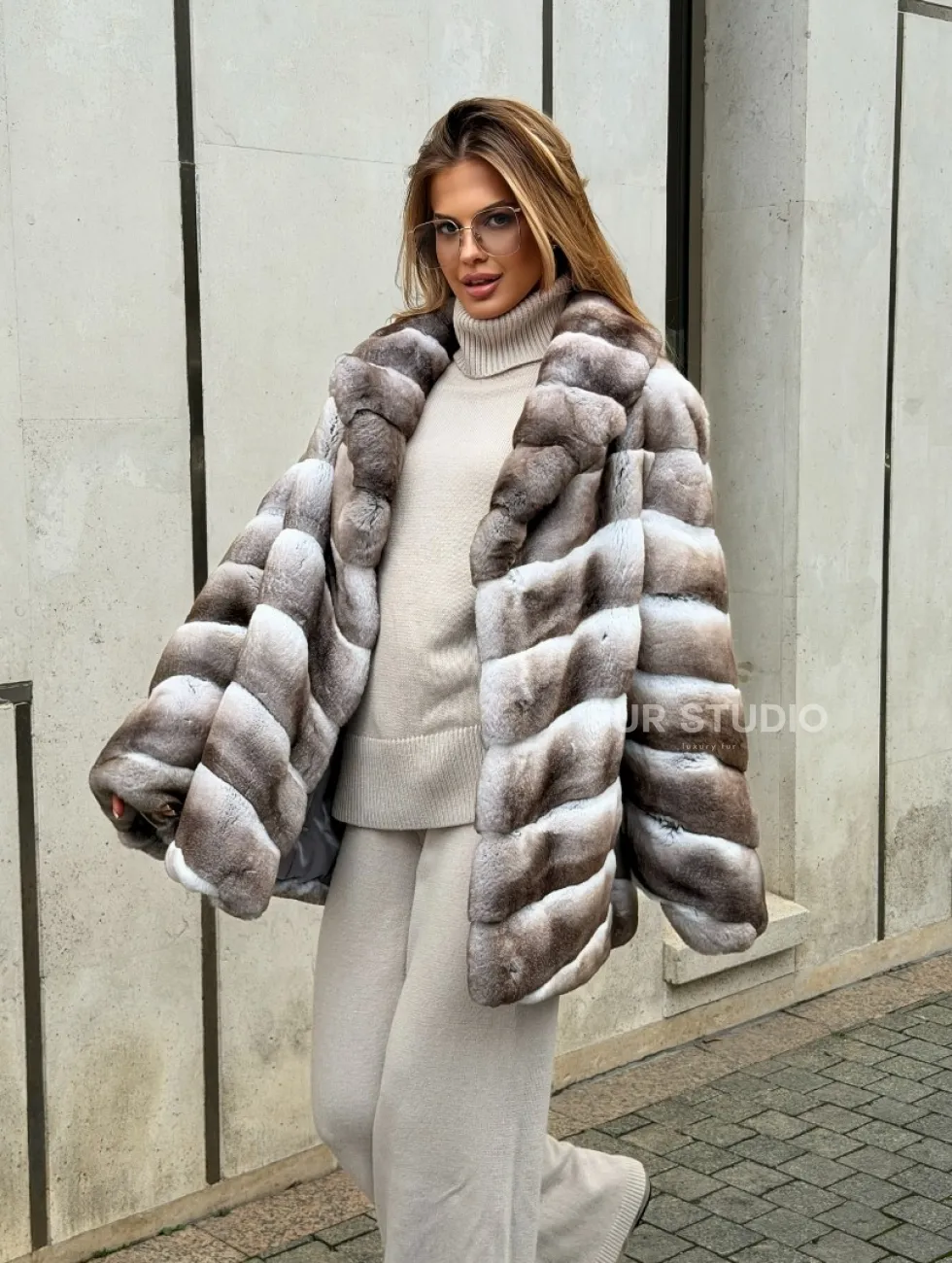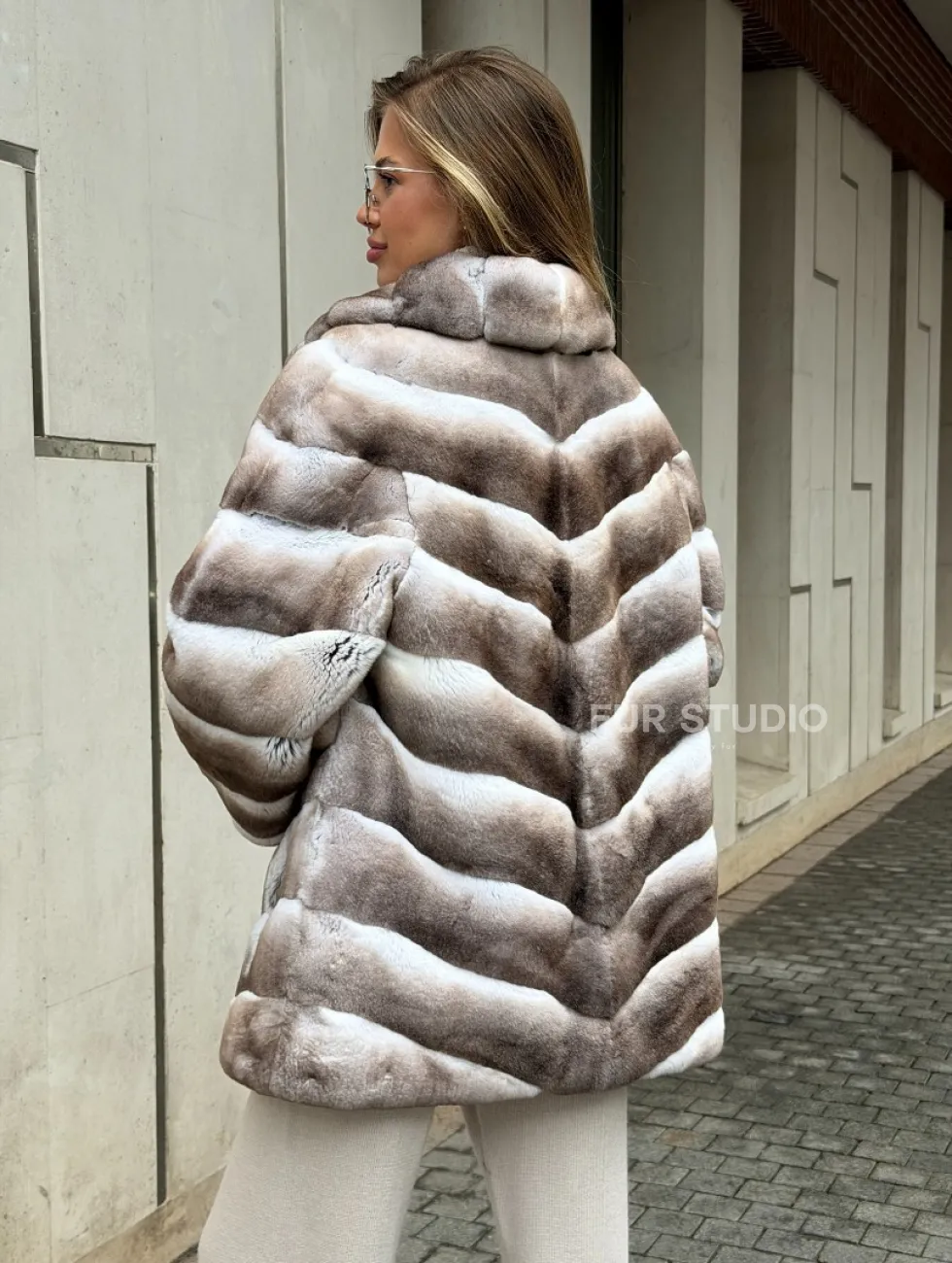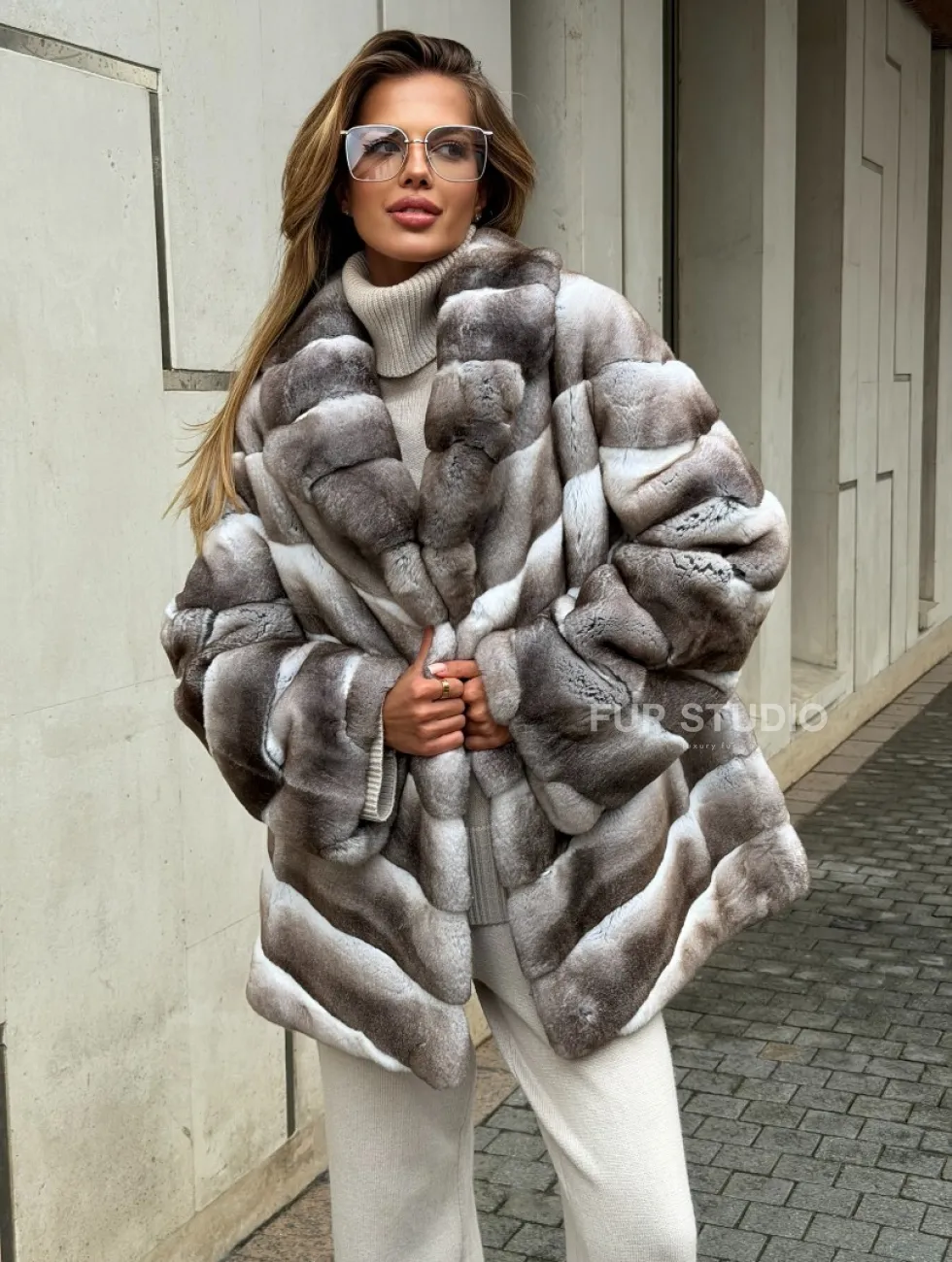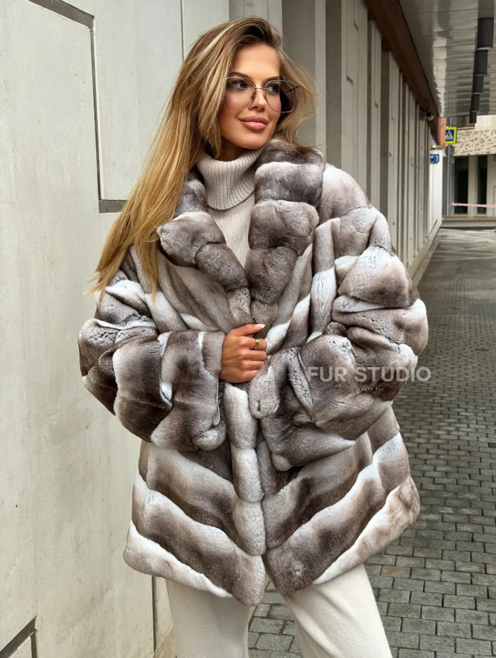 Шуба из меха шиншиллового кролика PREMIUM COLLECTION доступна для покупки в нашем шоуруме Furs Studio в Чите. У нас так же есть доставка во все города России. Добавьте немного роскоши в свой гардероб с этой шубой, которая будет служить вам многие годы.