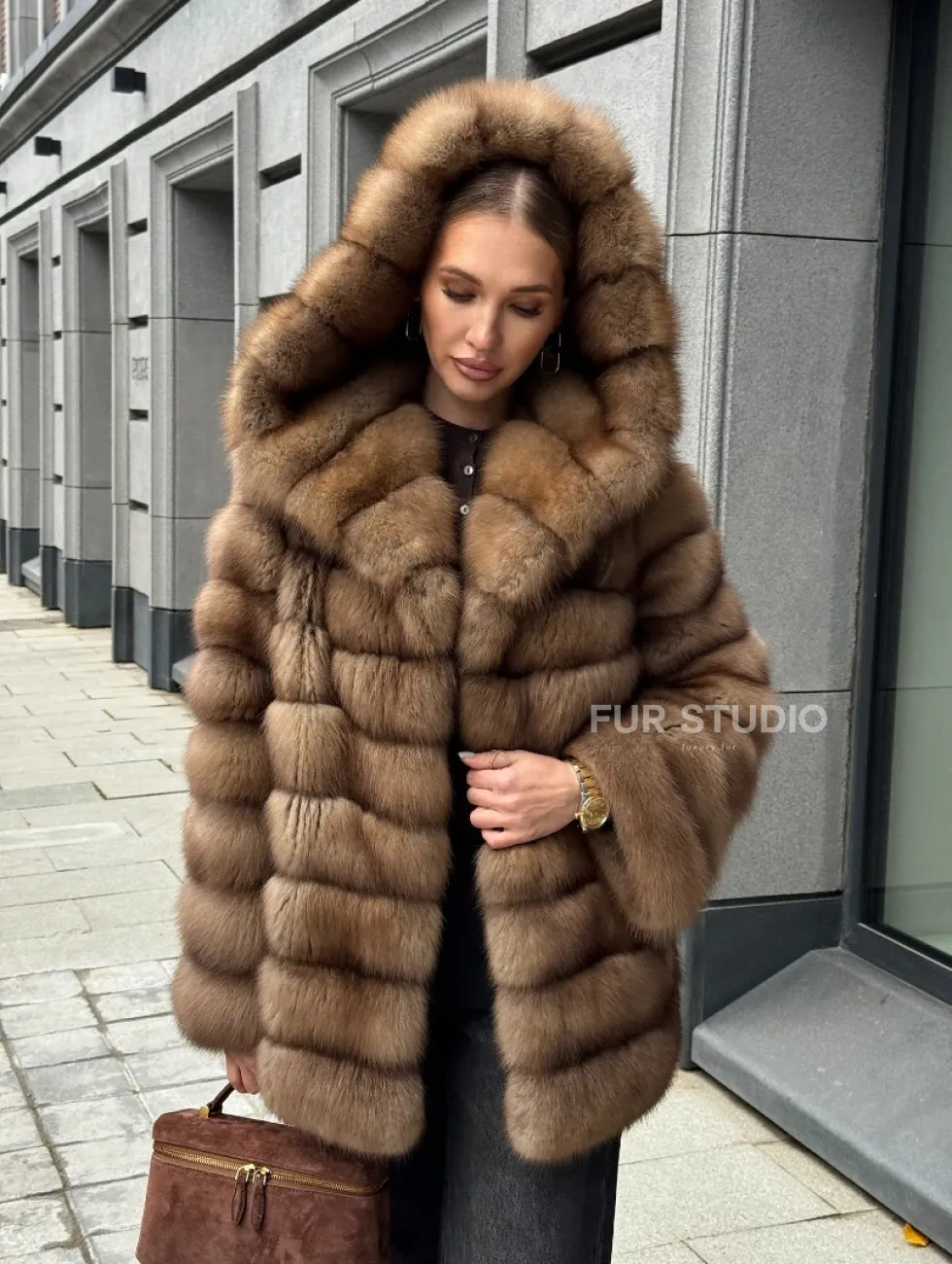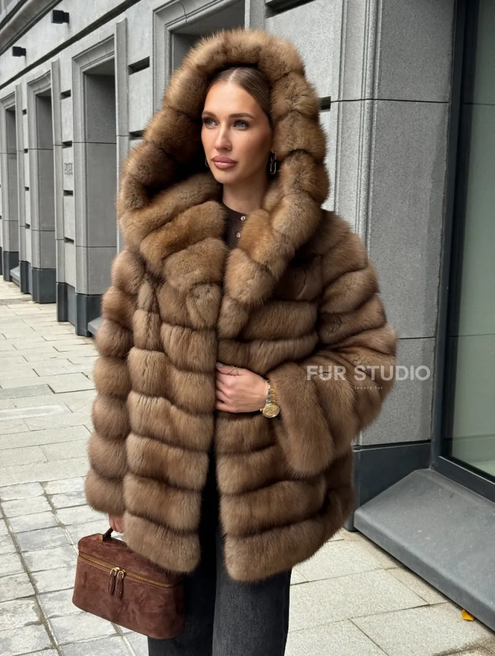 Шуба из натурального меха куницы с капюшоном доступна для покупки в нашем шоуруме Furs Studio в Чите. У нас так же есть доставка во все города России. Добавьте немного роскоши в свой гардероб с этой шубой, которая будет служить вам многие годы.