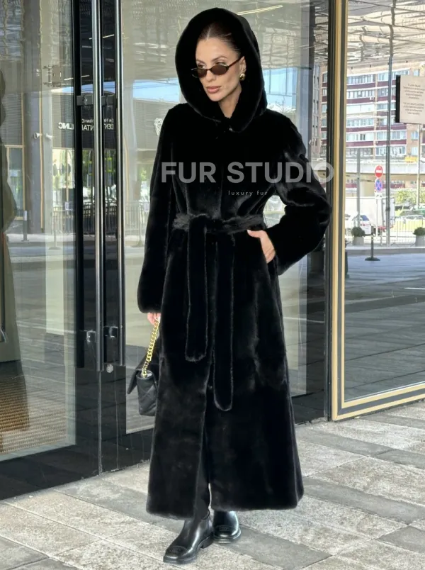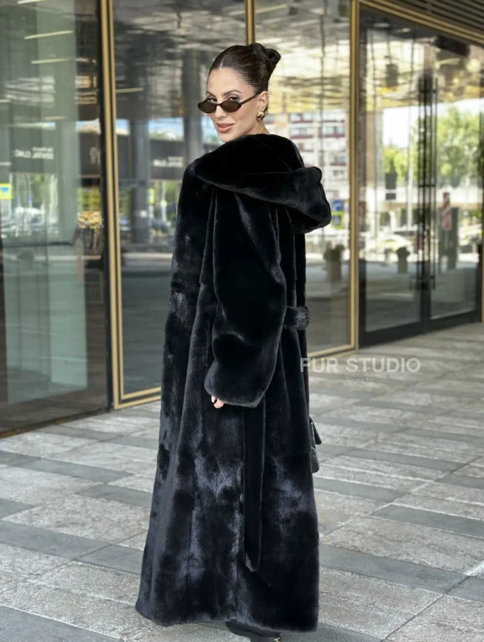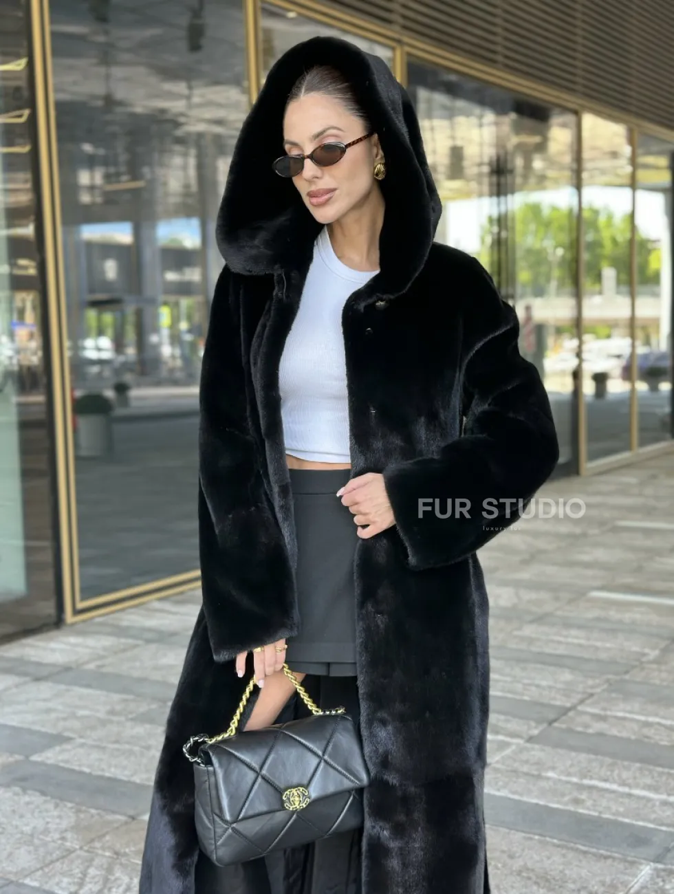 Удлиненная шуба из норки BLACKGLAMA с капюшоном доступна для покупки в нашем шоуруме Furs Studio в Чите. У нас так же есть доставка во все города России. Добавьте немного роскоши в свой гардероб с этой шубой, которая будет служить вам многие годы.