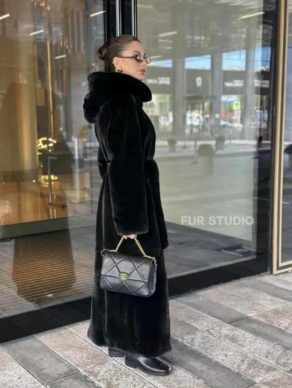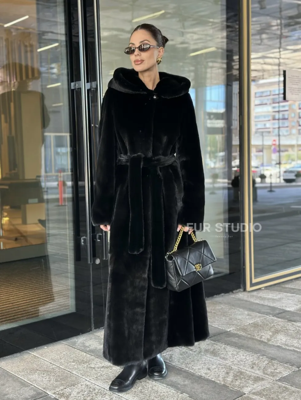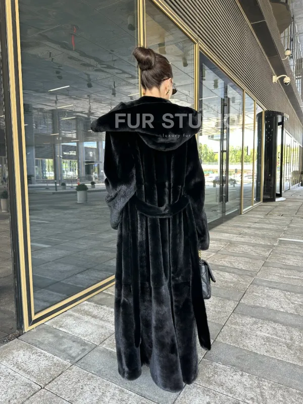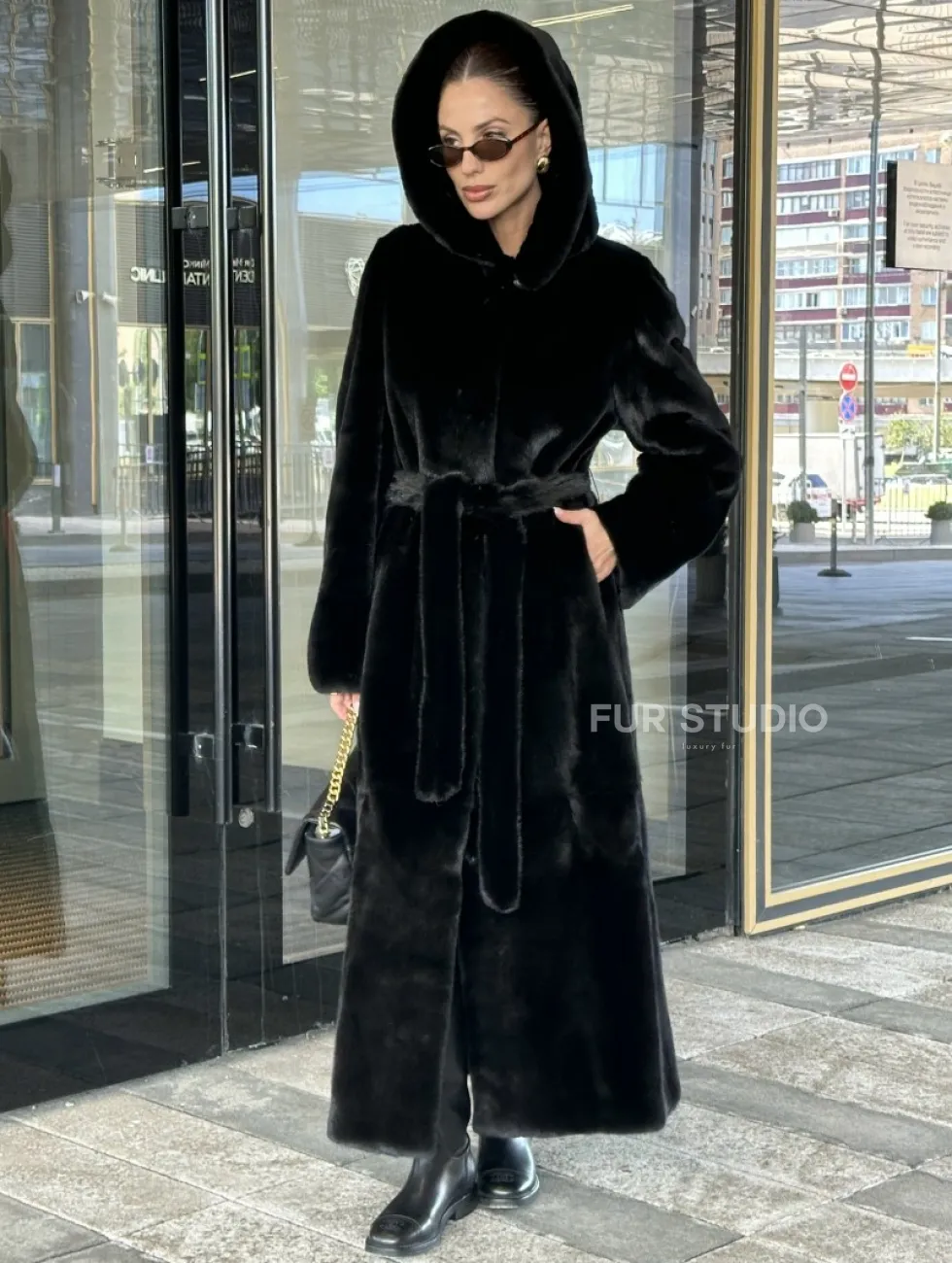 Удлиненная шуба из норки BLACKGLAMA с капюшоном доступна для покупки в нашем шоуруме Furs Studio в Чите. У нас так же есть доставка во все города России. Добавьте немного роскоши в свой гардероб с этой шубой, которая будет служить вам многие годы.
