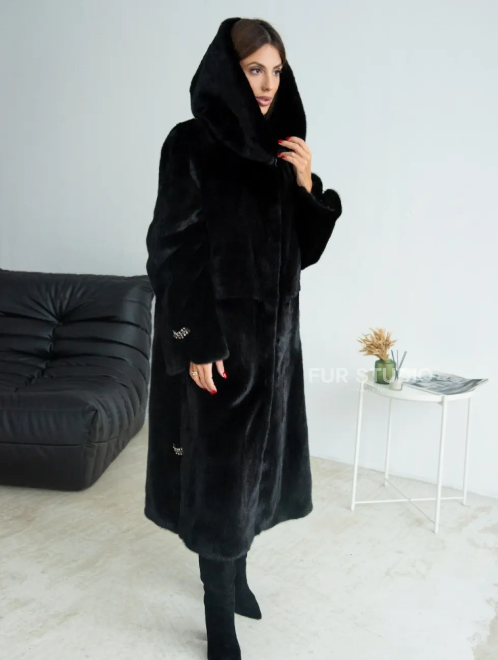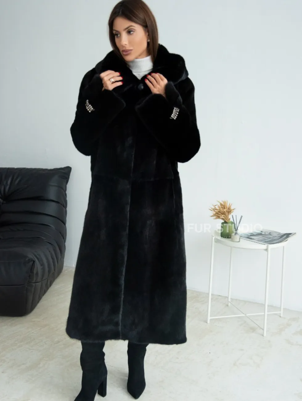 Шуба из норки Blackglama с капюшоном доступна для покупки в нашем шоуруме Furs Studio в Чите. У нас так же есть доставка во все города России. Добавьте немного роскоши в свой гардероб с этой шубой, которая будет служить вам многие годы.