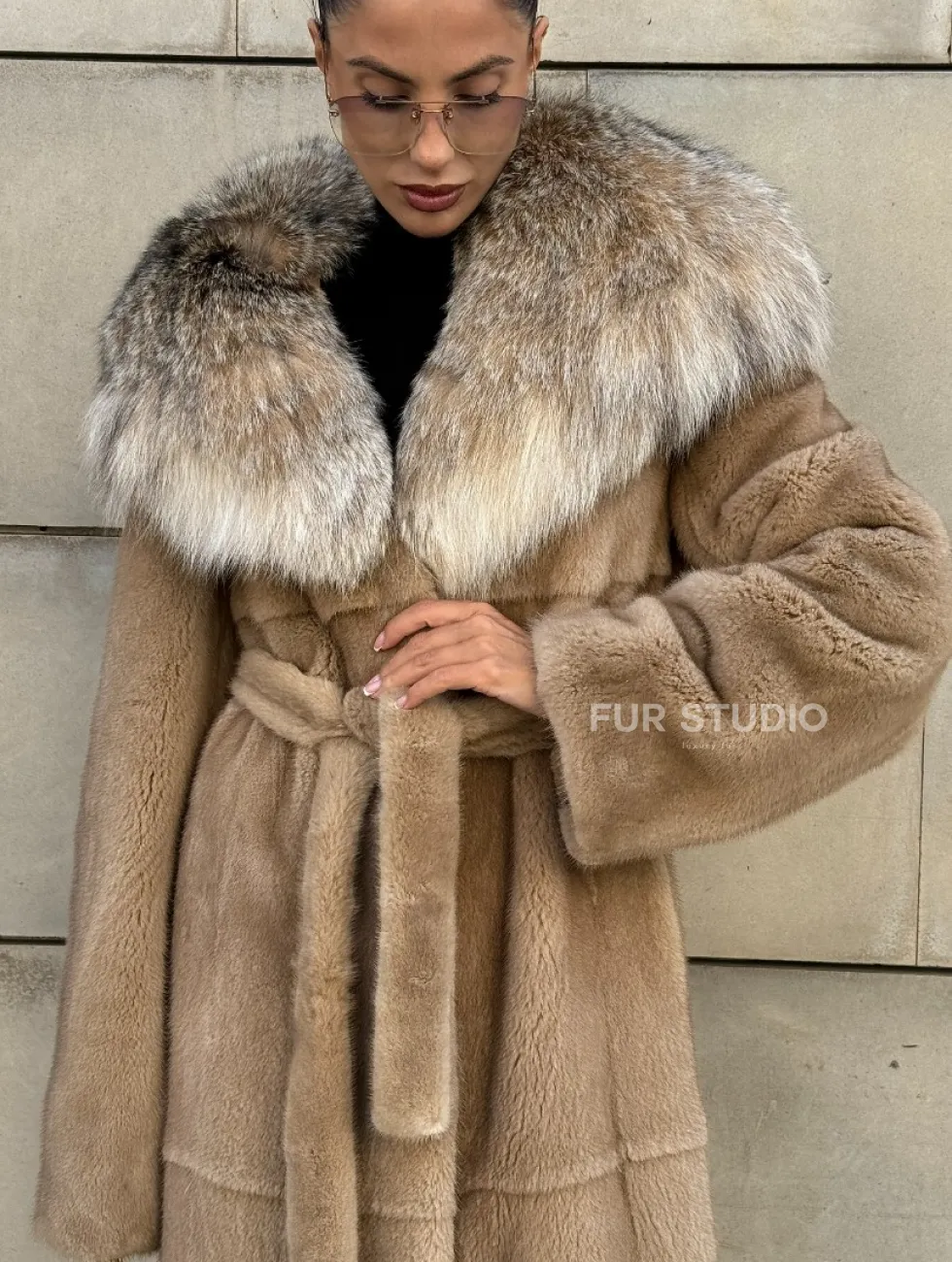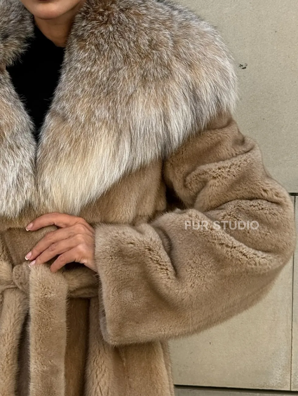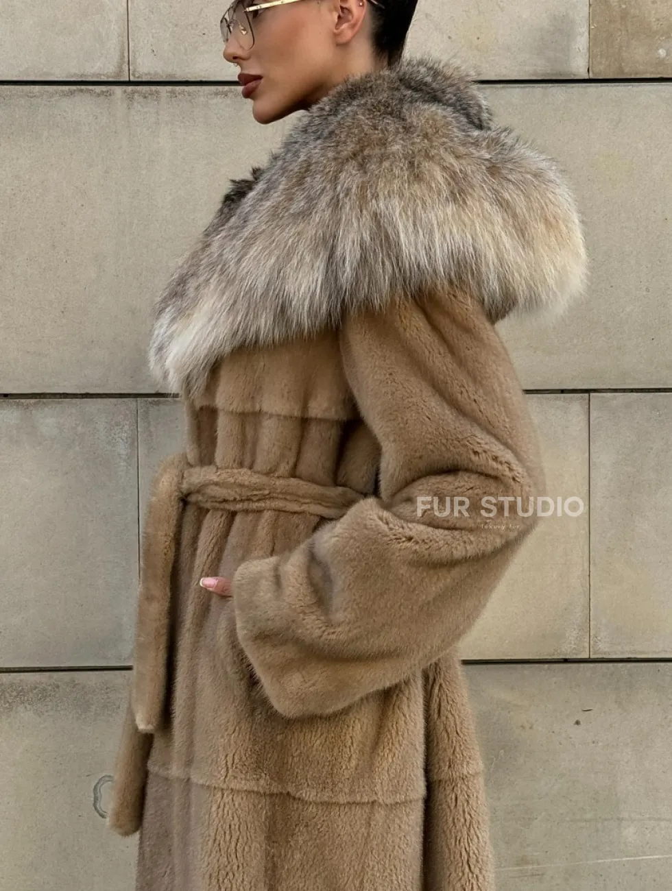 Шуба из норки Caramel с капюшоном из меха рыси доступна для покупки в нашем шоуруме Furs Studio в Чите. У нас так же есть доставка во все города России. Добавьте немного роскоши в свой гардероб с этой шубой, которая будет служить вам многие годы.