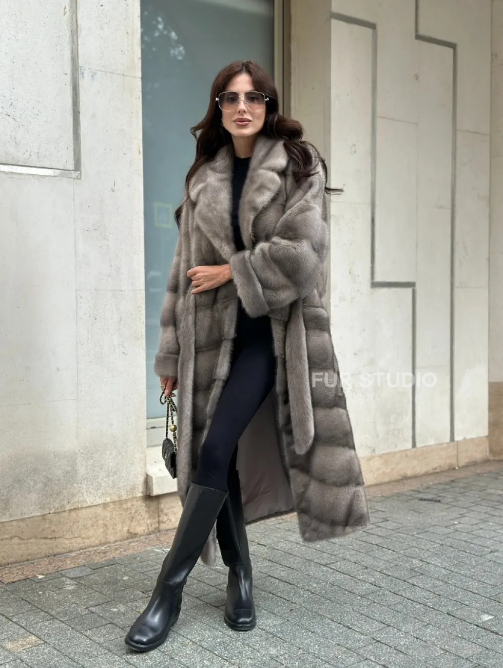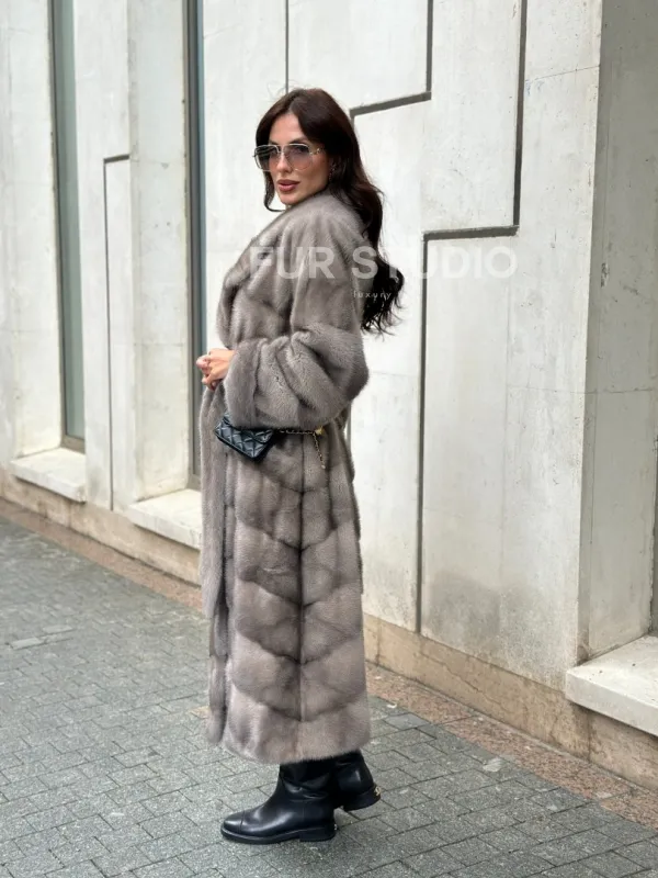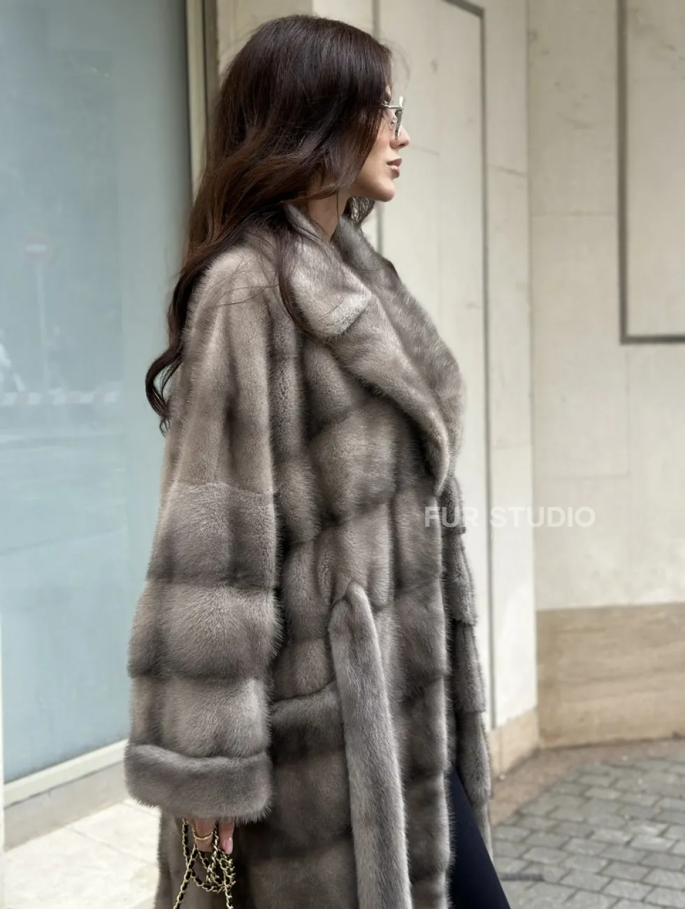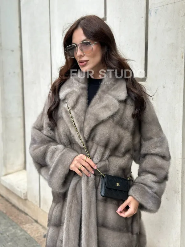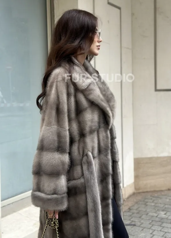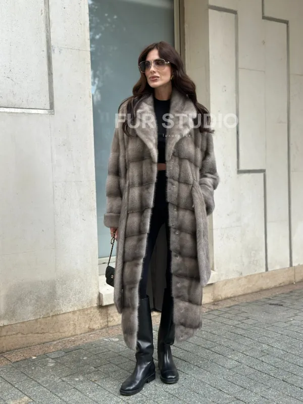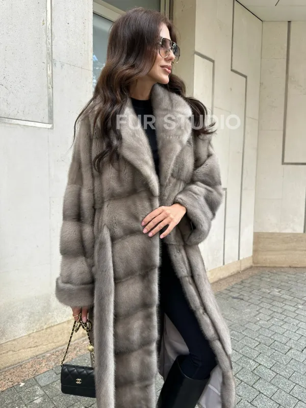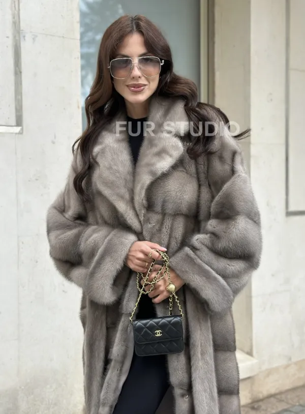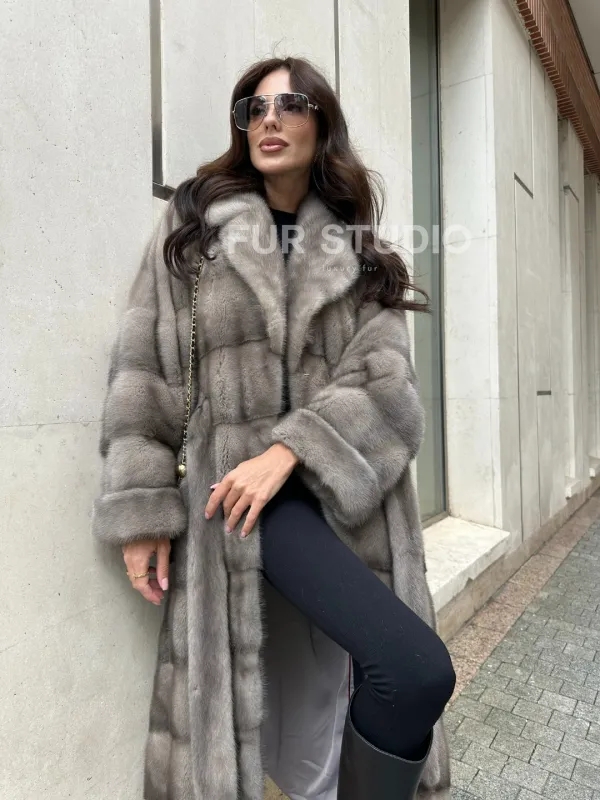 Шуба из норки серого цвета - сапфир с английским воротником доступна для покупки в нашем шоуруме Furs Studio в Чите. У нас так же есть доставка во все города России. Добавьте немного роскоши в свой гардероб с этой шубой, которая будет служить вам многие годы.