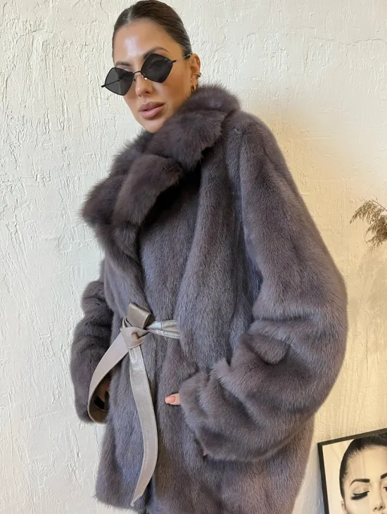 Мех данной шубы аукционная норка, цвет голубой. Предлагается в размерах от 42 до 54. Длина модели 70-75 см, что выгодно подчеркивает фигуру девушек. Эта модель идеально подойдет для девушек и женщин, предпочитающих роскошные натуральные меха.
