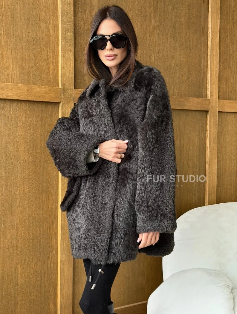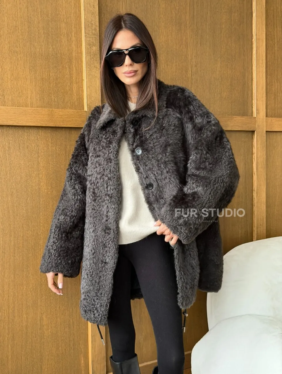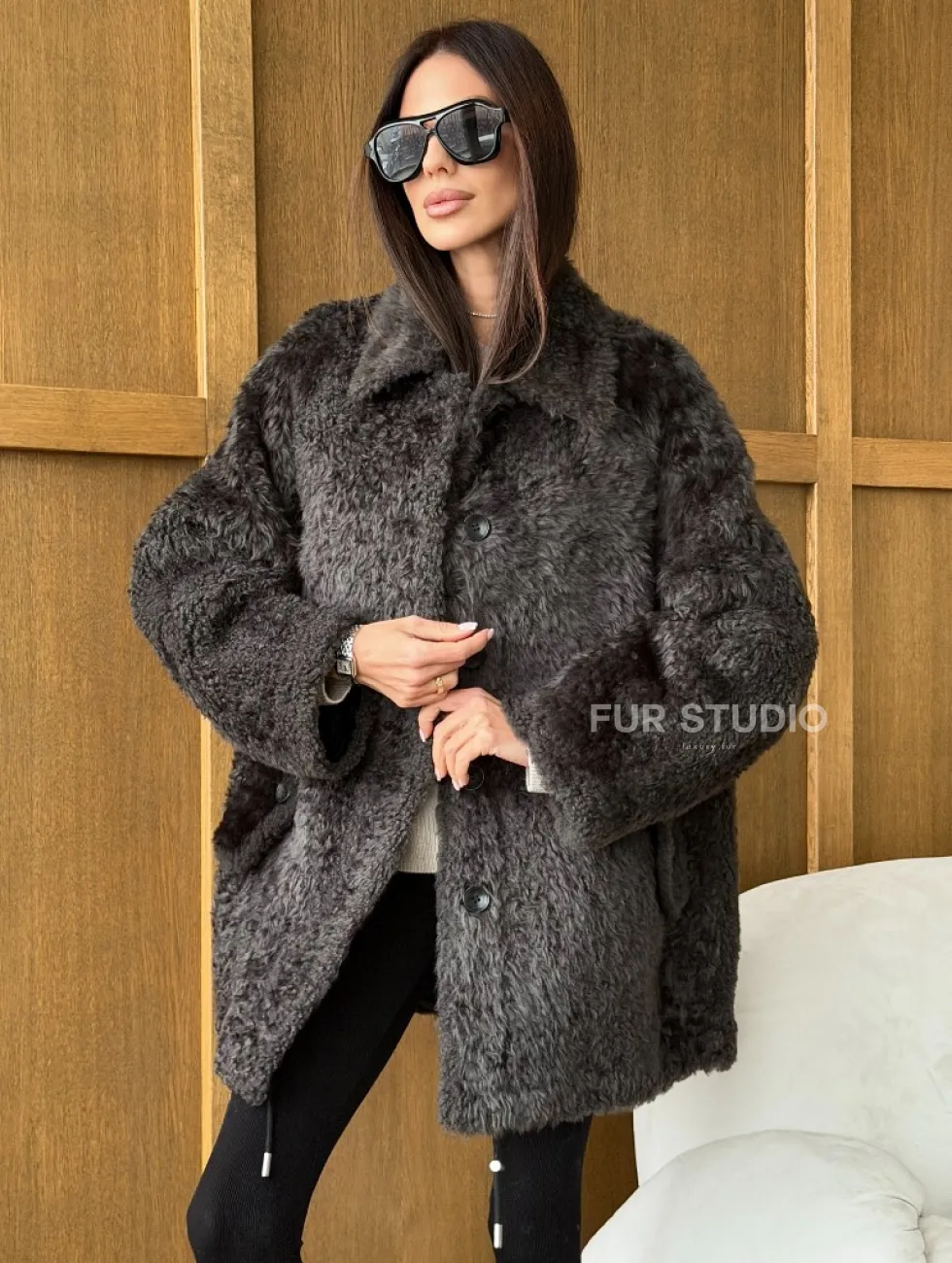 Шуба из овчины - натуральная. Модель предлагается в размерах от 40 до 50 (oversize). Оптимальная длина моделей 75-80 см подчеркивает линии вашей фигуры. Эта дубленка станет неотъемлемой частью гардероба для тех, кто предпочитает роскошь и утонченность натуральной кожи.