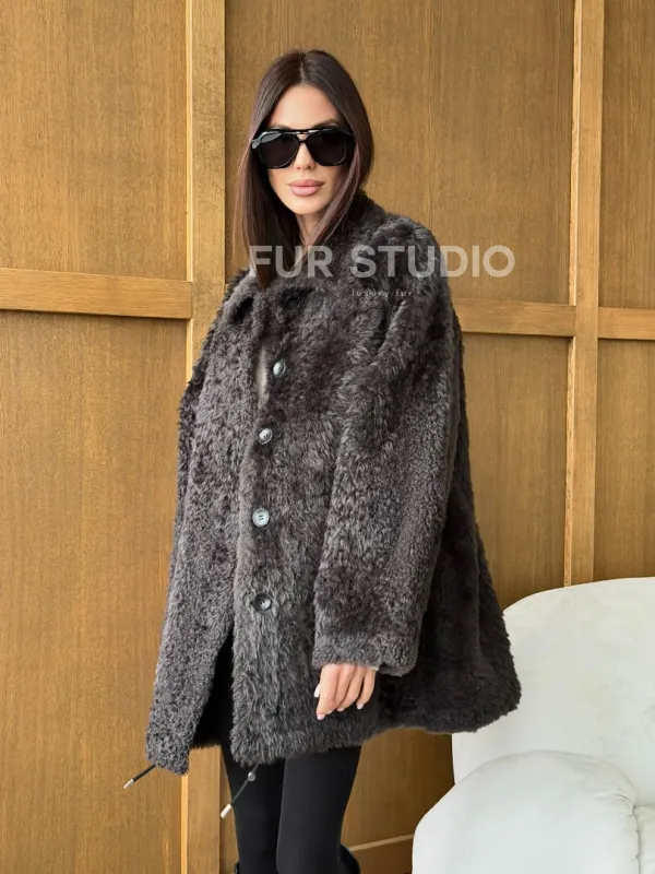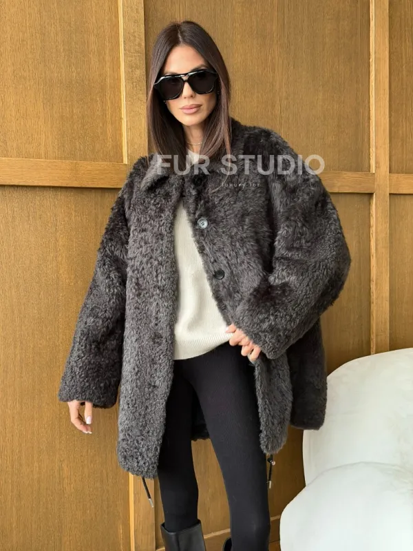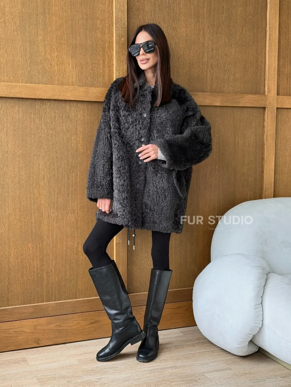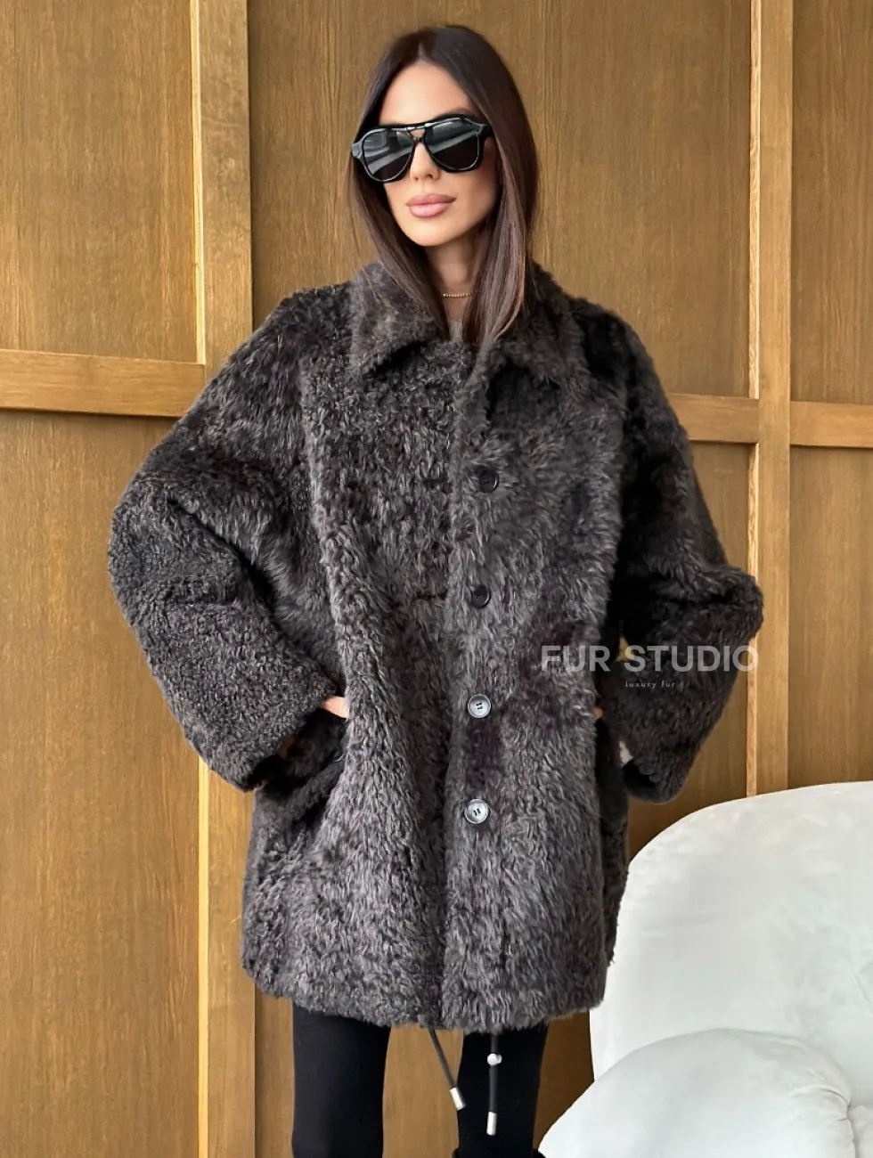 Шуба из овчины - натуральная. Модель предлагается в размерах от 40 до 50 (oversize). Оптимальная длина моделей 75-80 см подчеркивает линии вашей фигуры. Эта дубленка станет неотъемлемой частью гардероба для тех, кто предпочитает роскошь и утонченность натуральной кожи.
