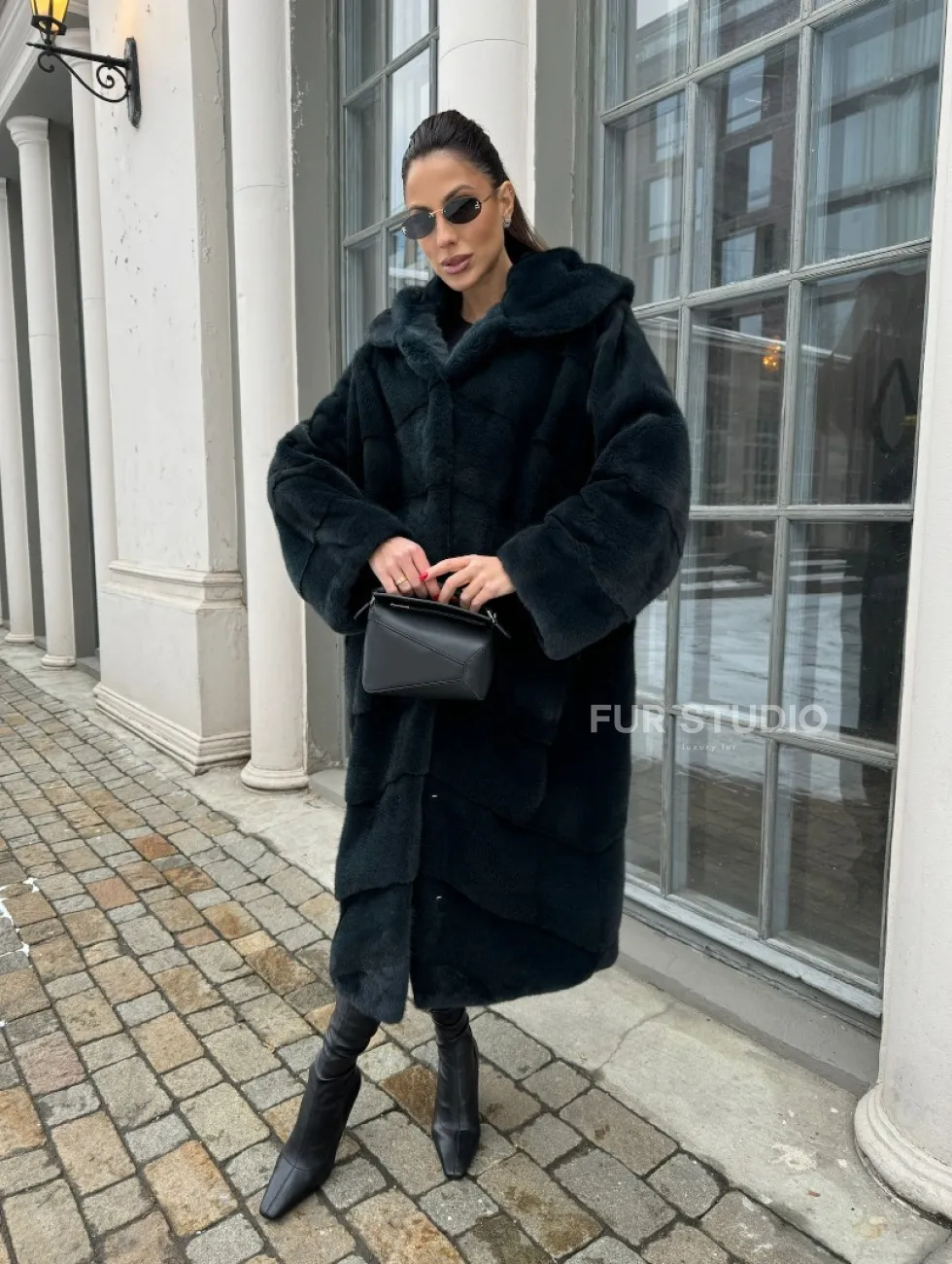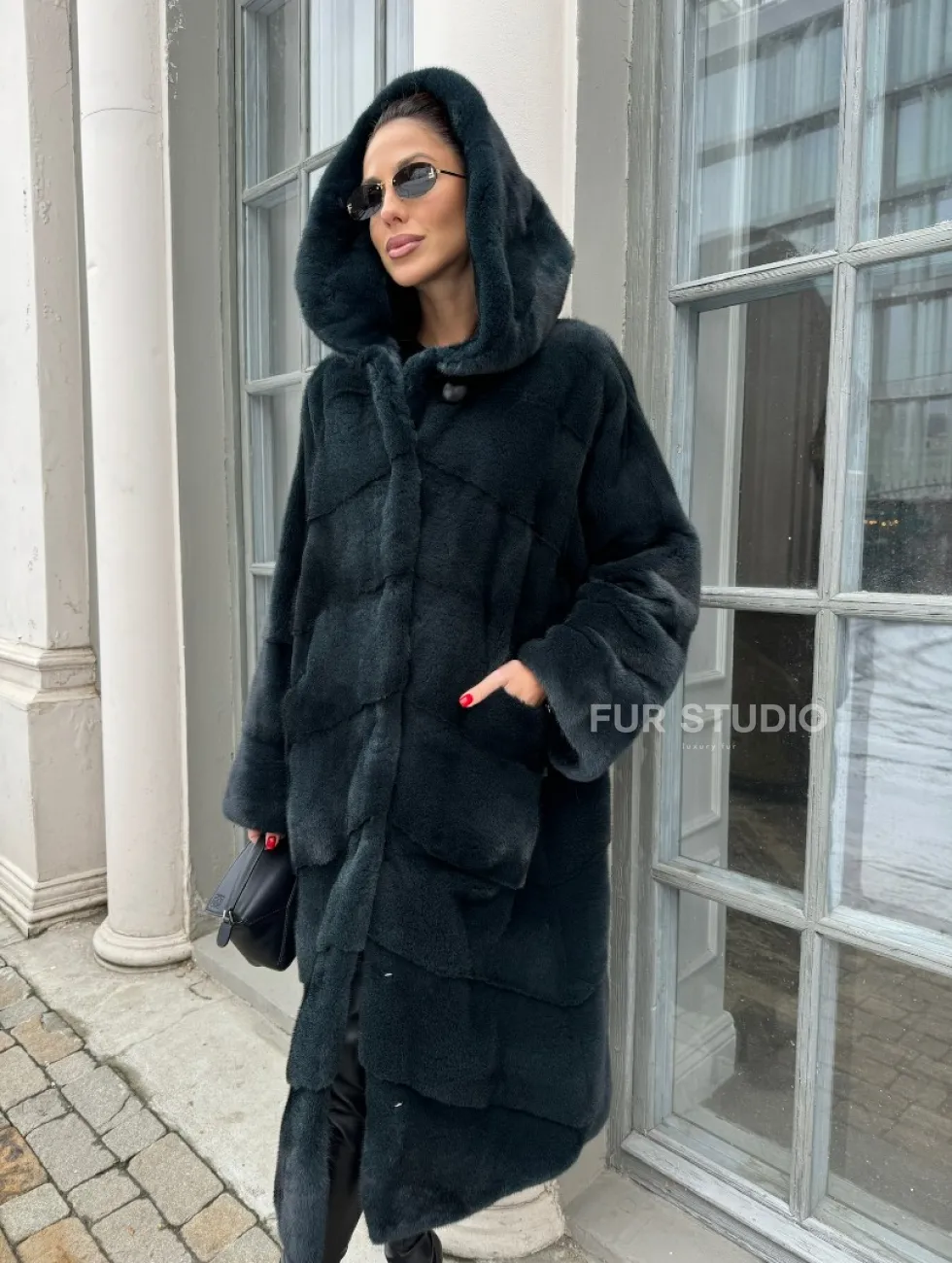 Шуба из плюшевой норки NAFA с капюшоном - цвет черный изумруд доступна для покупки в нашем шоуруме Furs Studio в Чите. У нас так же есть доставка во все города России. Добавьте немного роскоши в свой гардероб с этой шубой, которая будет служить вам многие годы.