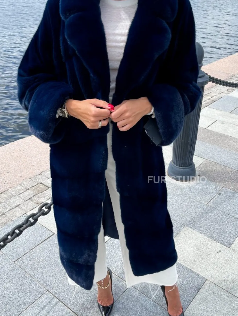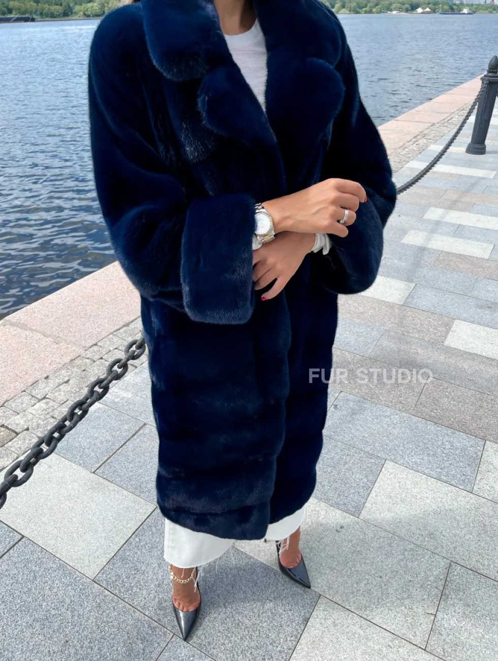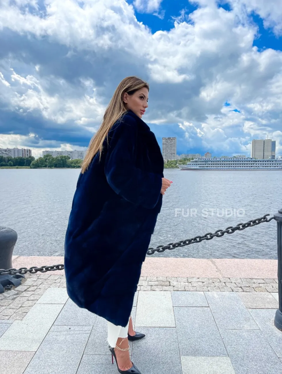Цвет индиго выгодно подчеркнет оттенок волос и кожи владелицы. Широкие манжеты делают акцент на тонкости кистей. Необычный воротник позаботится о комфорте шеи и подчеркнет ее изящество. Купить шубу из плюшевой норки в цвете индиго могут девушки, которые любят приковывать взгляды и находится в центре внимания.