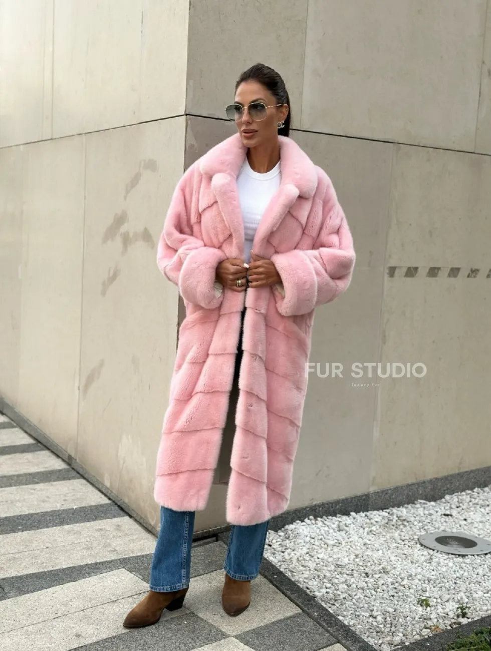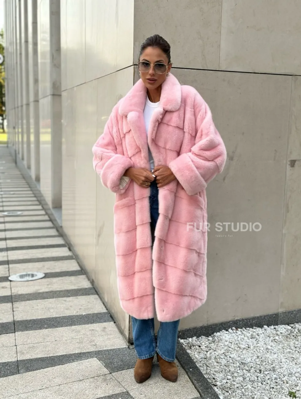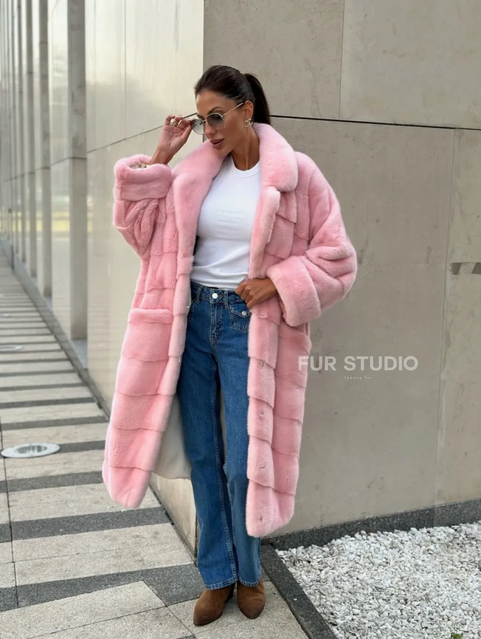 Oversize сейчас в моде. Такой фасон не сковывает движений, и вы будете чувствовать себя свободно. Стильный воротник элегантно выделит вашу шею. Шуба прекрасно подойдет под повседневный look и к вечернему наряду. Статусная сумочка и необычная обувь лишь подчеркнут индивидуальность вашего образа. Купить шубу из плюшевой норки VELVET - цвет светло-розовый могут девушки, которые знают, что хотят в жизни.
