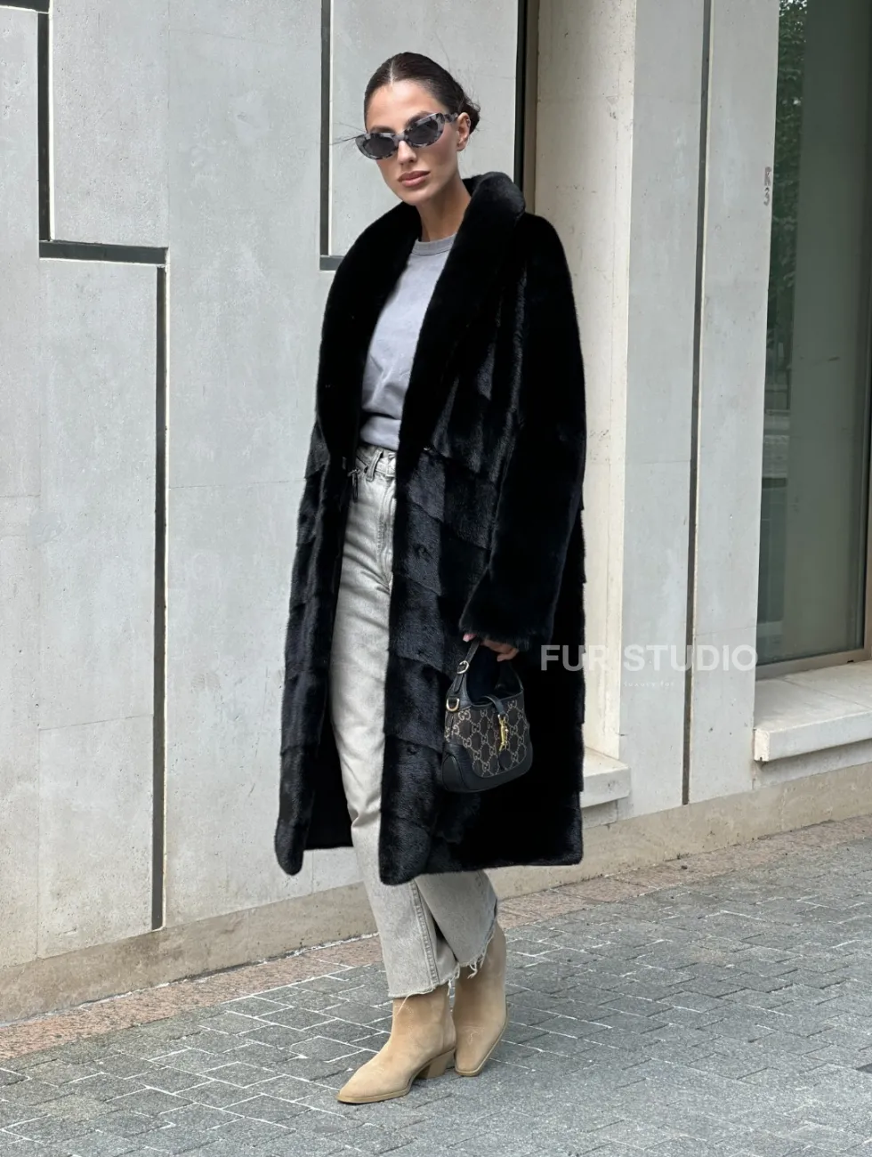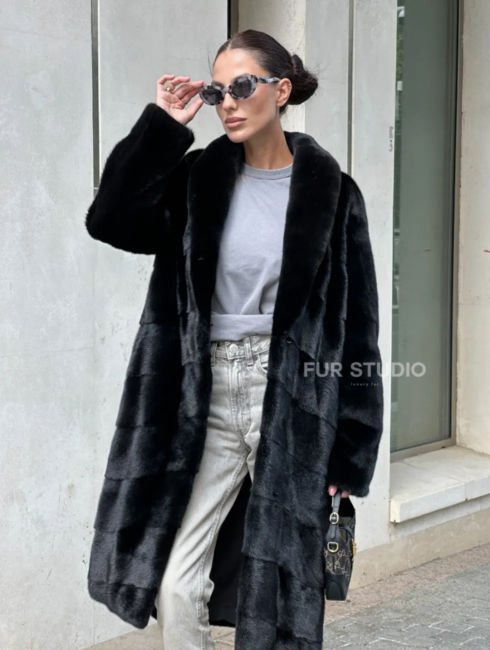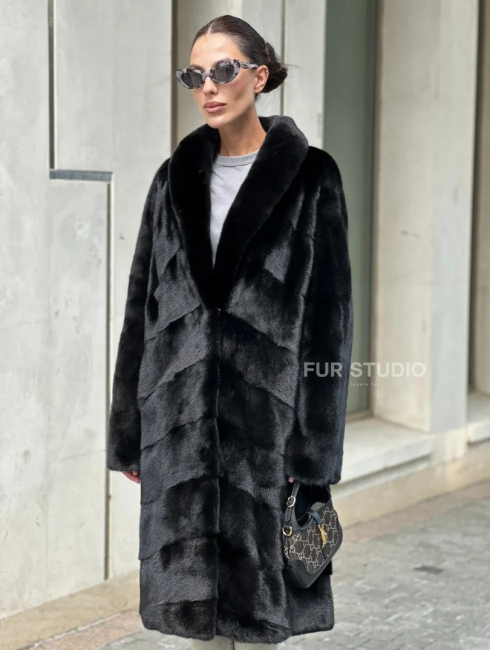 Шуба из скандинавского меха норки Saga furs с шалевым воротником доступна для покупки в нашем шоуруме Furs Studio в Чите. У нас так же есть доставка во все города России. Добавьте немного роскоши в свой гардероб с этой шубой, которая будет служить вам многие годы.